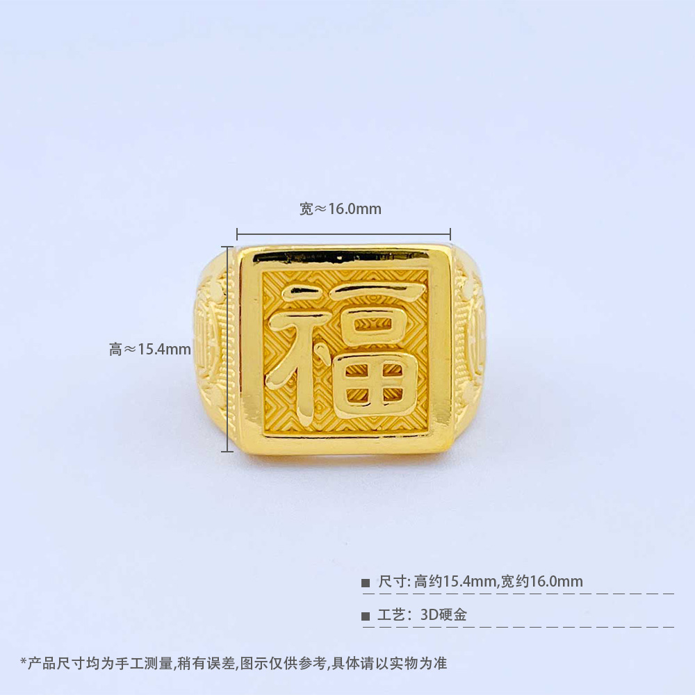 【限时克减128元】足金 3D硬金空心固口福字男戒福字方戒指福戒(V3DJZ00007)(预售产品下单后不退款不退货不换货不补差价)(预售产品下单后不退款不退货不换货不补差价)