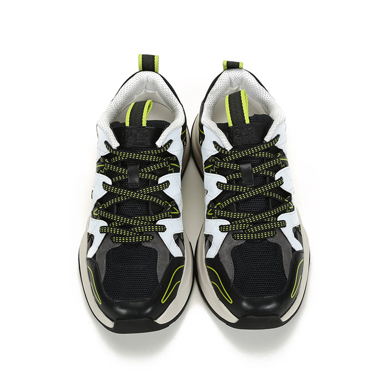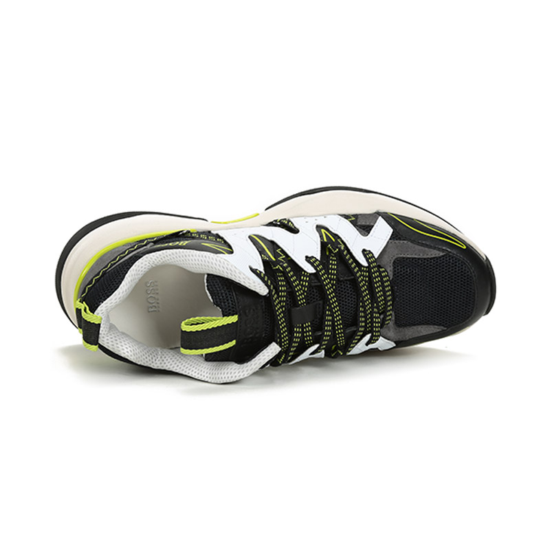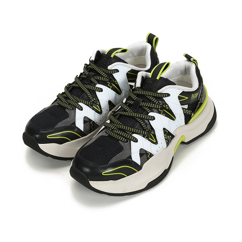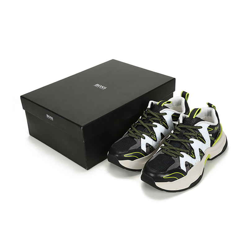 品牌:HUGO BOSS/雨果博斯 产地:老挝等国(批次不同,产地不同) 款式:男士 颜色:蓝色白色多色 材质:鞋面:织物配皮 结构:跟高约6cm