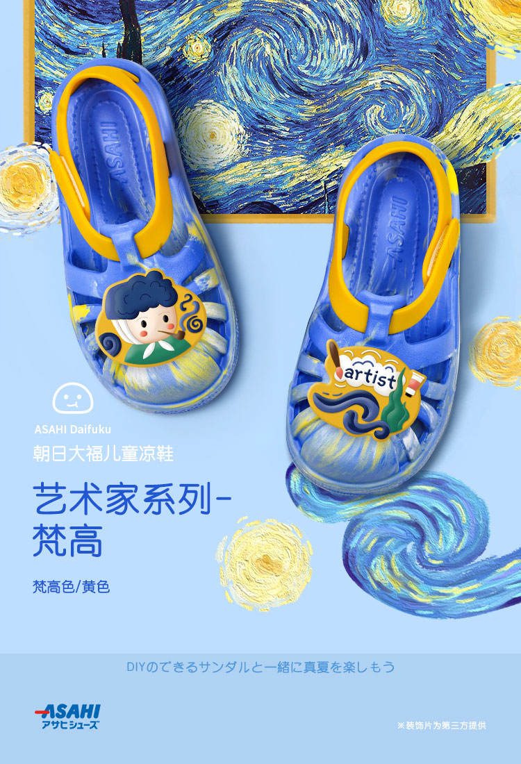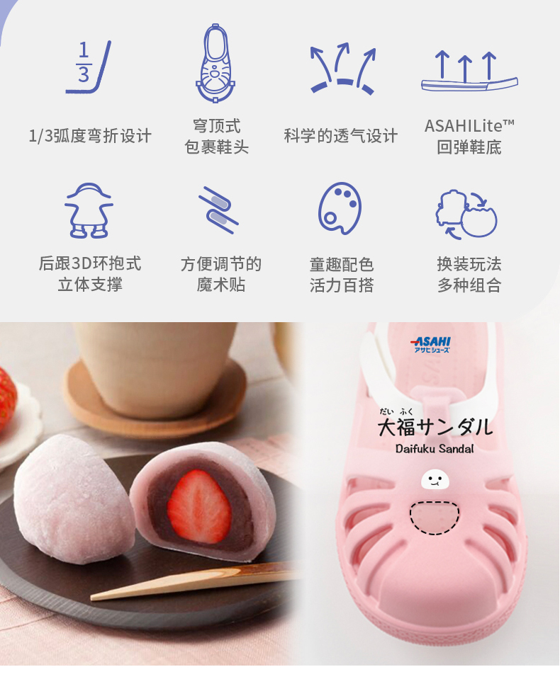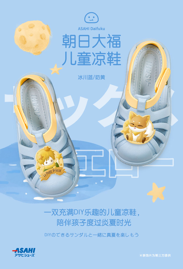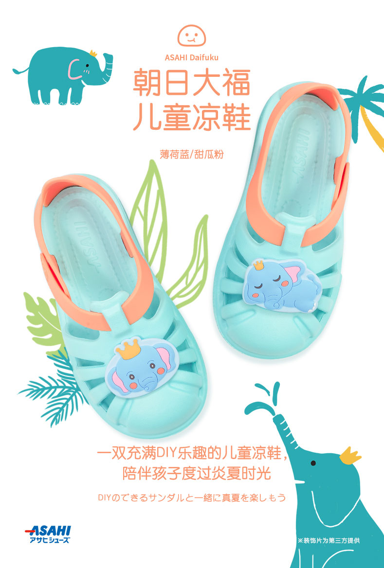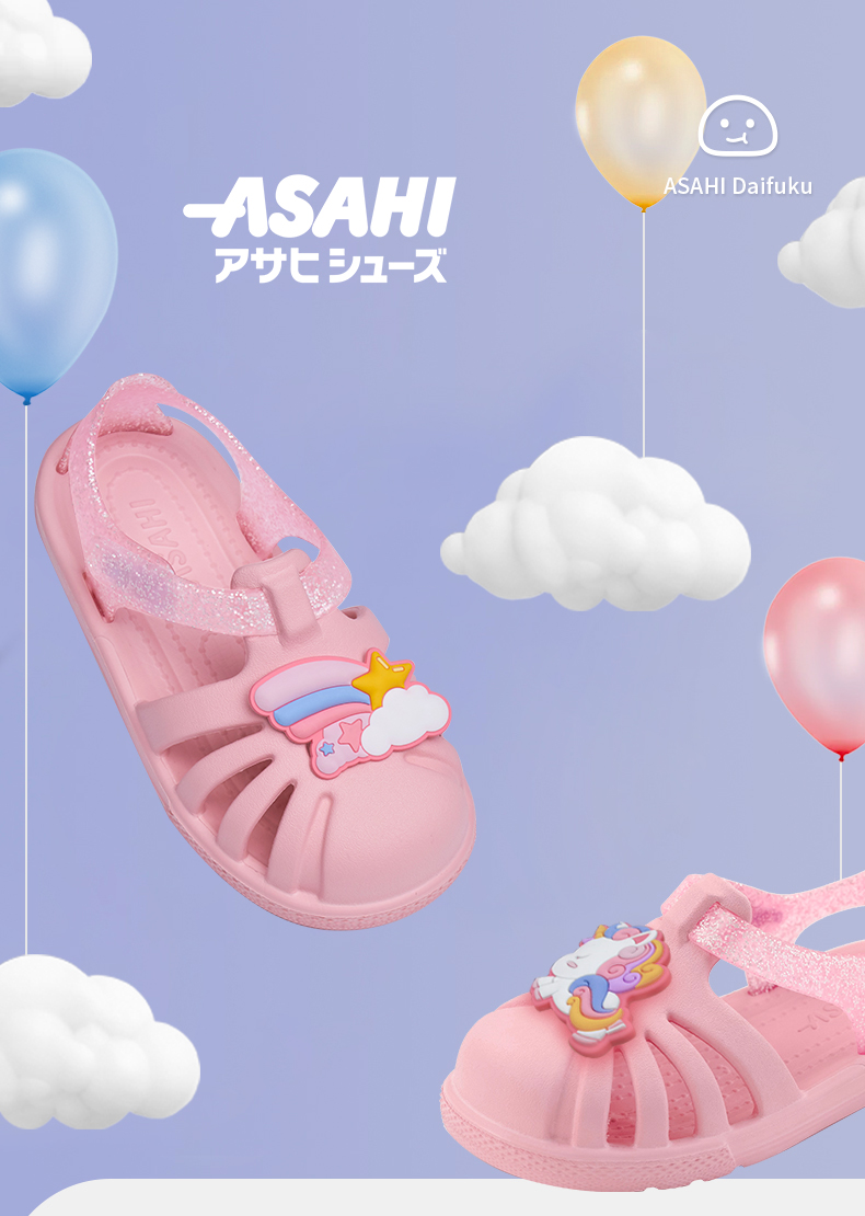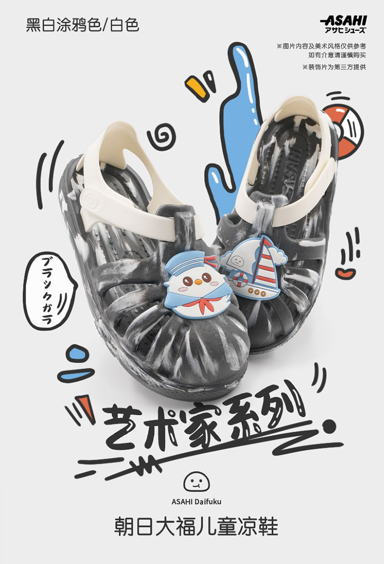 【特价非质量问题不退换】asahi朝日大福男女童夏季镂空踩水透气魔术贴包头软底凉鞋【装饰片图案随机发货 不指定】