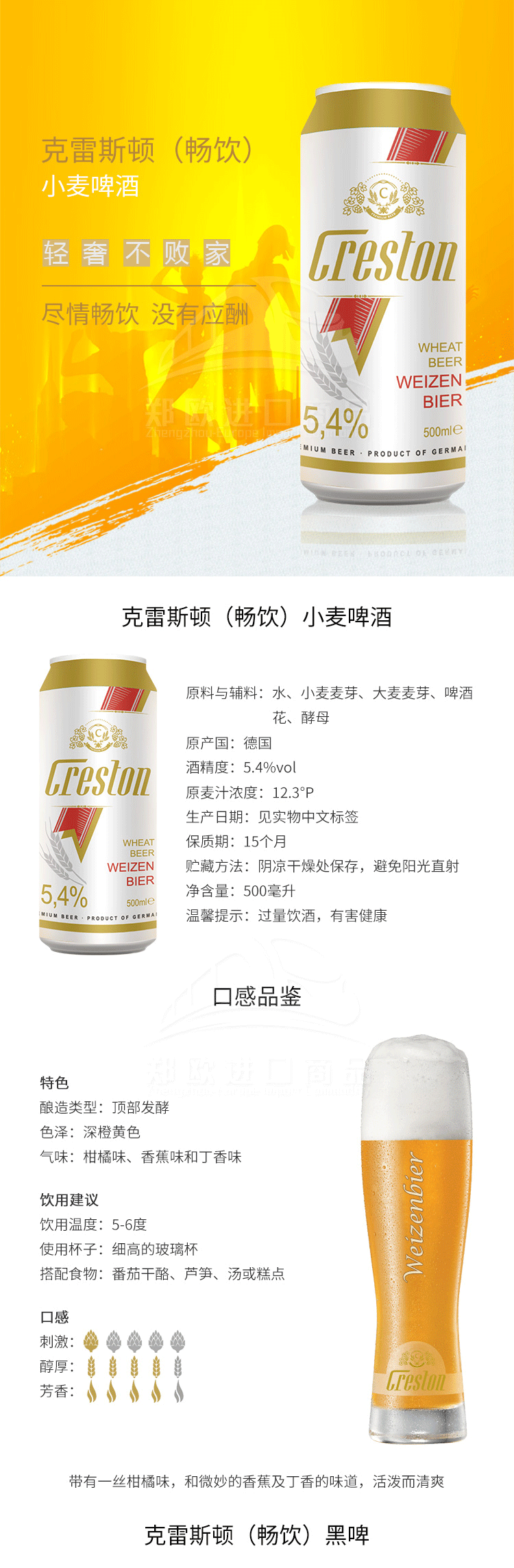 【6听35】德国克雷斯顿畅饮系列啤酒500ml 口感醇厚尽情畅饮 012599/012600