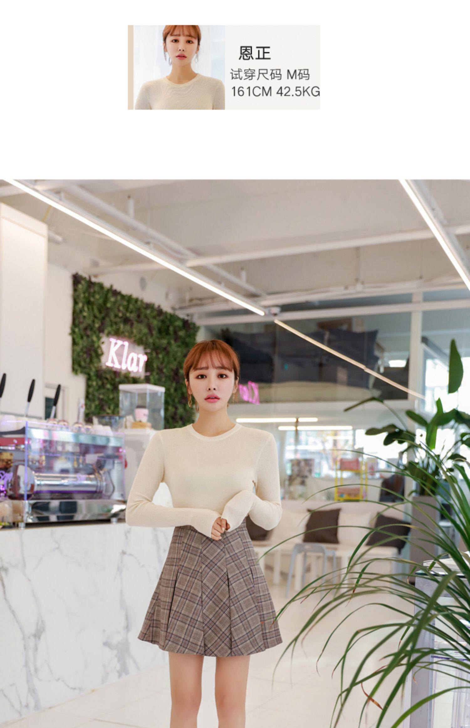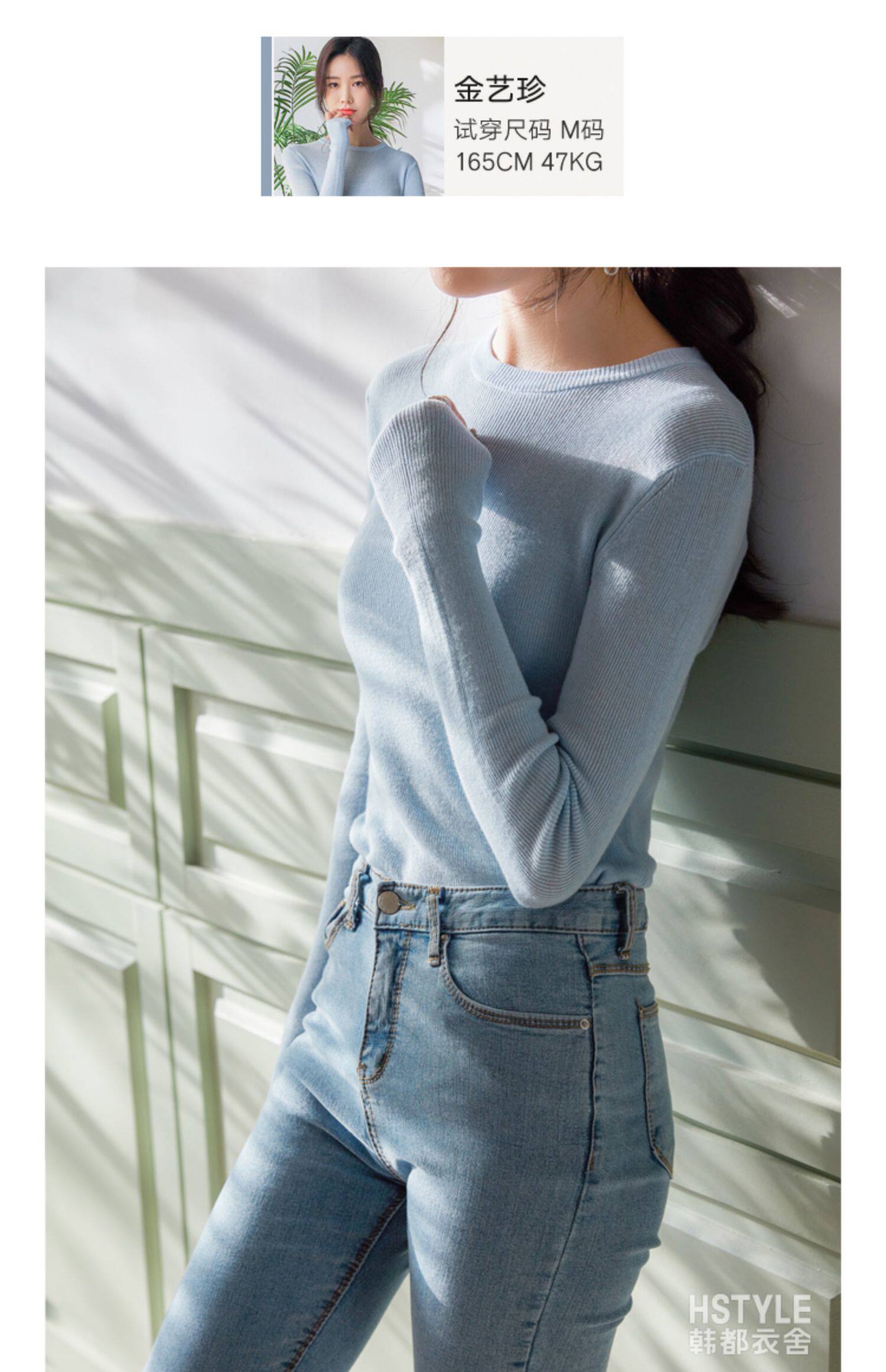 韩都衣舍2020春装新款女装韩版纯色打底衫修身针织衫JM9861蒖 商品图2