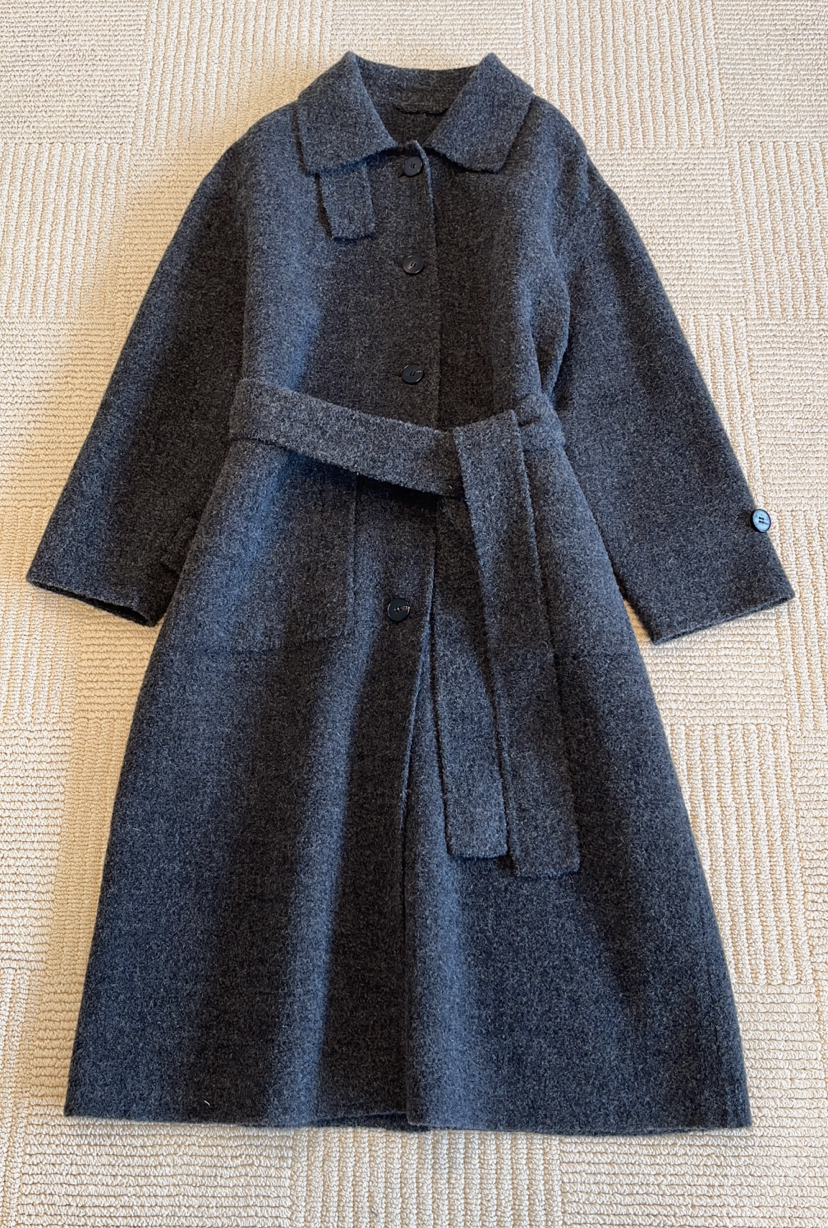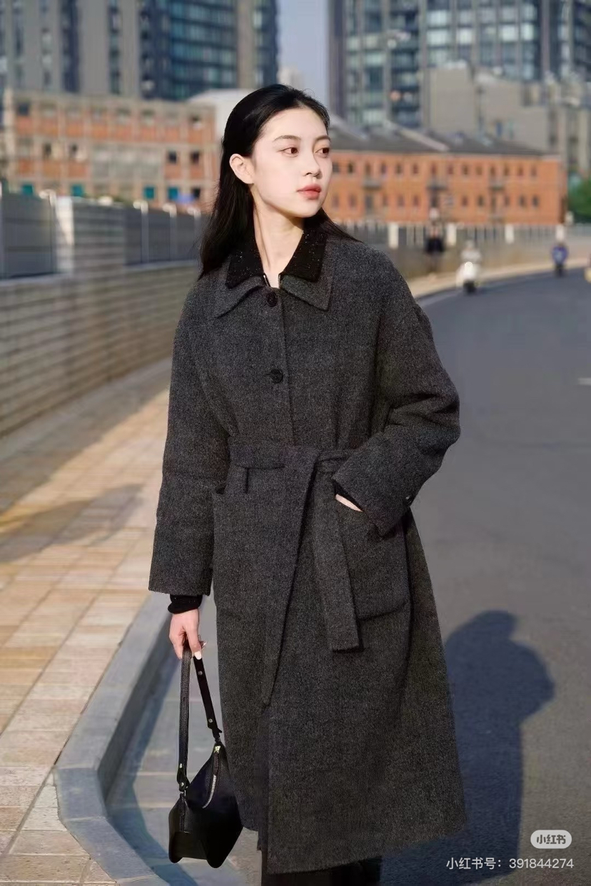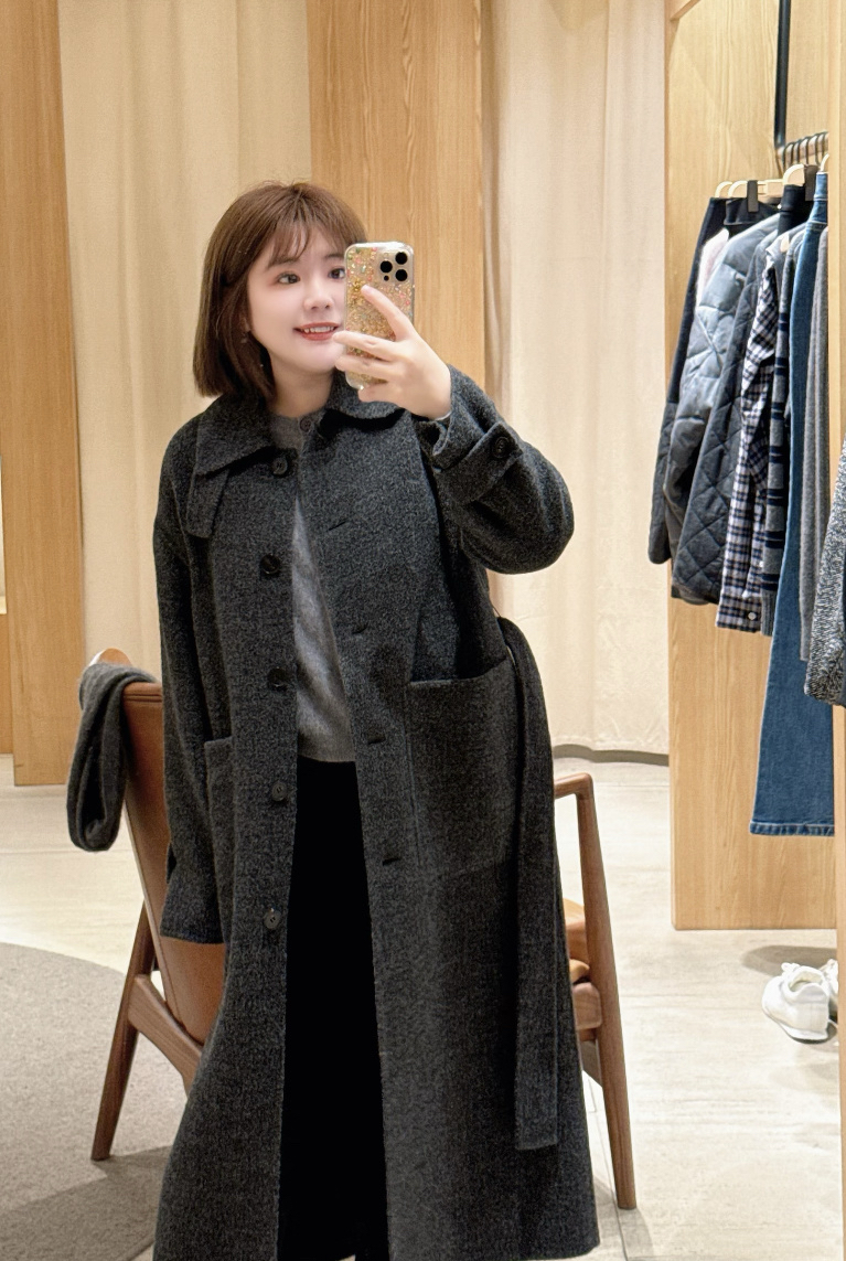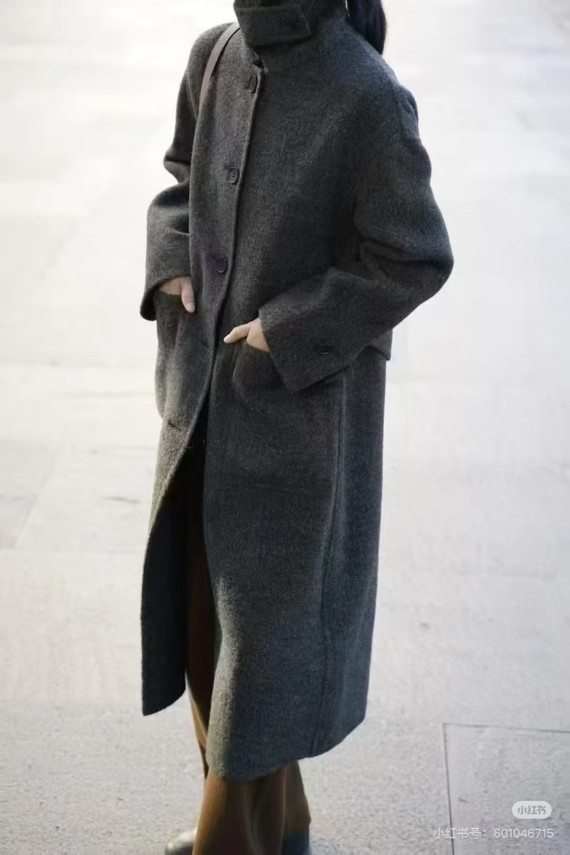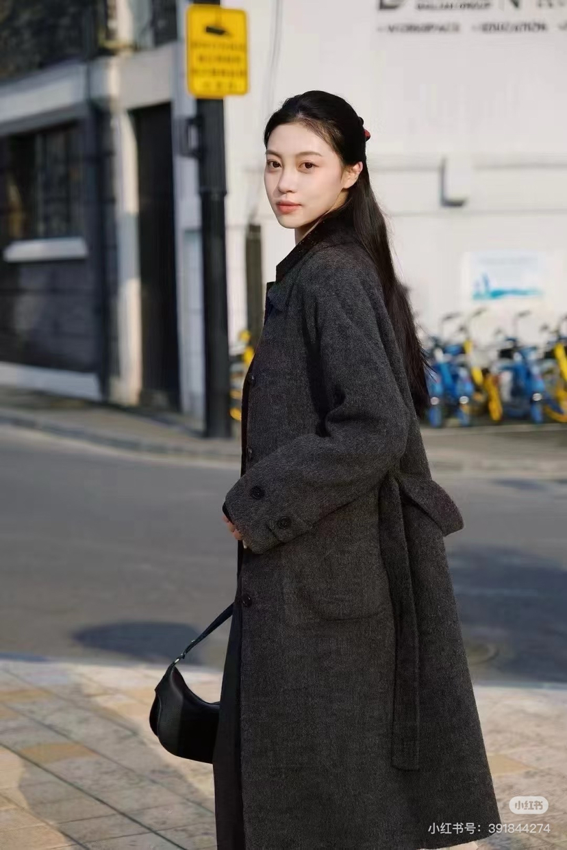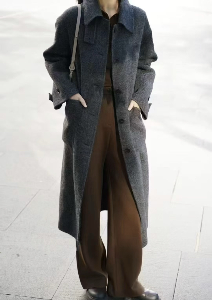 118-2小禾女士灰色羊驼毛呢大衣 丰盈蓬松轻盈柔软 胖瓜穿6码