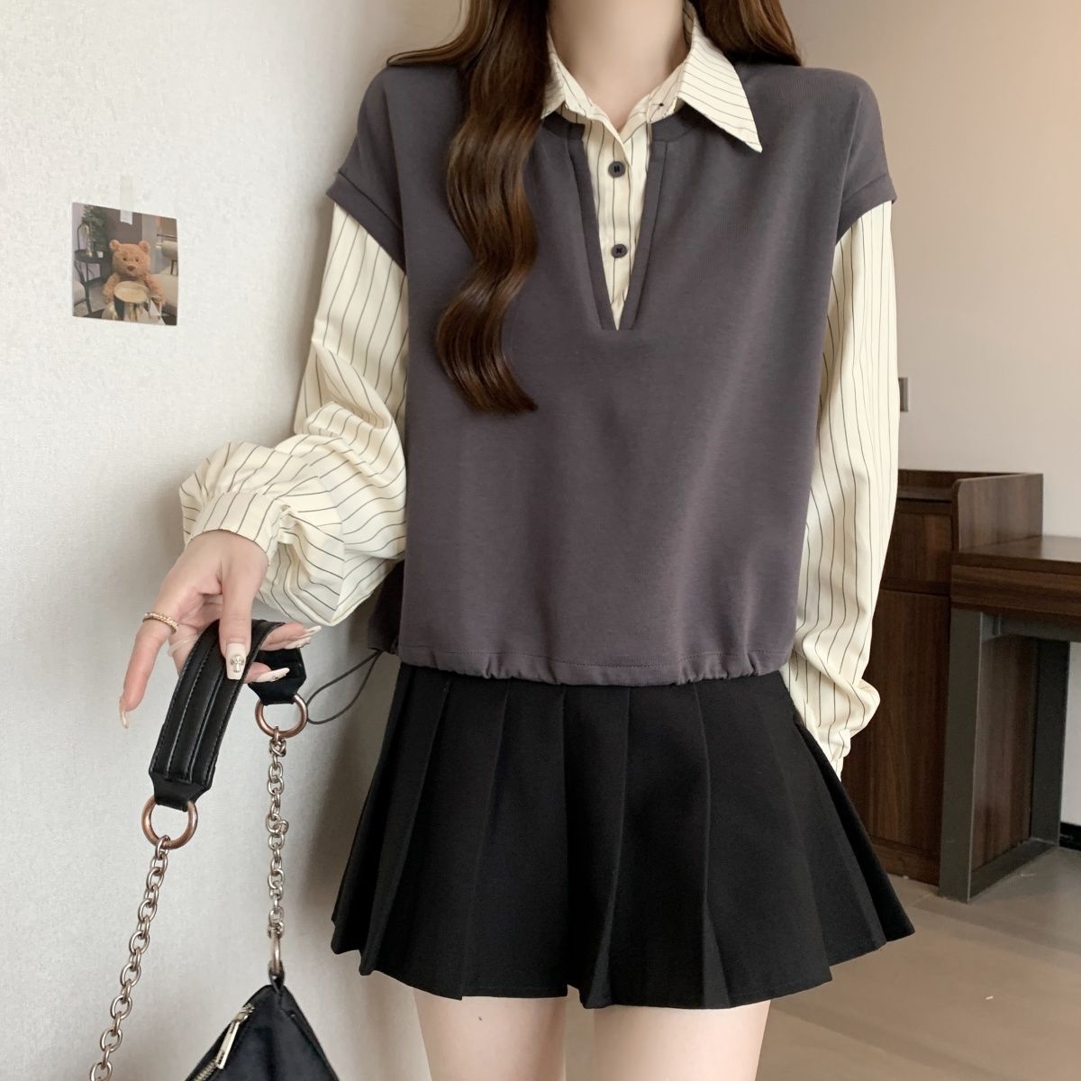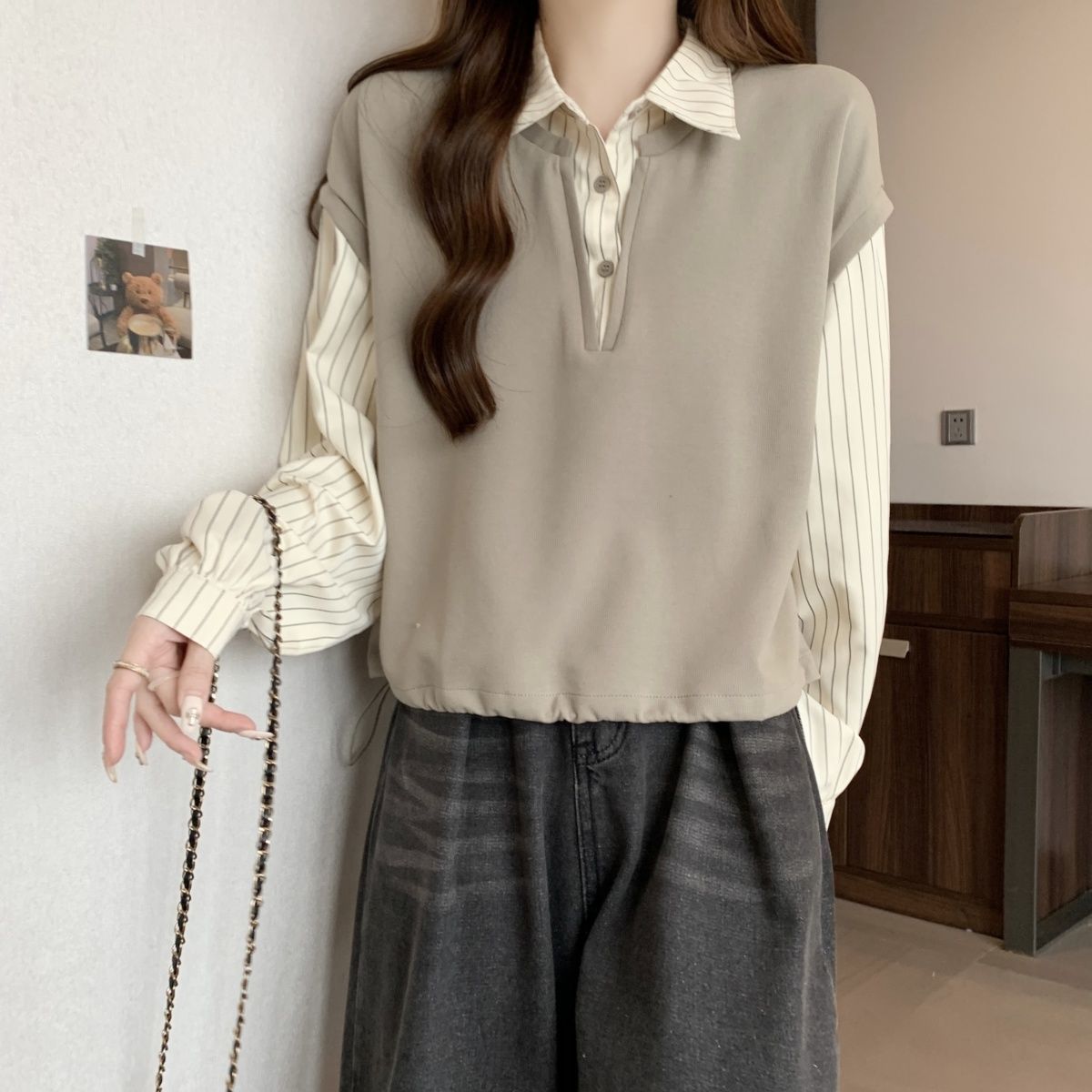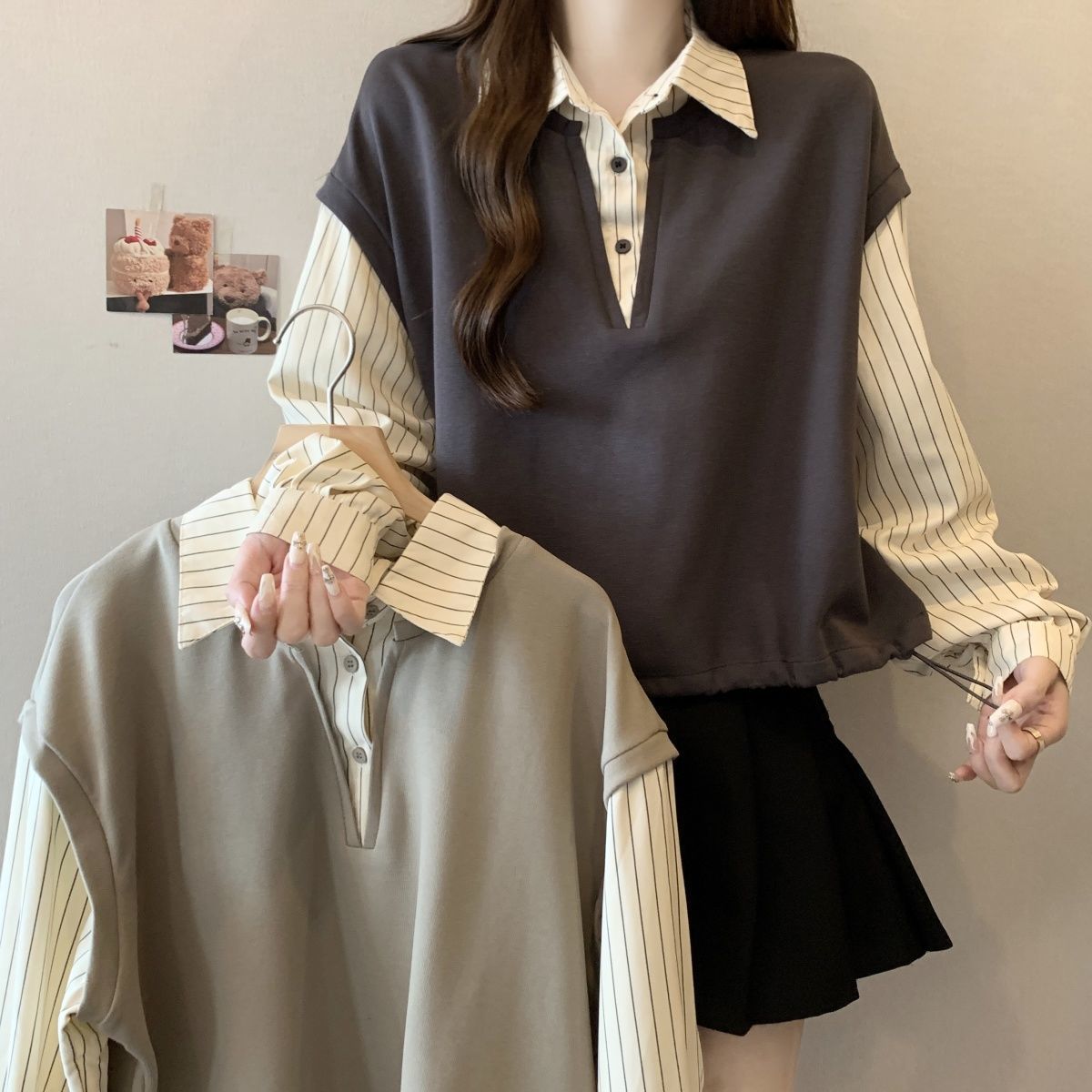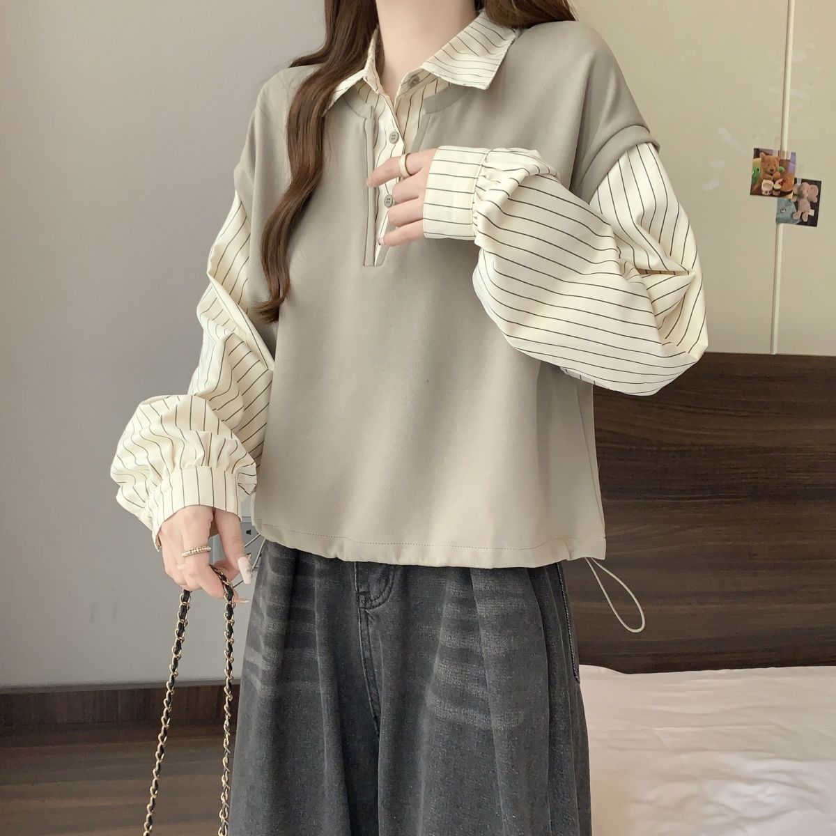 【大码胖mm假两件短款衬衫】春秋新款 设计感卫衣外套高气质上衣