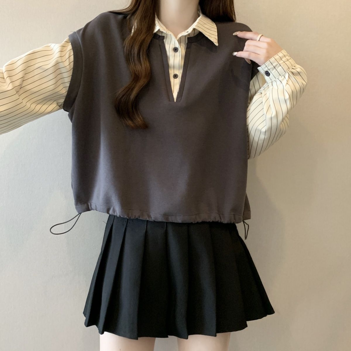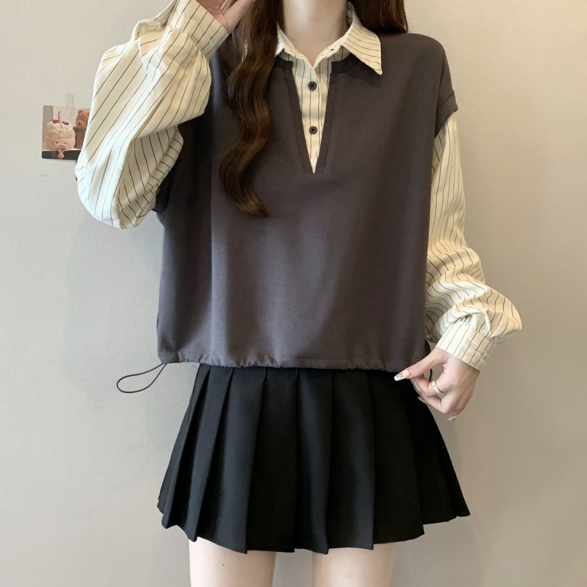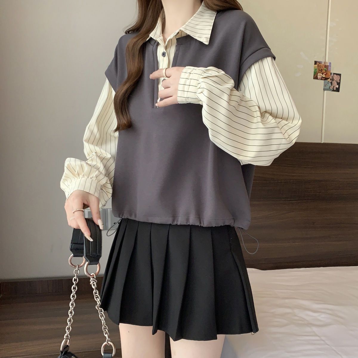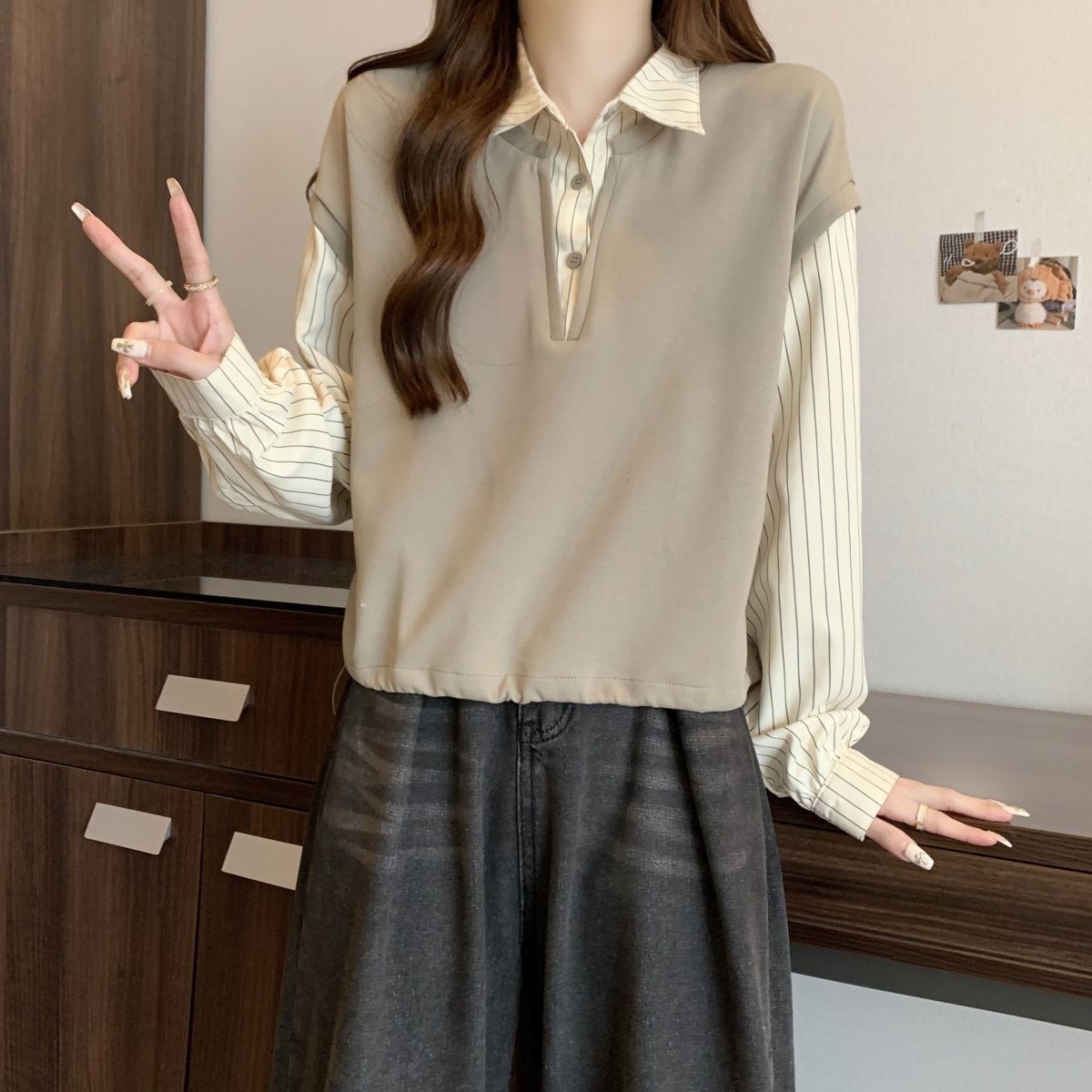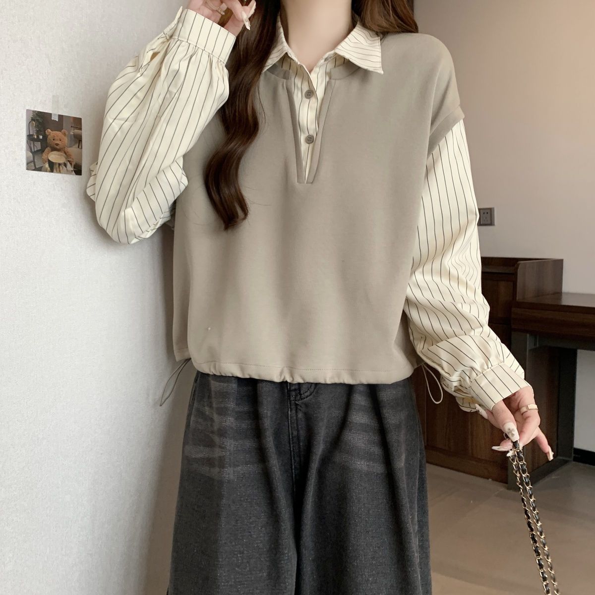 【大码胖mm假两件短款衬衫】春秋新款 设计感卫衣外套高气质上衣