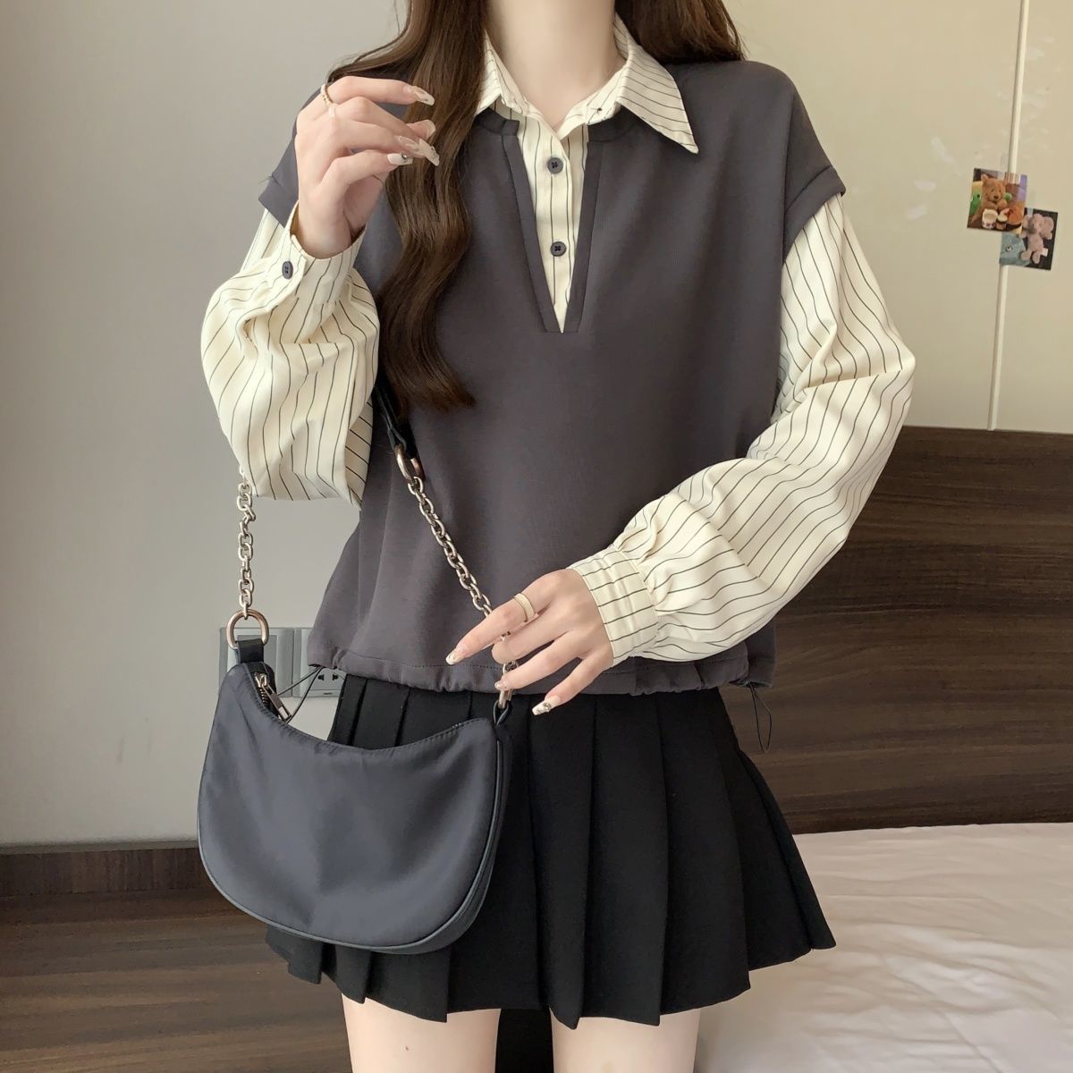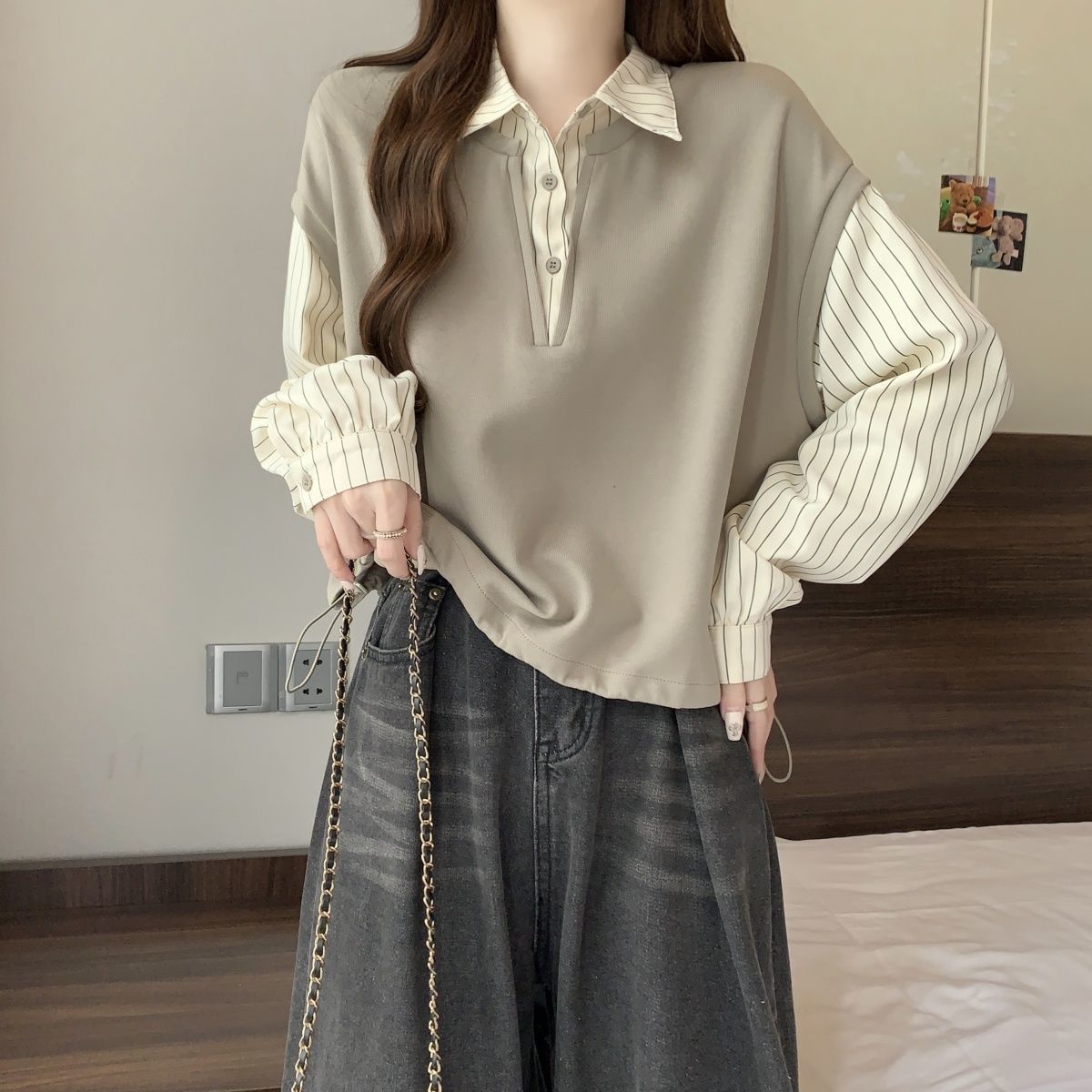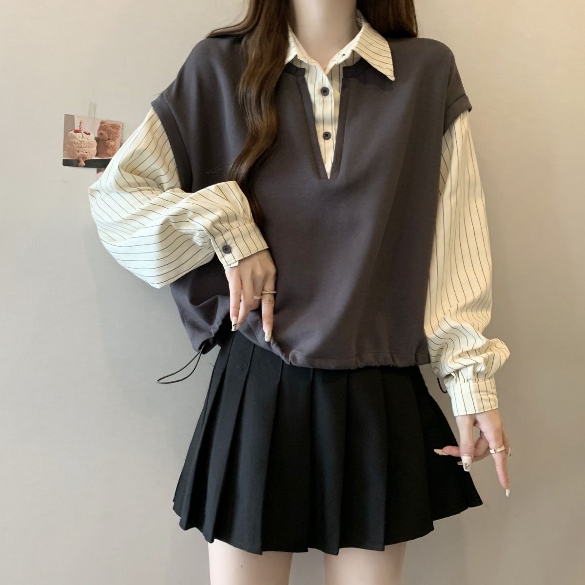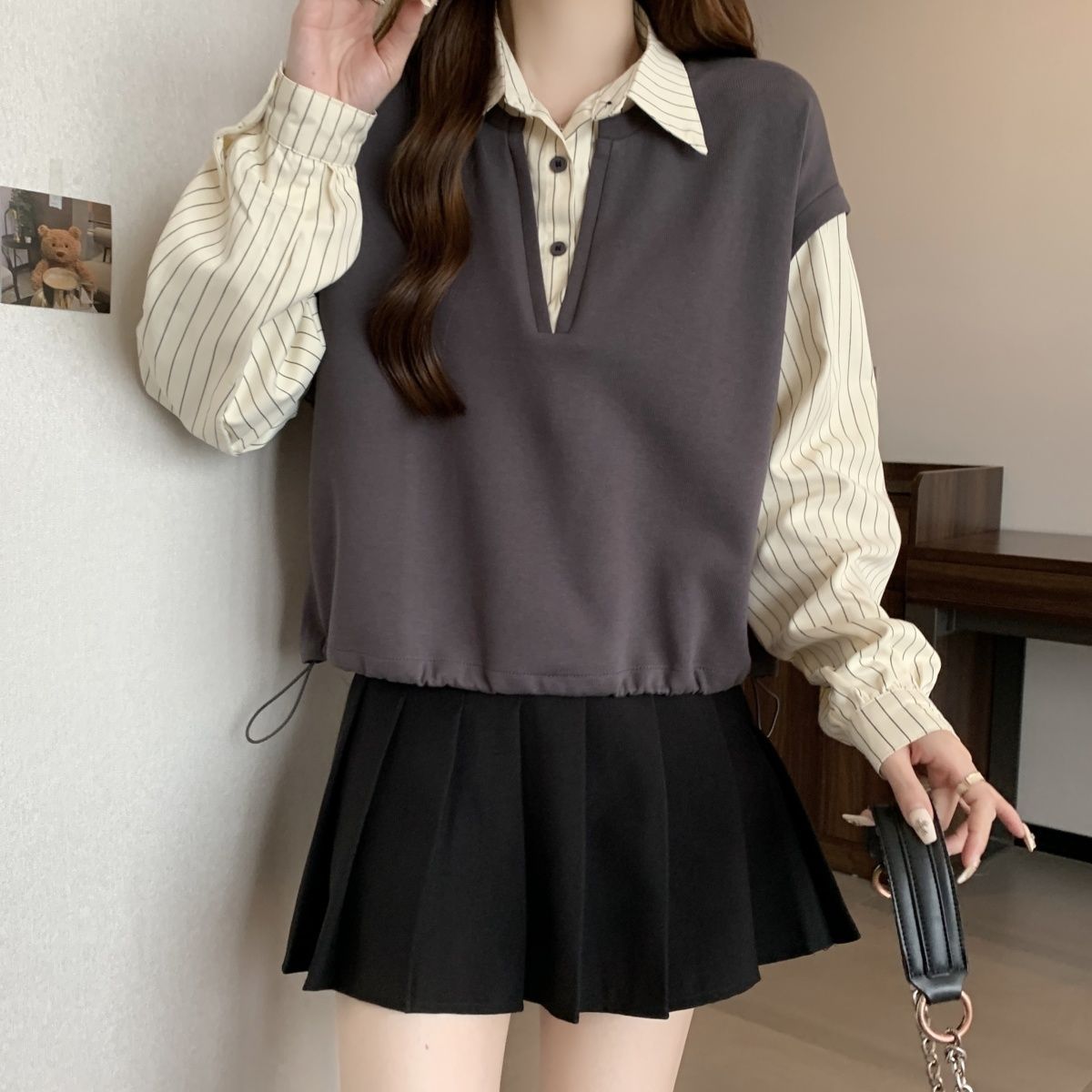 【大码胖mm假两件短款衬衫】春秋新款 设计感卫衣外套高气质上衣