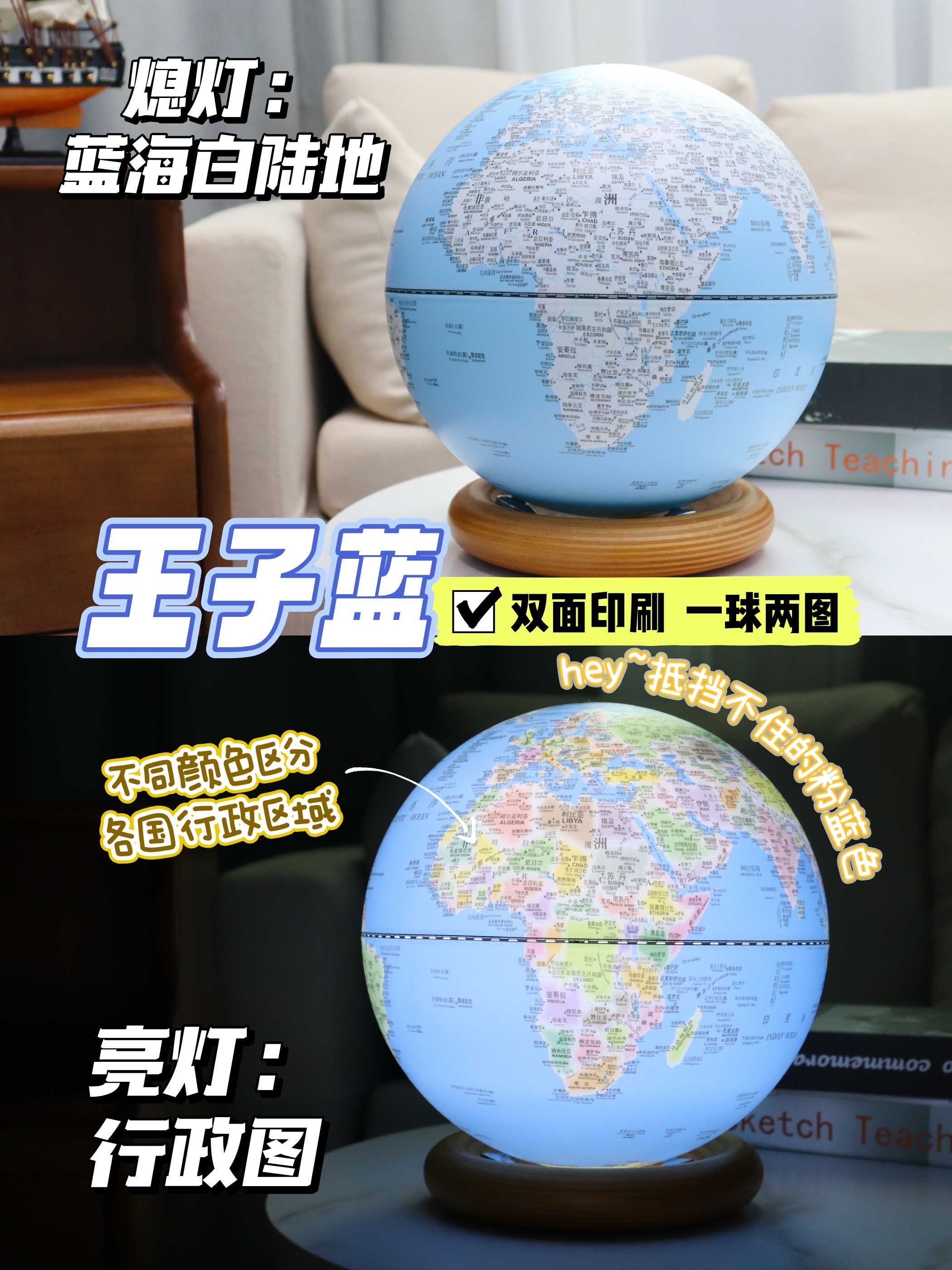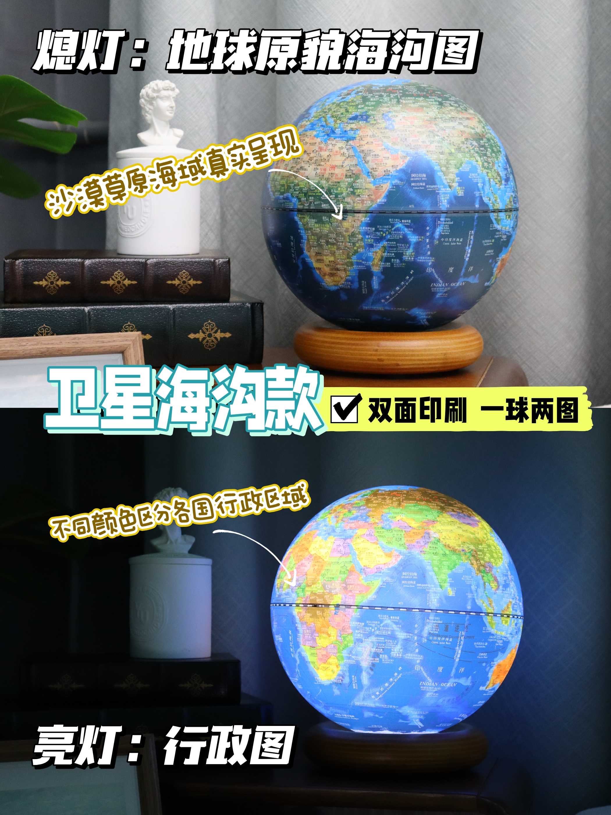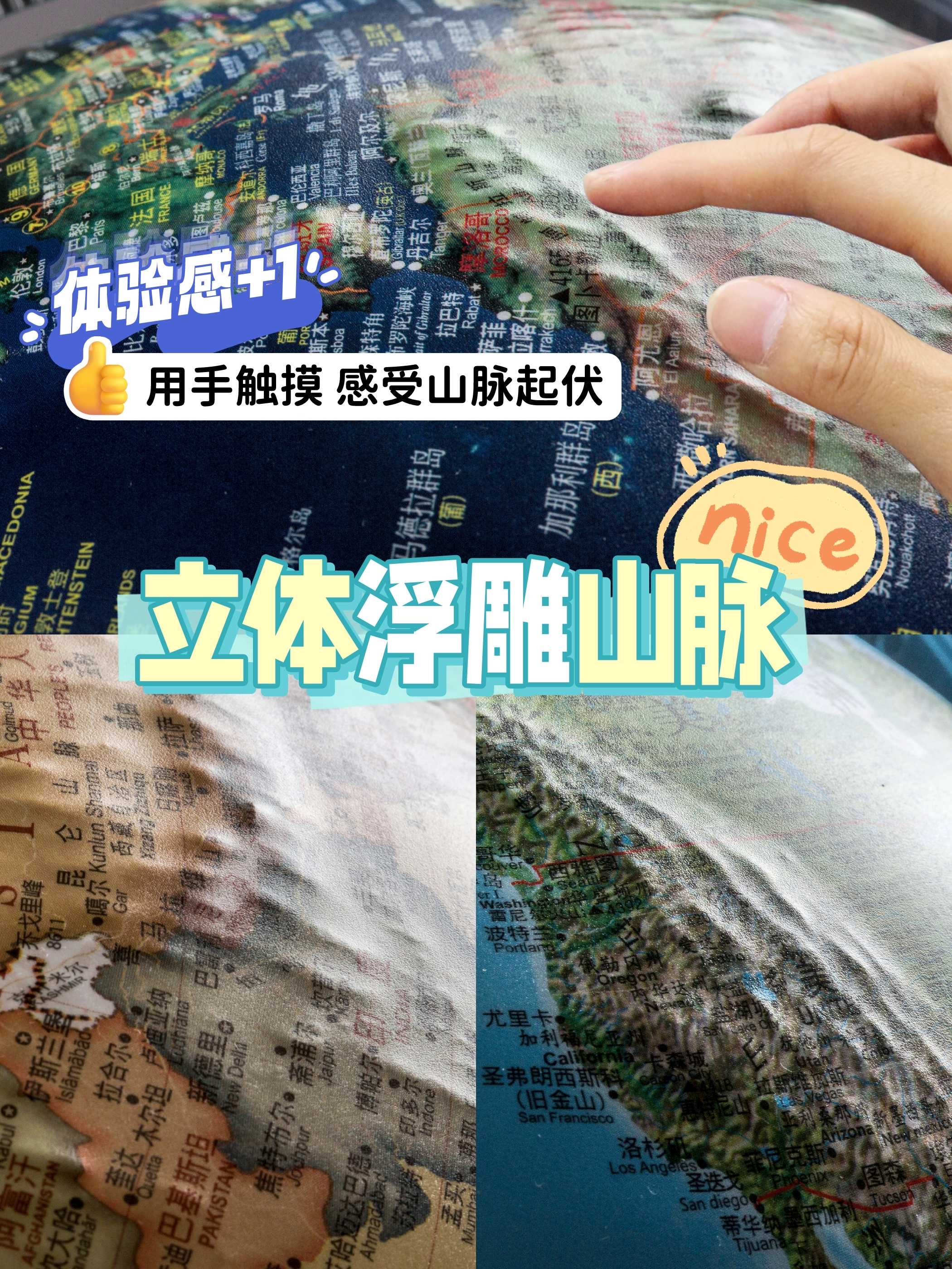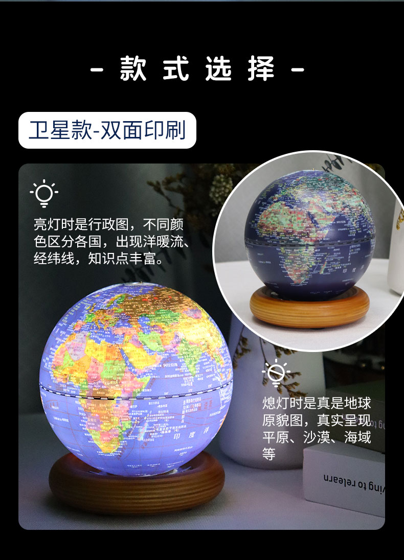 小朋友的益智好物地球仪!经典360°旋转 儿童学生用 多种大小可选 3d立体浮雕AR智能发光台灯 办公室家居摆件 大号初中生教学版!