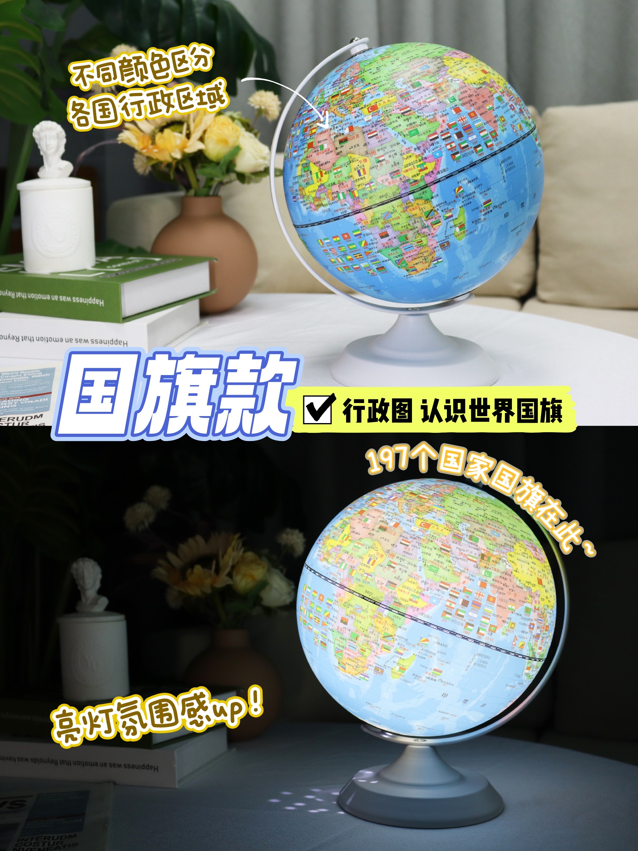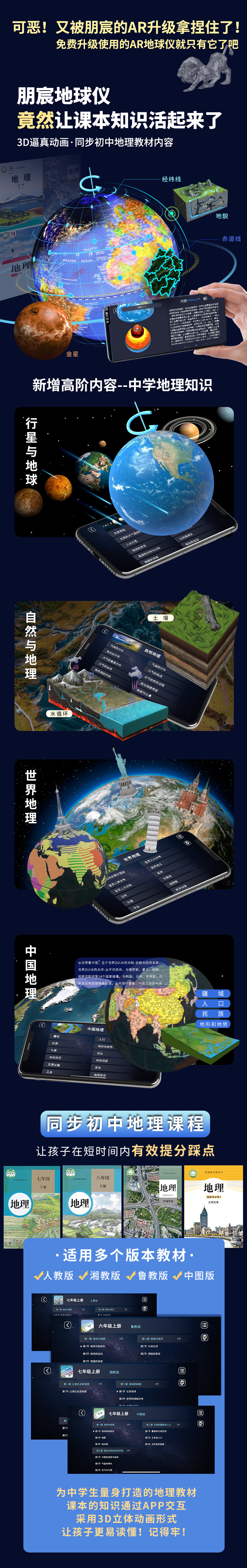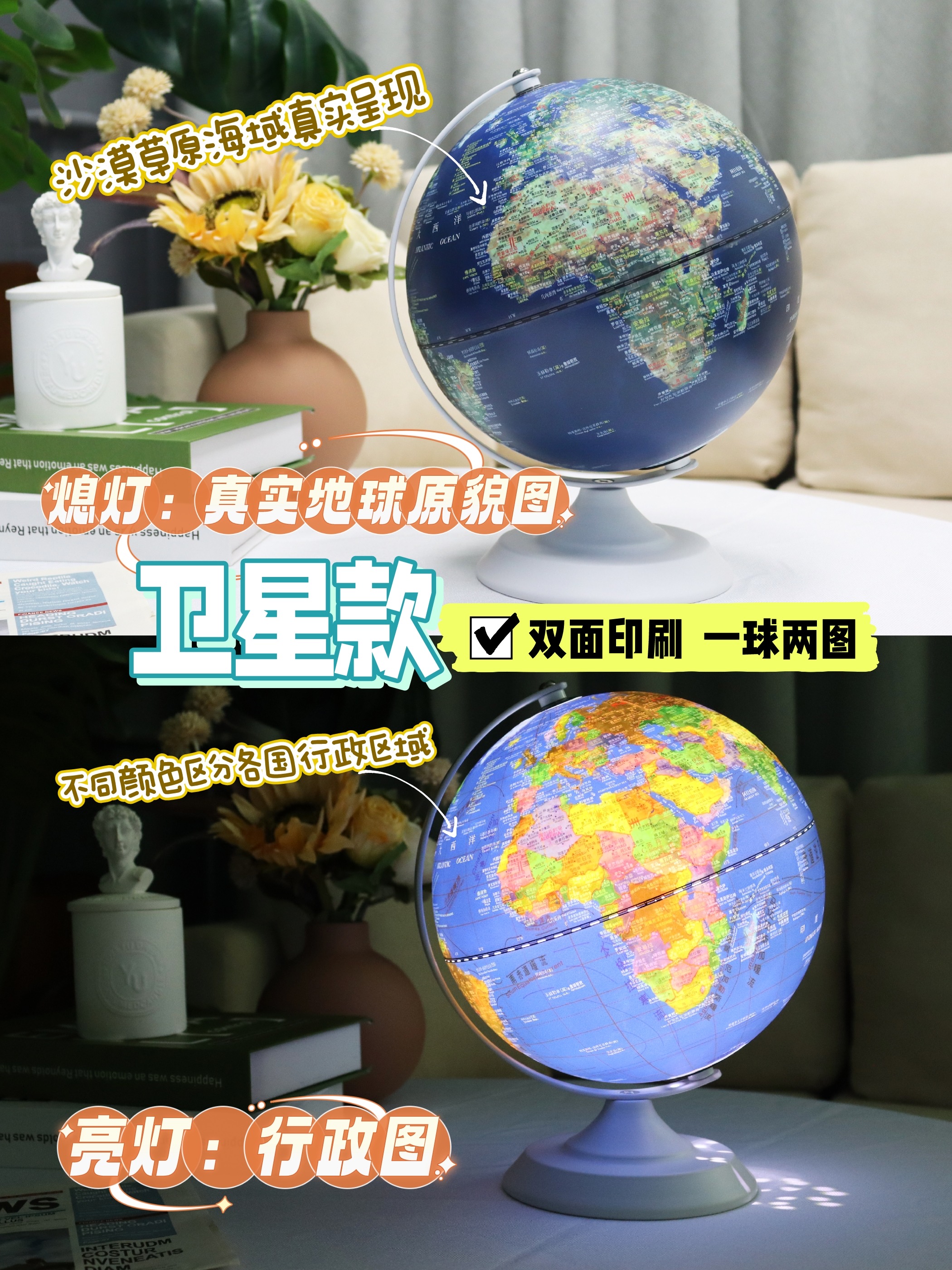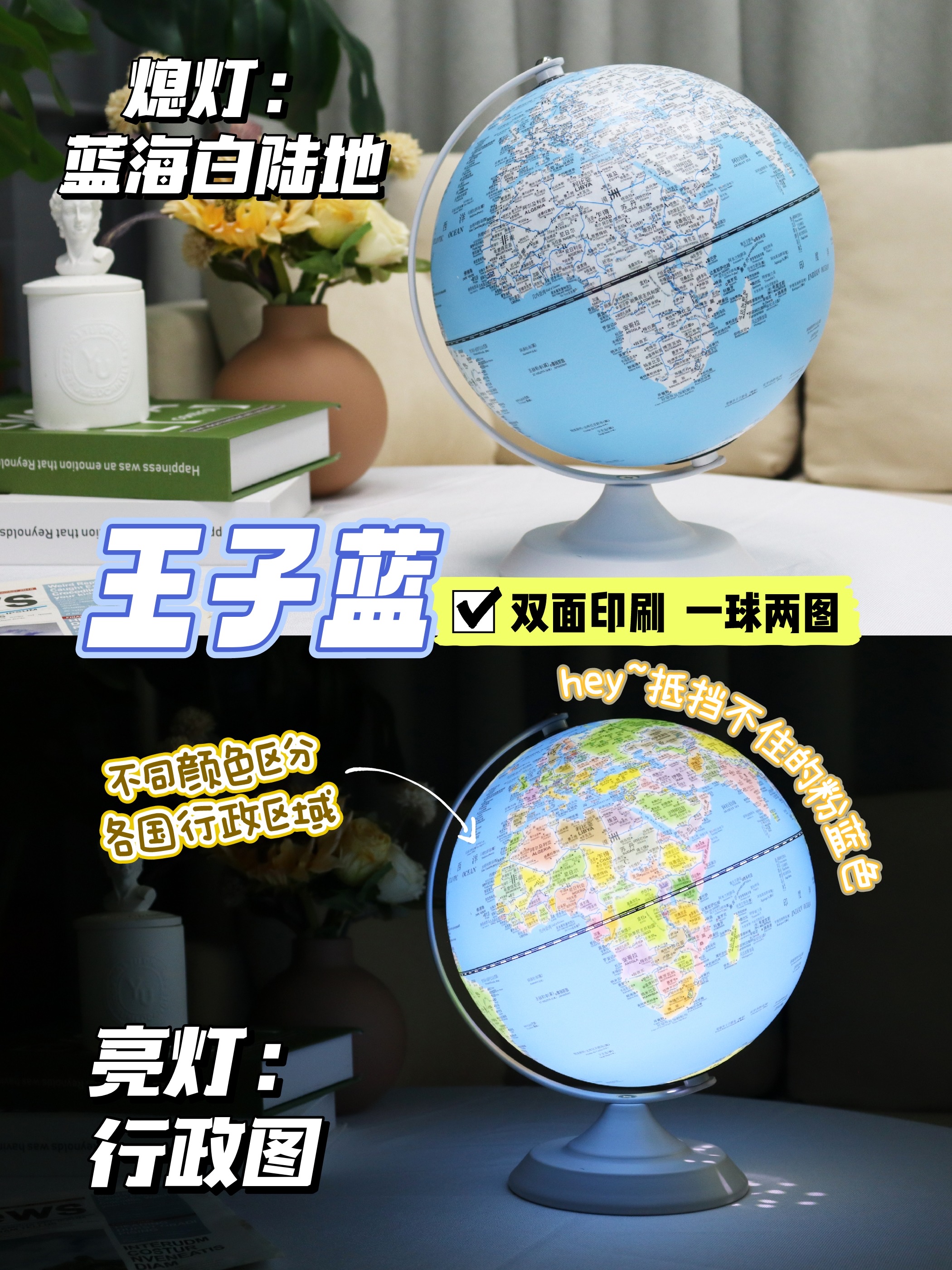 小朋友的益智好物地球仪!经典360°旋转 儿童学生用 多种大小可选 3d立体浮雕AR智能发光台灯 办公室家居摆件 大号初中生教学版!