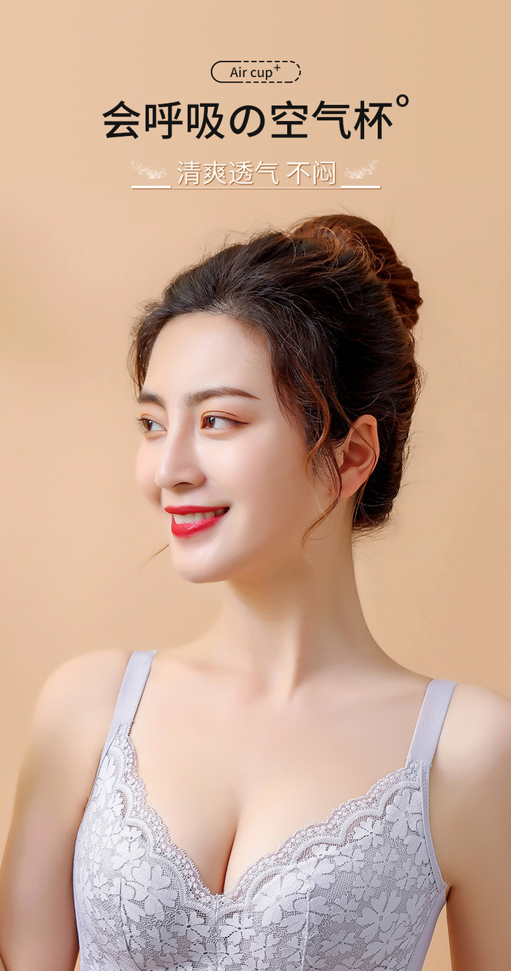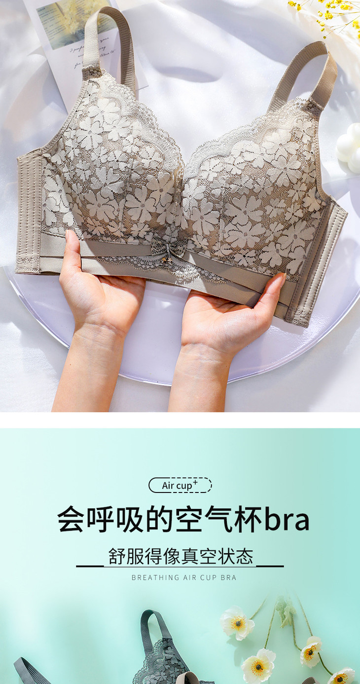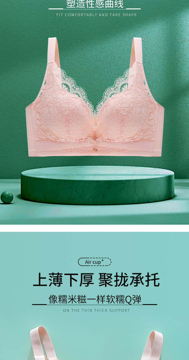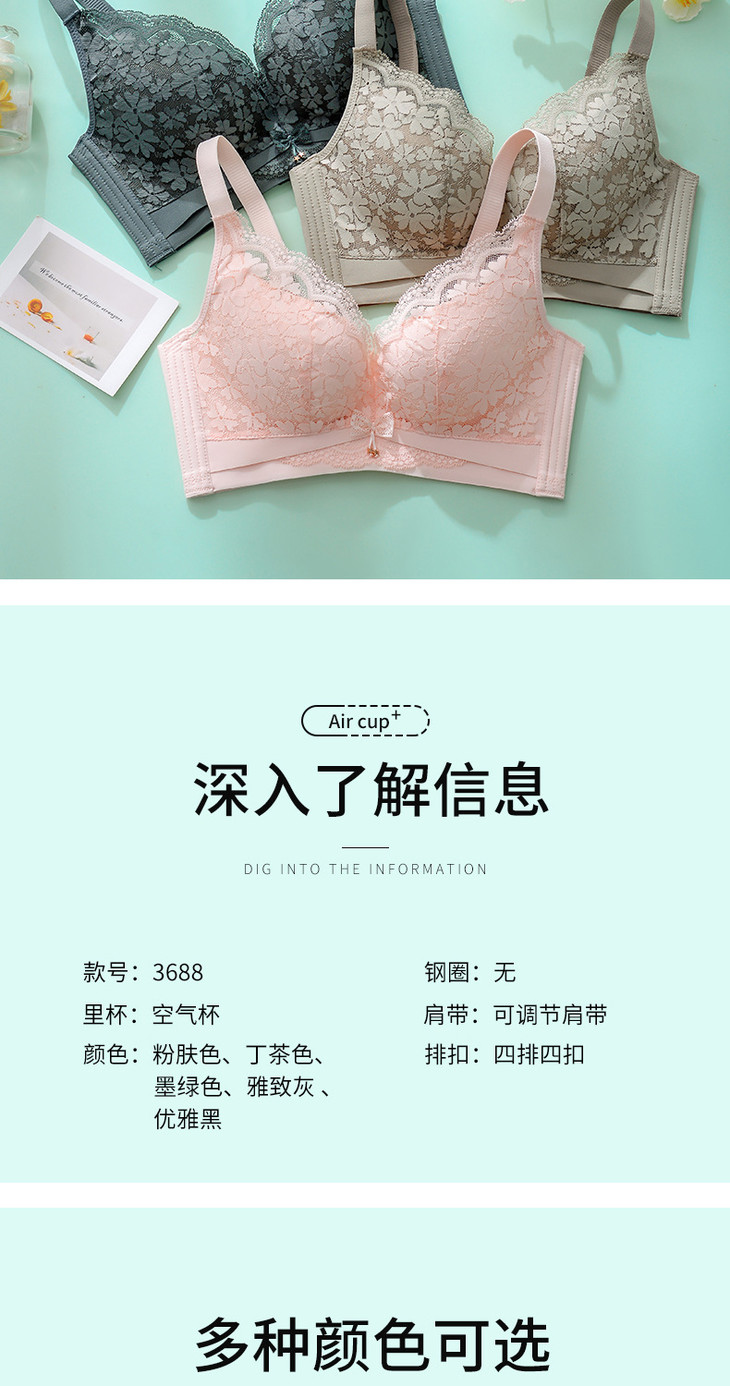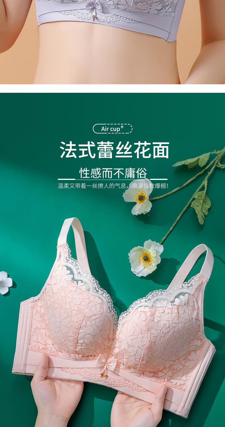 会呼吸的空气杯蕾丝文胸,法式蕾丝花面上薄下厚调整型美胸无钢圈内衣,贴身舒适透气上托聚拢文胸套装XT-3688
