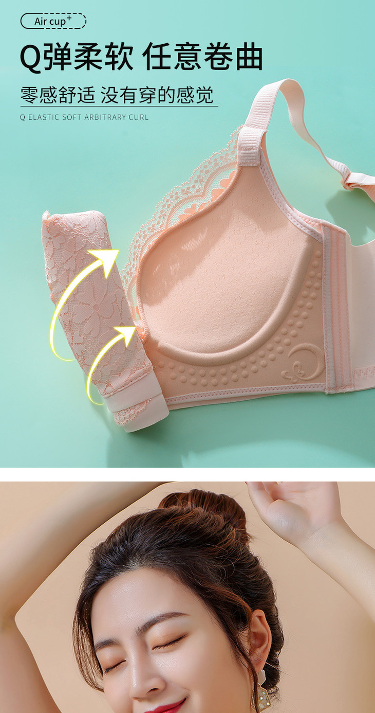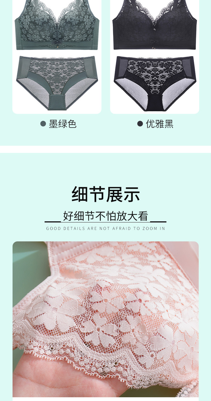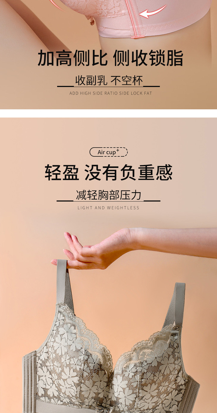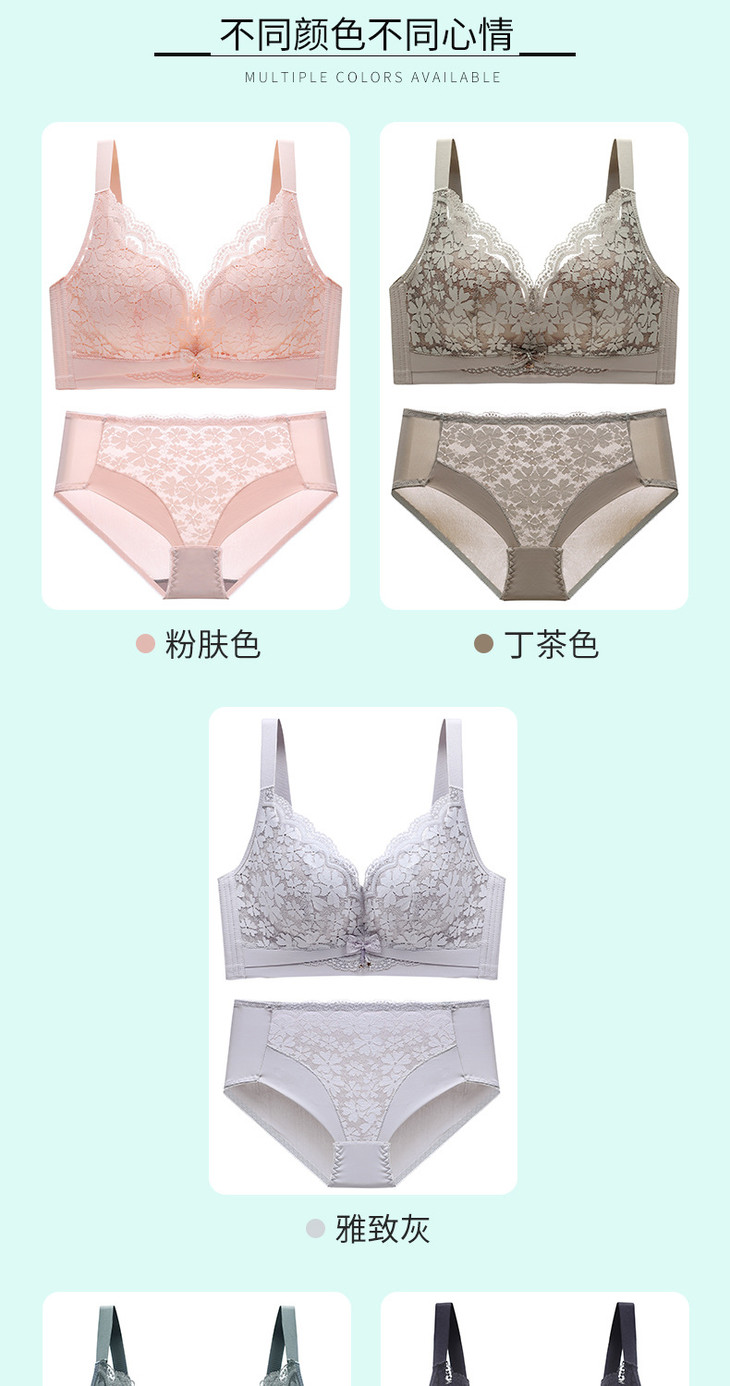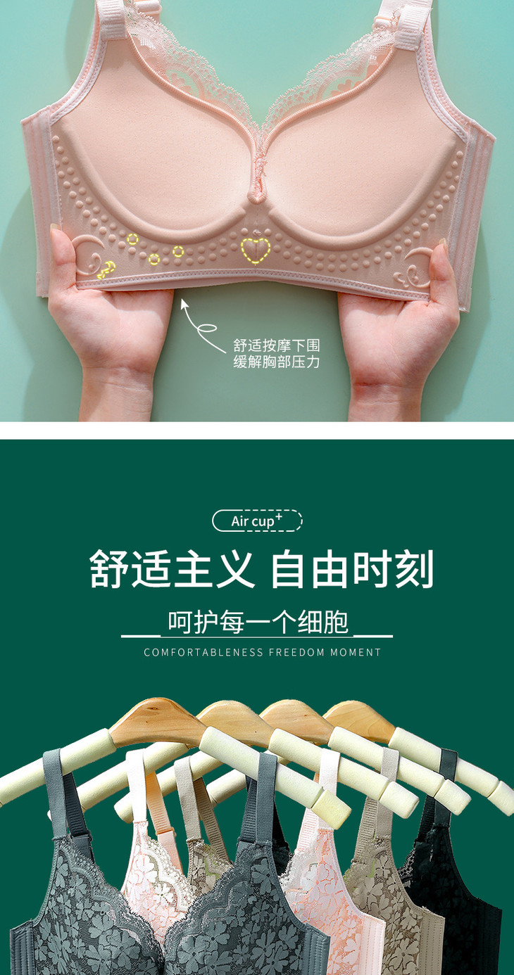 会呼吸的空气杯蕾丝文胸,法式蕾丝花面上薄下厚调整型美胸无钢圈内衣,贴身舒适透气上托聚拢文胸套装XT-3688