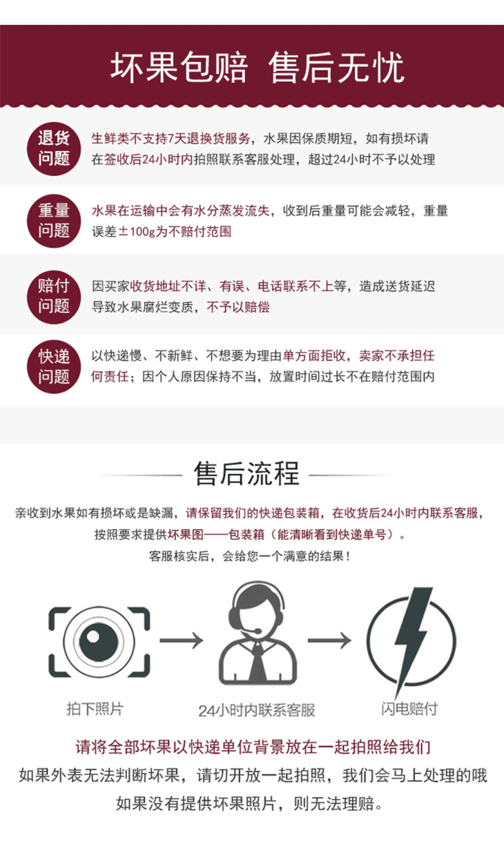 【温馨提示】收到货后有任何质量问题,请您在签收后尽快拍照联系客服进行售后理赔,我们会及时为您处理,保障您的权益