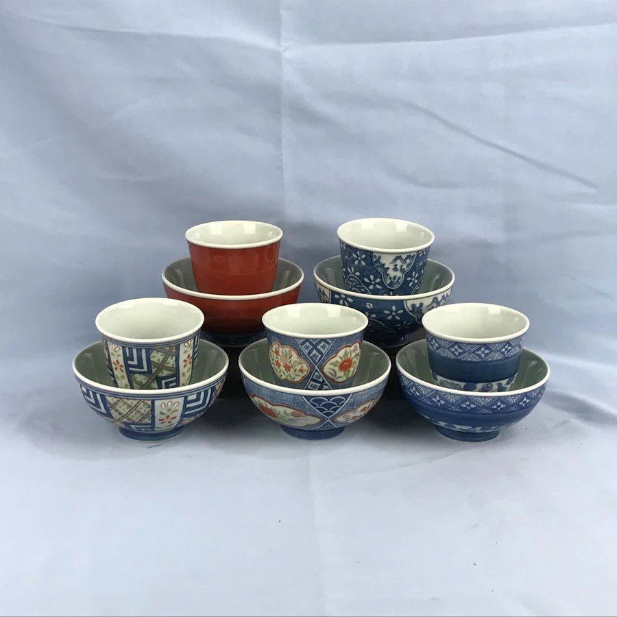 日本有田烧五色五花杯碗套组 5套装 原盒保留 实物见视频