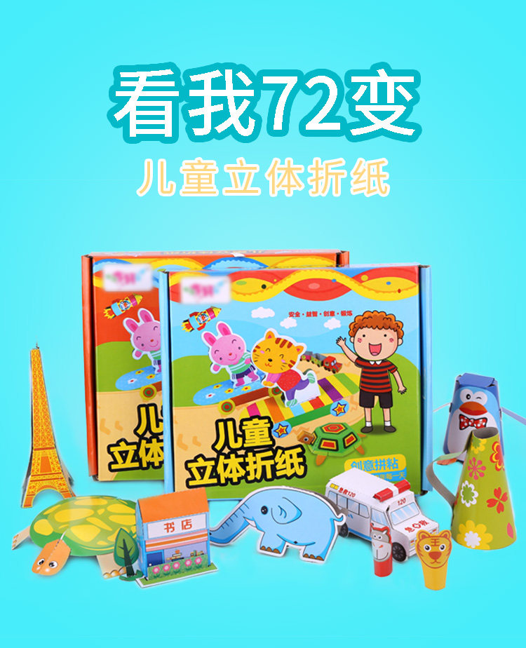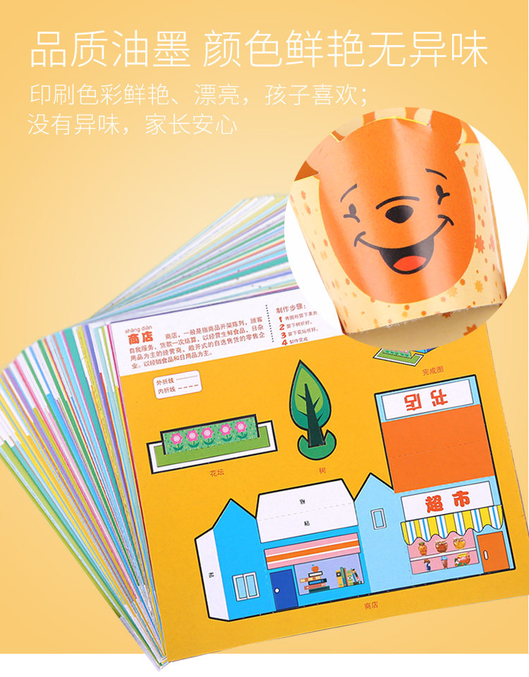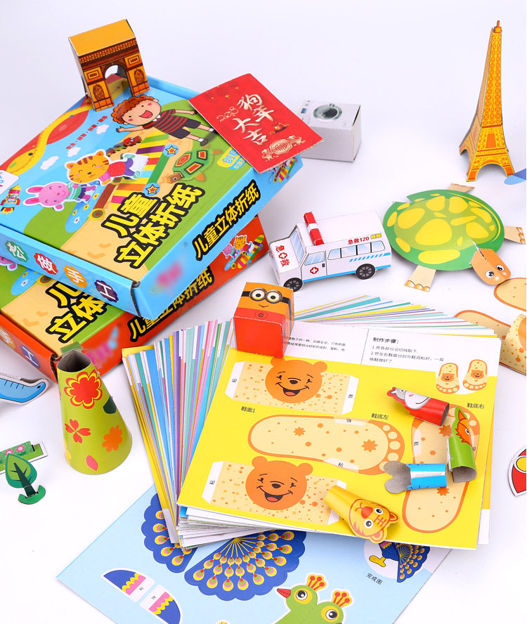爱涂图折纸书儿童手工套装3d立体动物幼儿园宝宝启蒙彩色抖音同款趣味diy创意折纸玩具剪纸