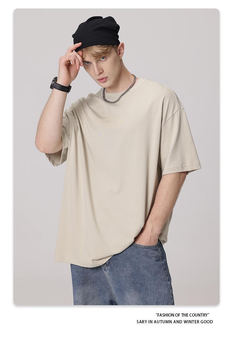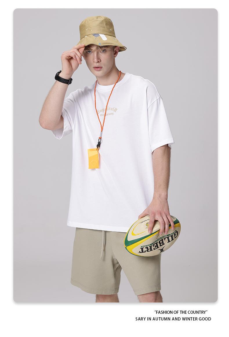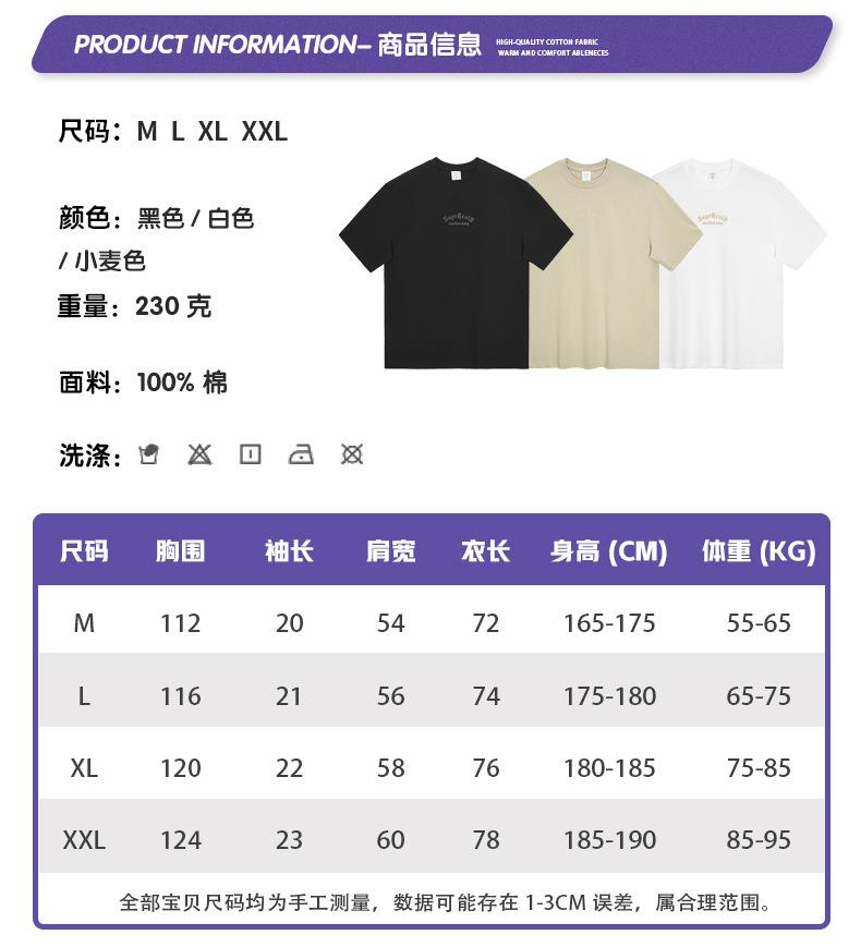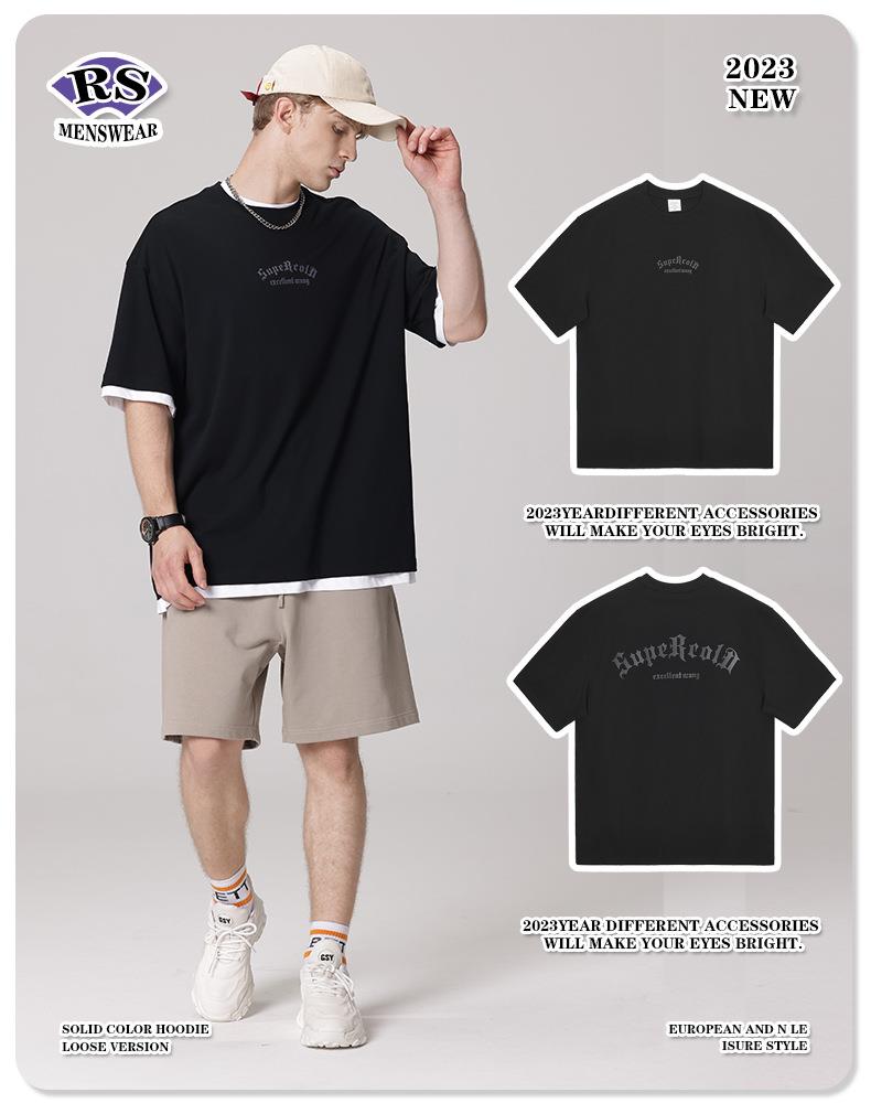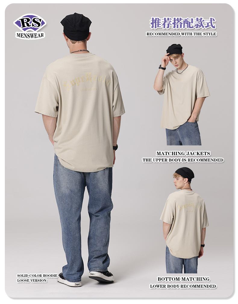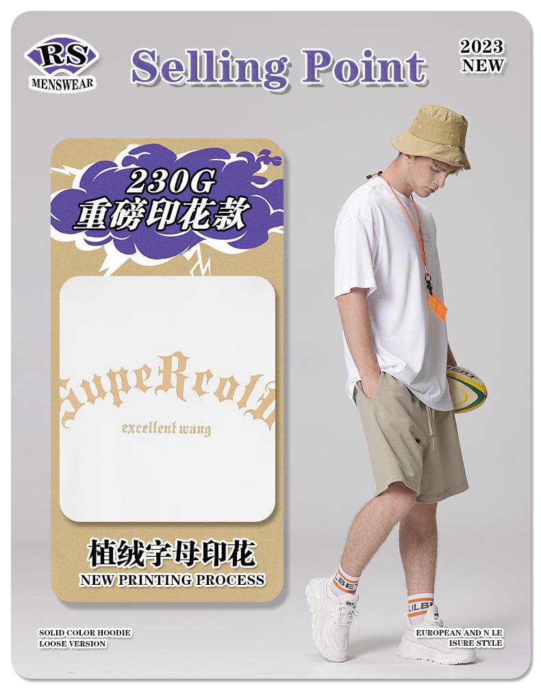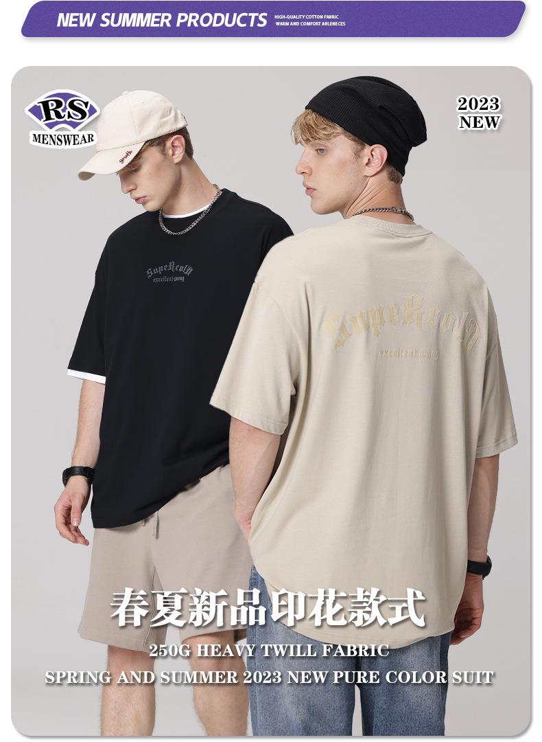 RS男装|2023夏季230g绒面植绒字母印花短袖街头高街欧美风潮牌T恤