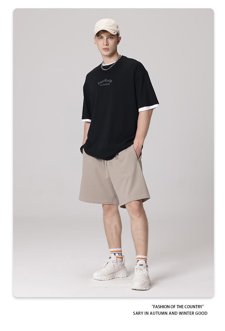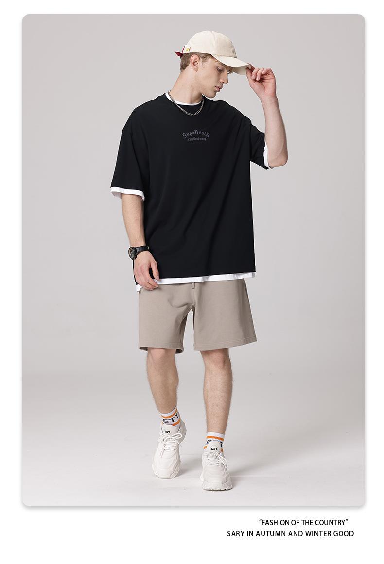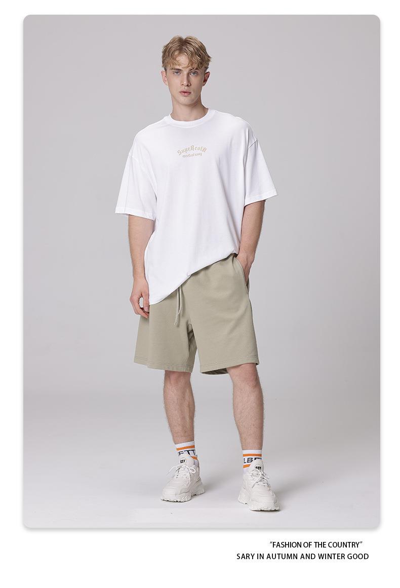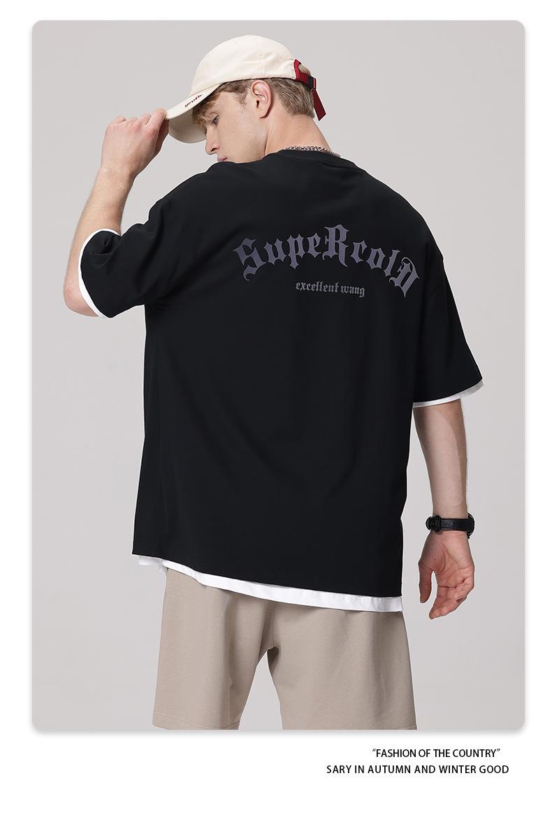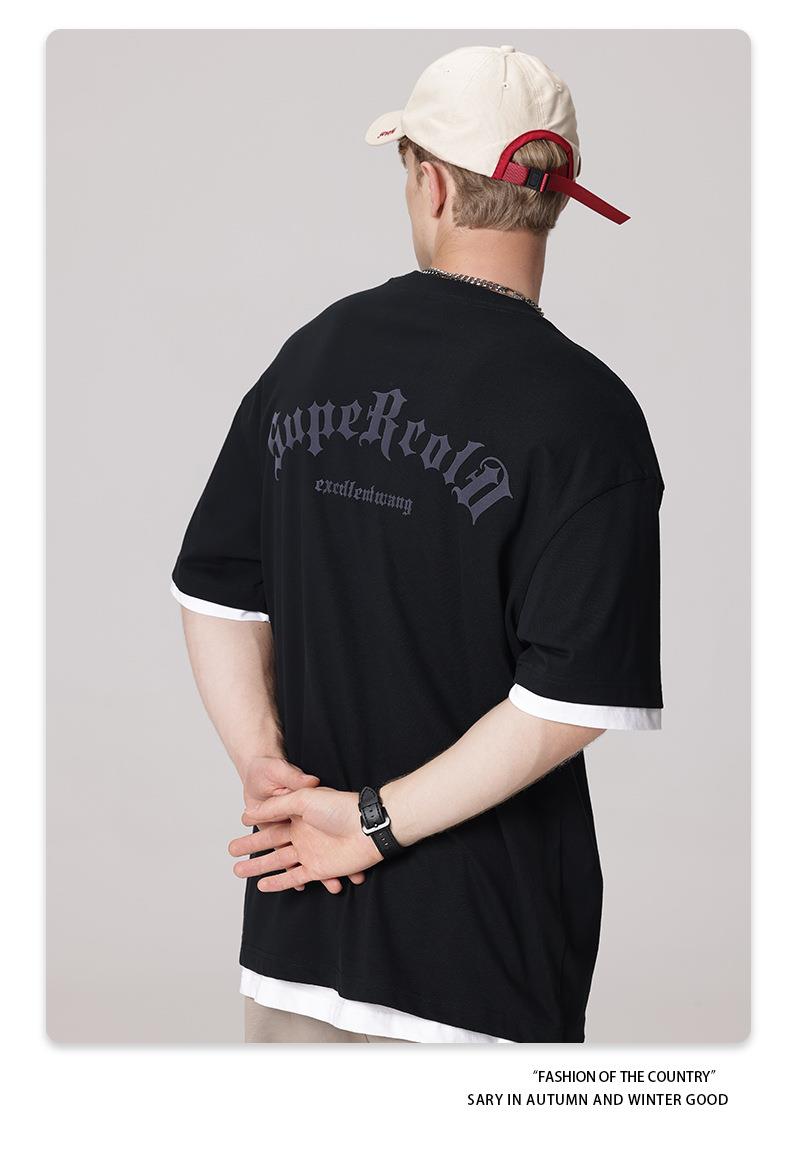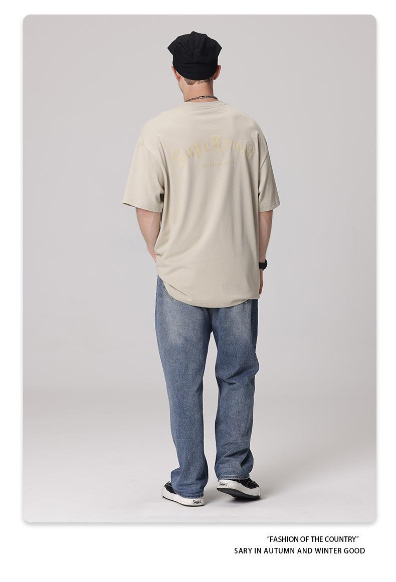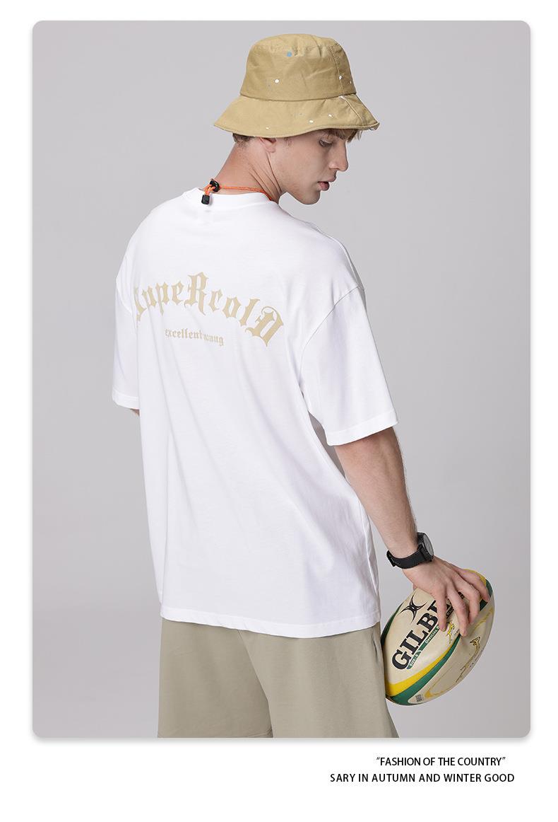 RS男装|2023夏季230g绒面植绒字母印花短袖街头高街欧美风潮牌T恤
