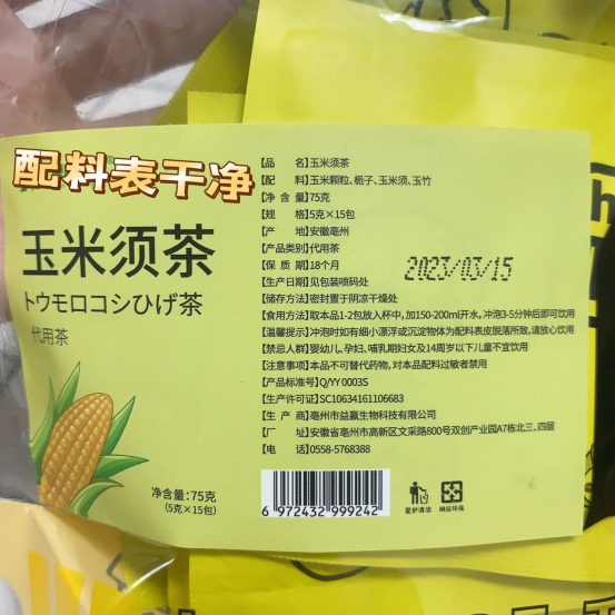 配料只有玉米颗粒+玉竹+玉米须+栀子 安心饮用