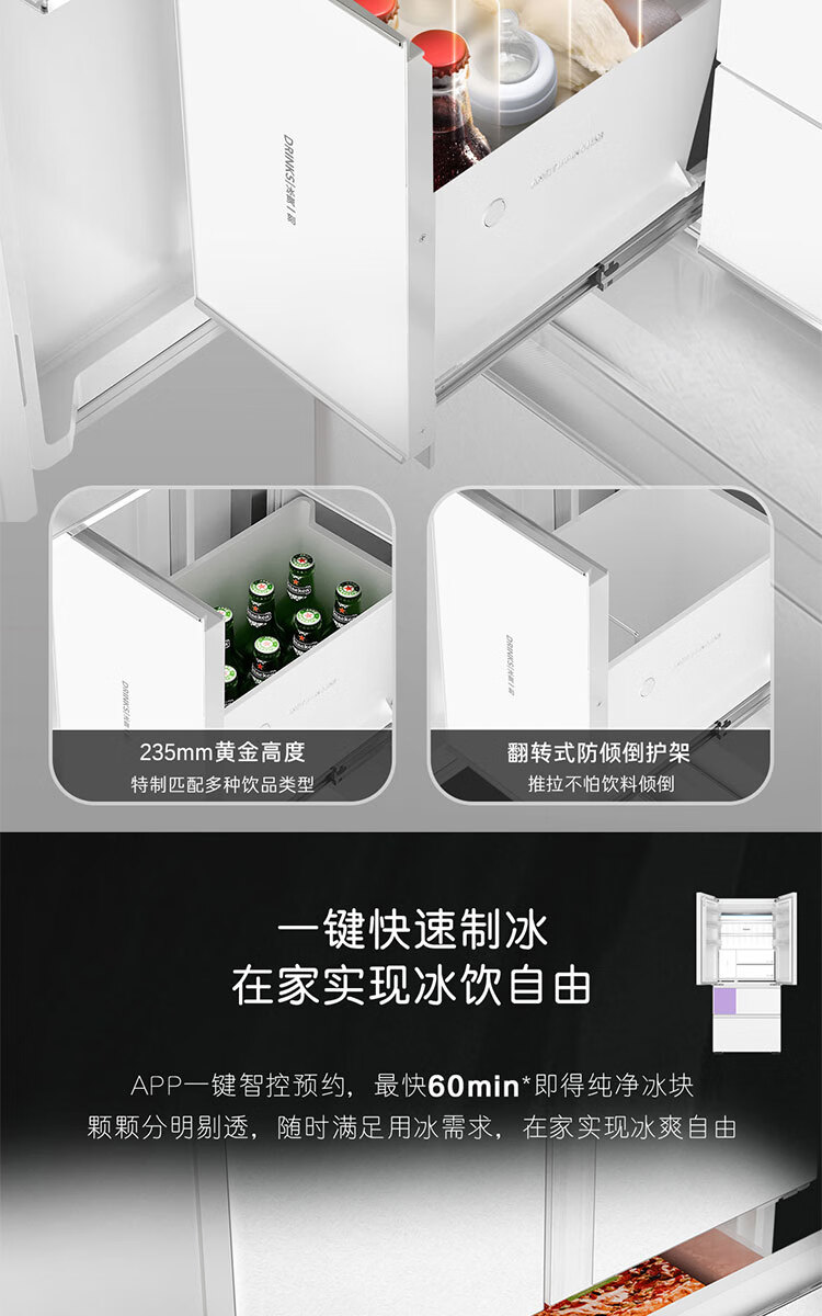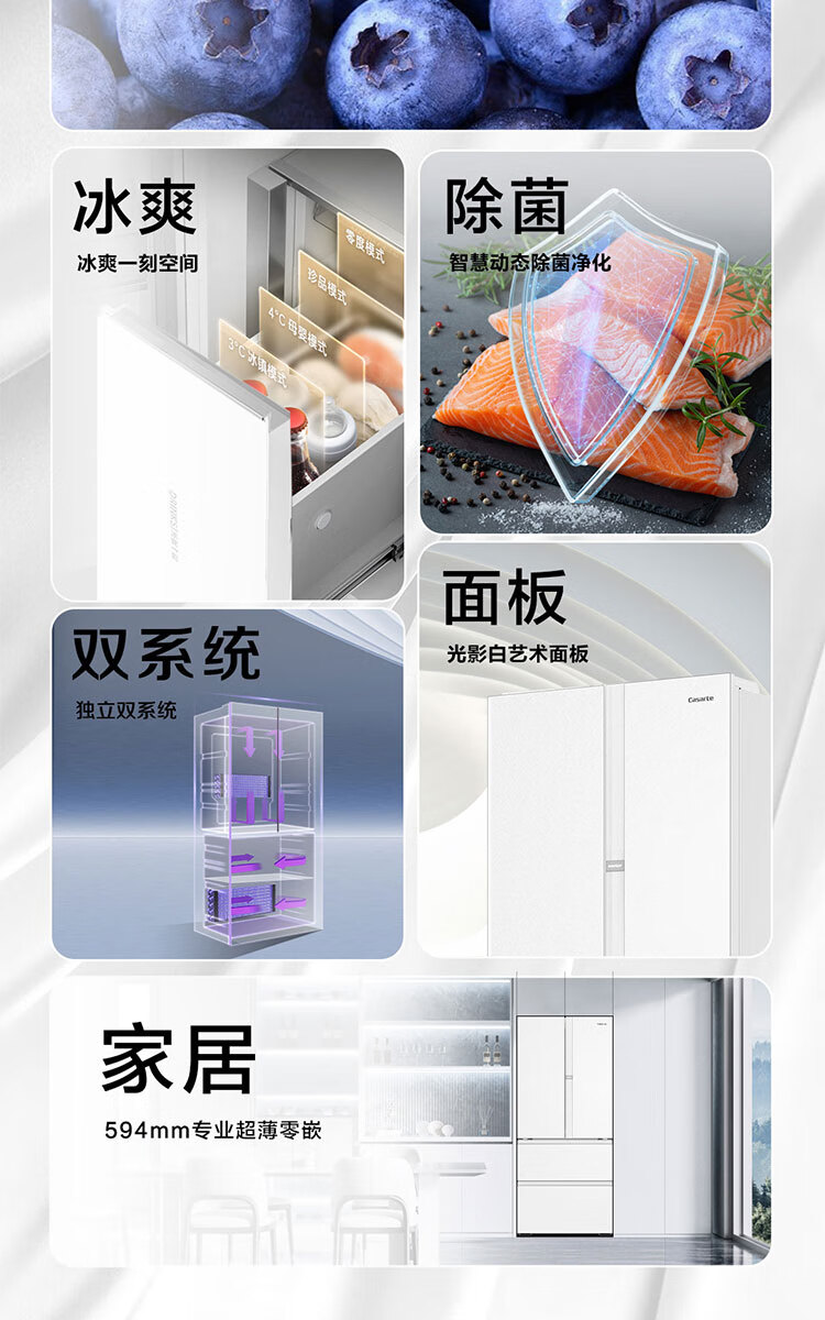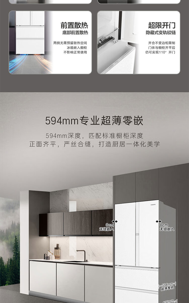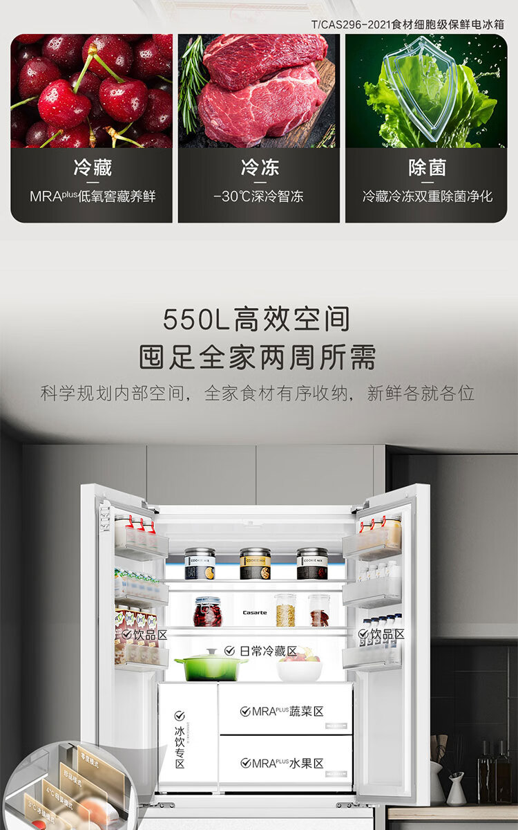 卡萨帝(Casarte)冰箱550升法式多门冰箱变频节能风冷无霜一级能效 594mm超薄嵌入冰箱 独立制冷双系统+550升+双重除菌BCD-550WGCFDMGZHU1(白)