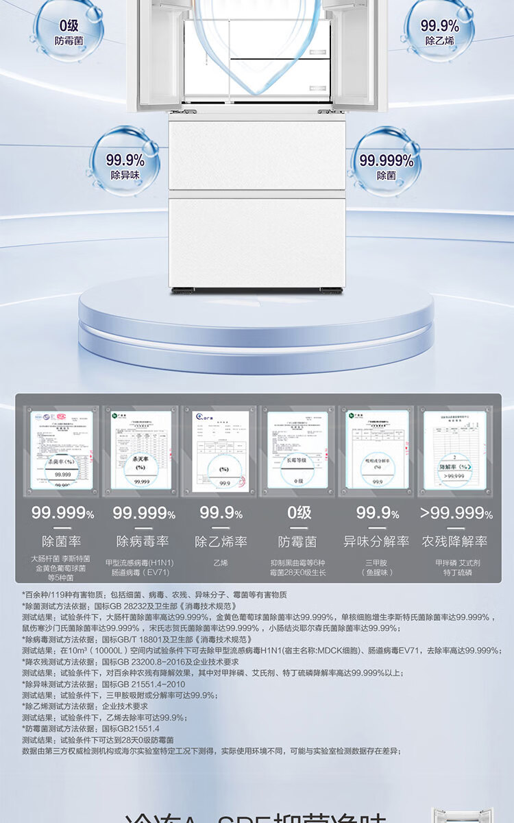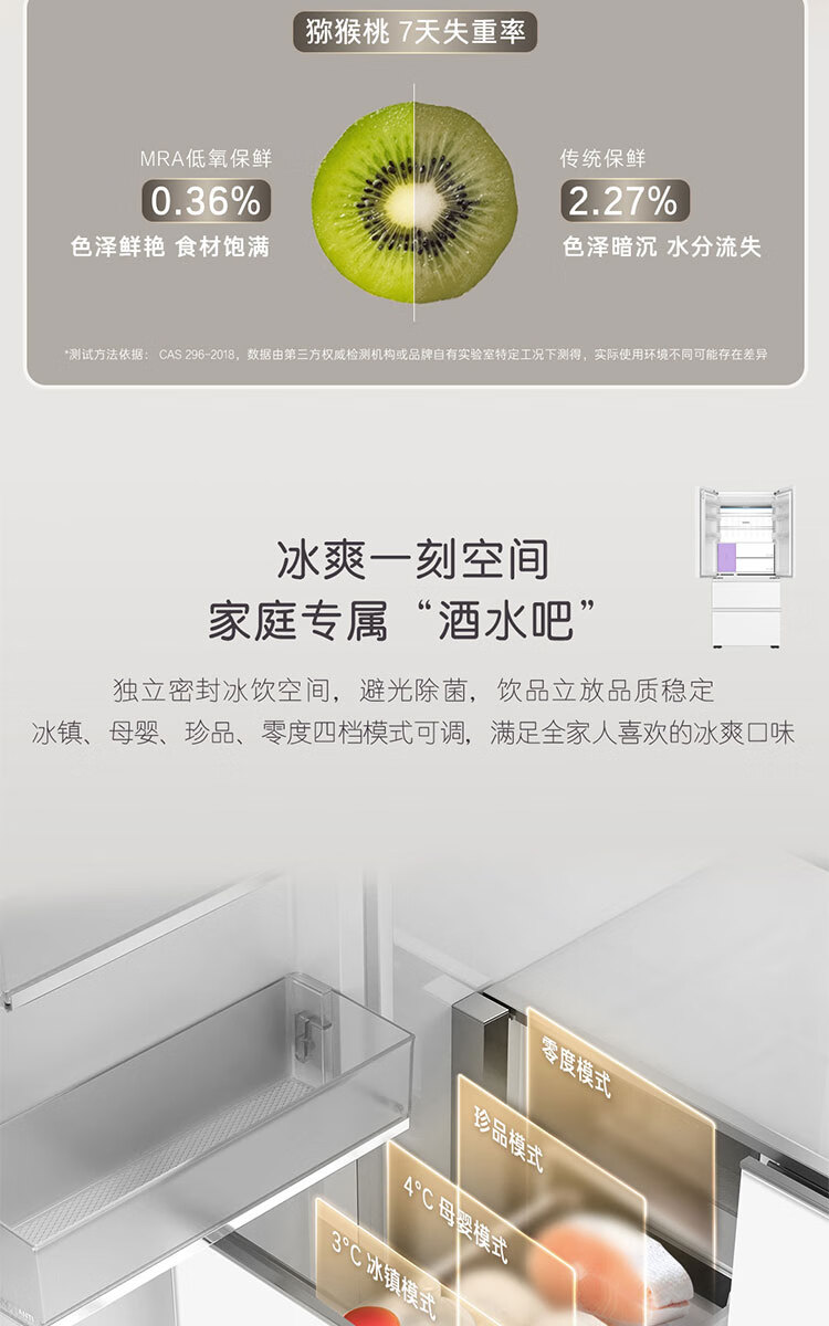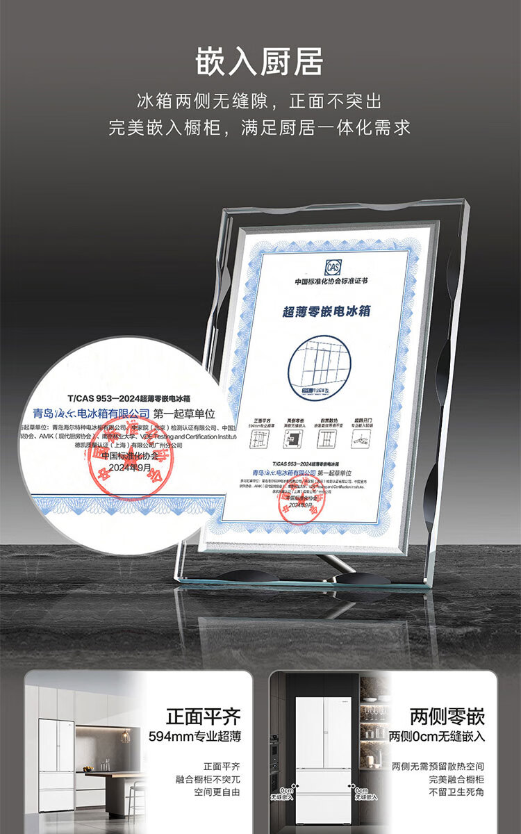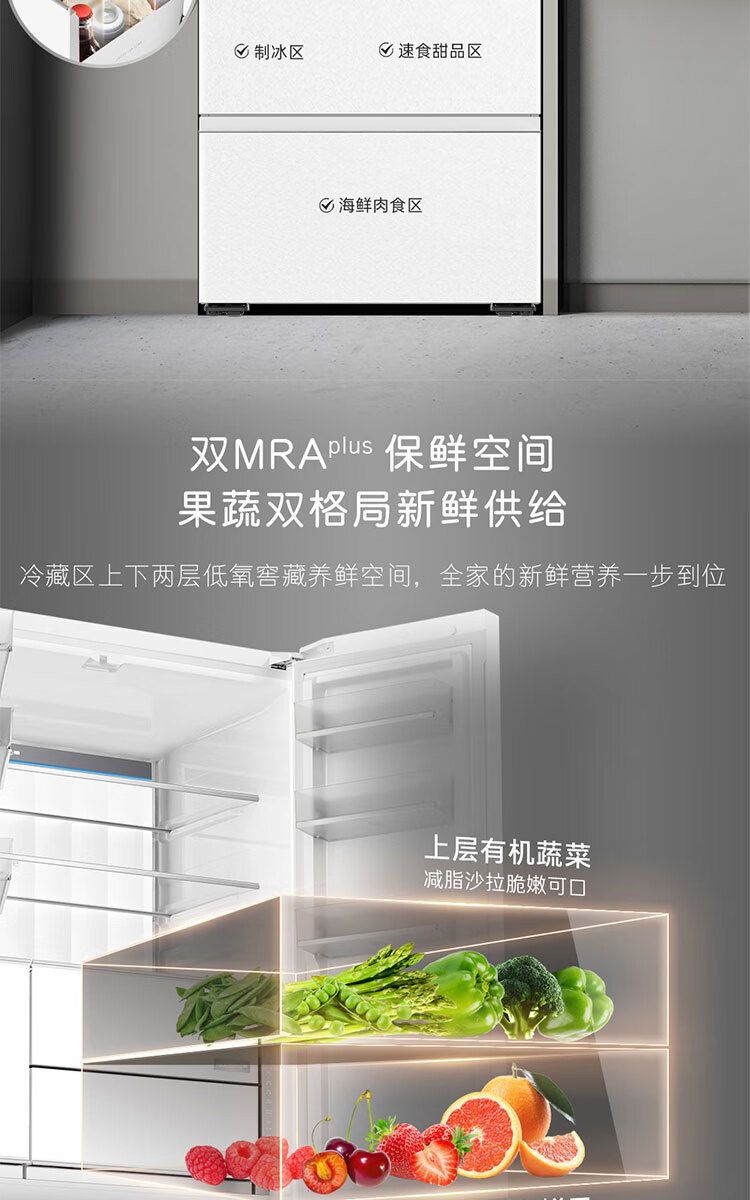 卡萨帝(Casarte)冰箱550升法式多门冰箱变频节能风冷无霜一级能效 594mm超薄嵌入冰箱 独立制冷双系统+550升+双重除菌BCD-550WGCFDMGZHU1(白)