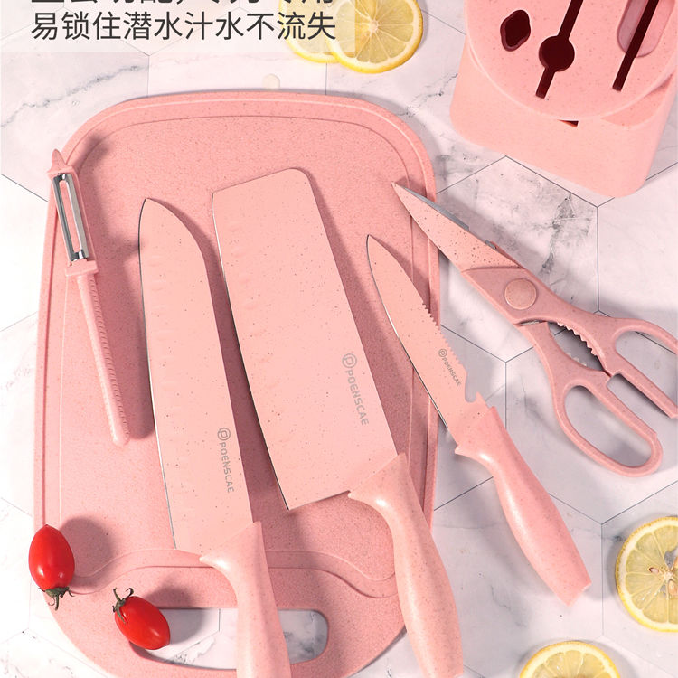 小麦秸秆切菜案板 家用宿舍刀具切菜板防霉 防菌塑料水果板砧板套装