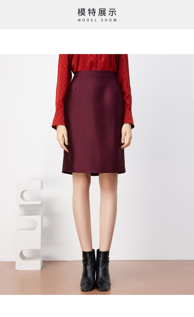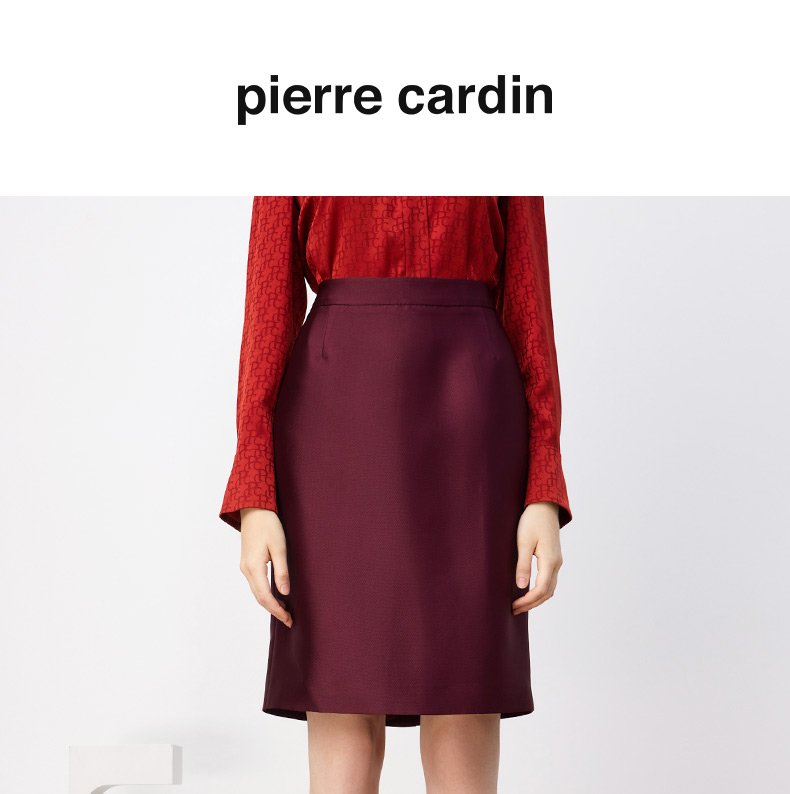皮尔卡丹女装半身裙酒红色喜庆醋酸直筒H版女半裙P3308S3999T0