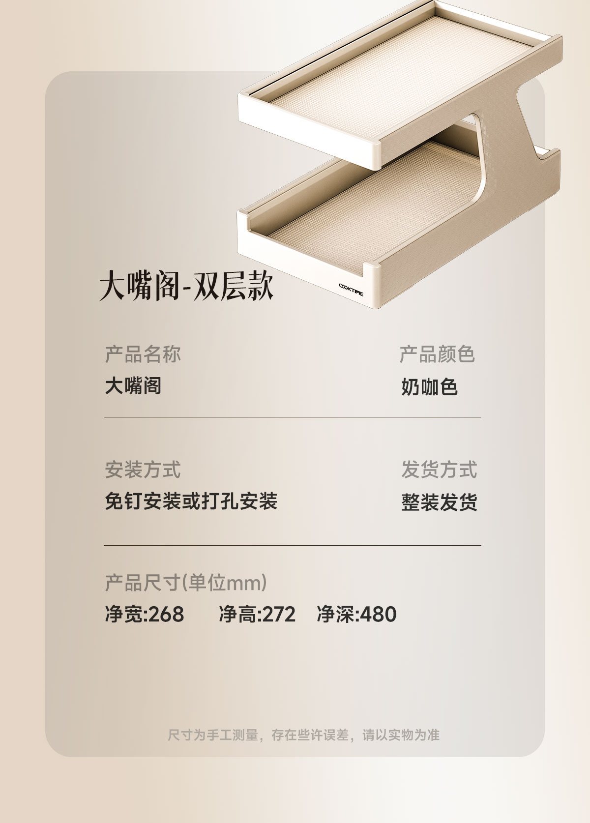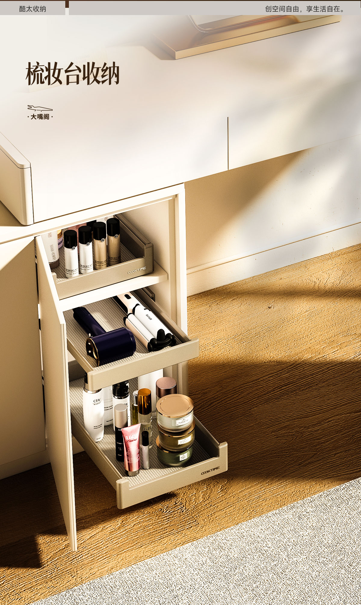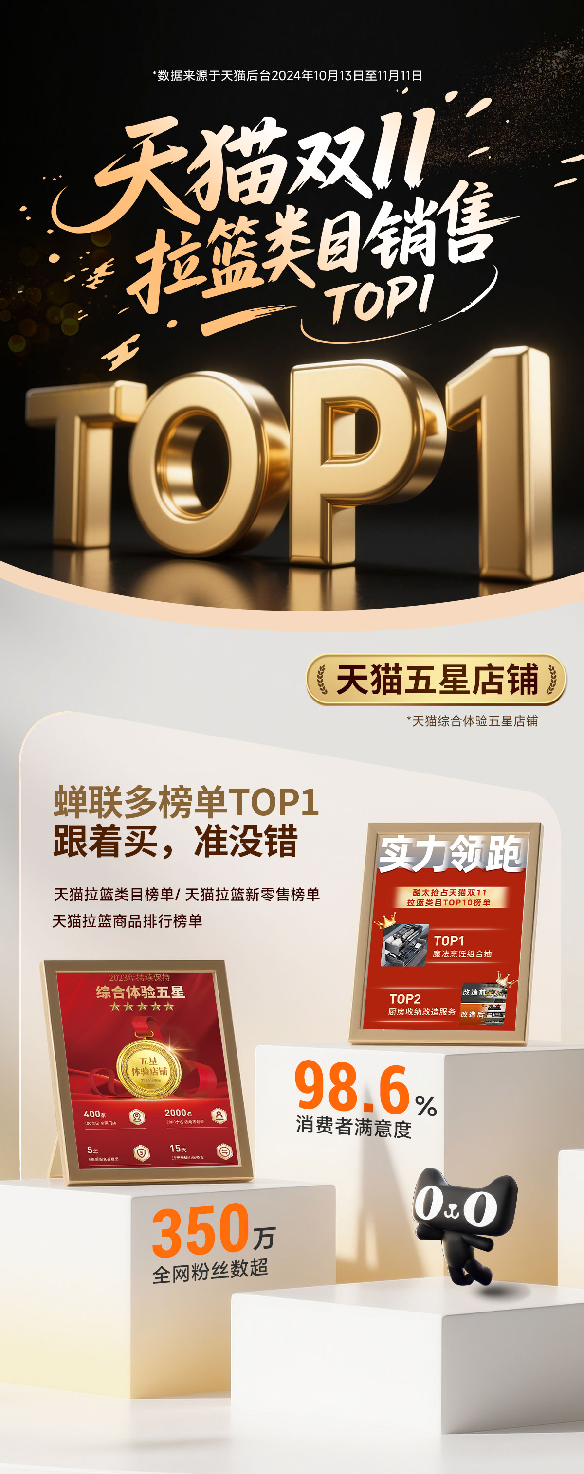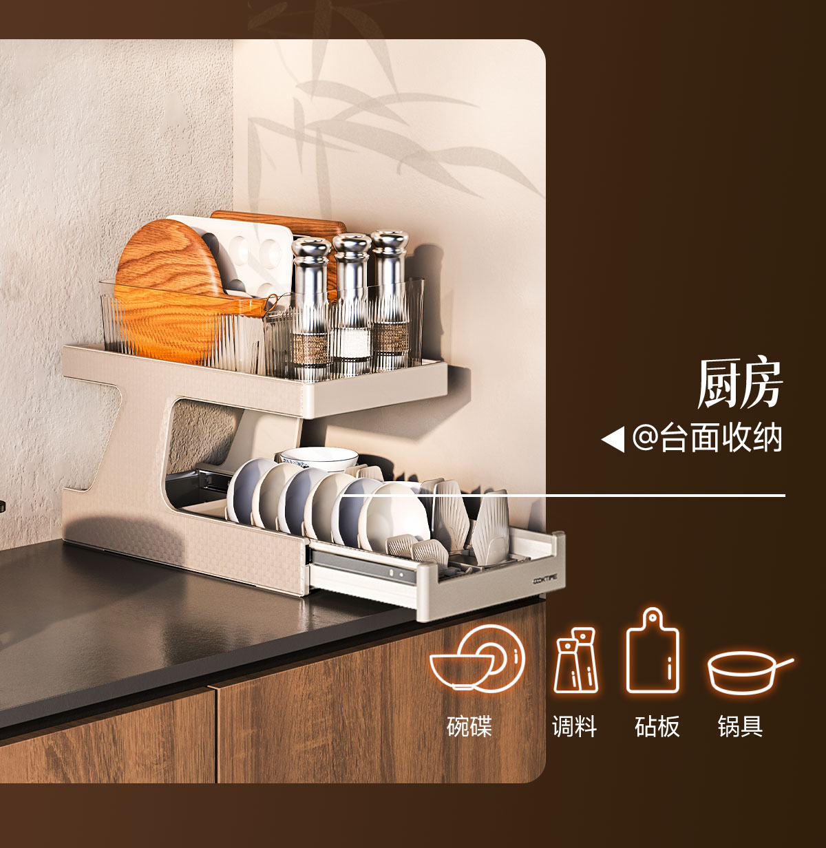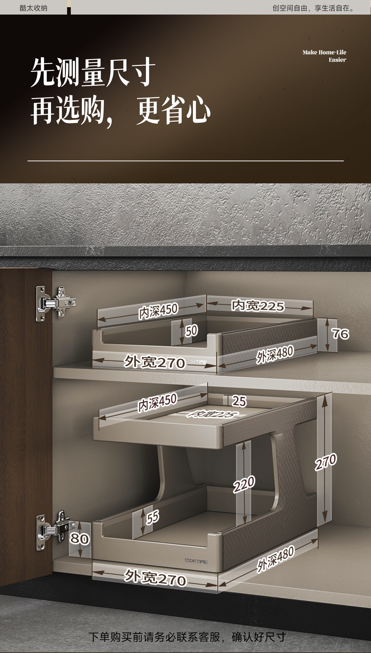 - 酷太坚持8年自主研发,已获得专利证书130项,拥有一套领先市场的厨房收纳系统,为千万中国家庭解决厨房脏乱差,缔造厨房新生活。