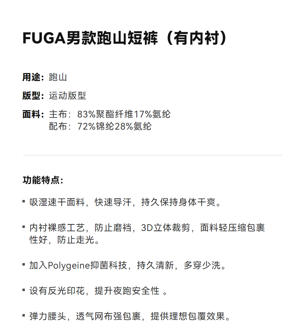 KAILAS凯乐石 FUGA男款跑山短裤(有内衬)KG2535304