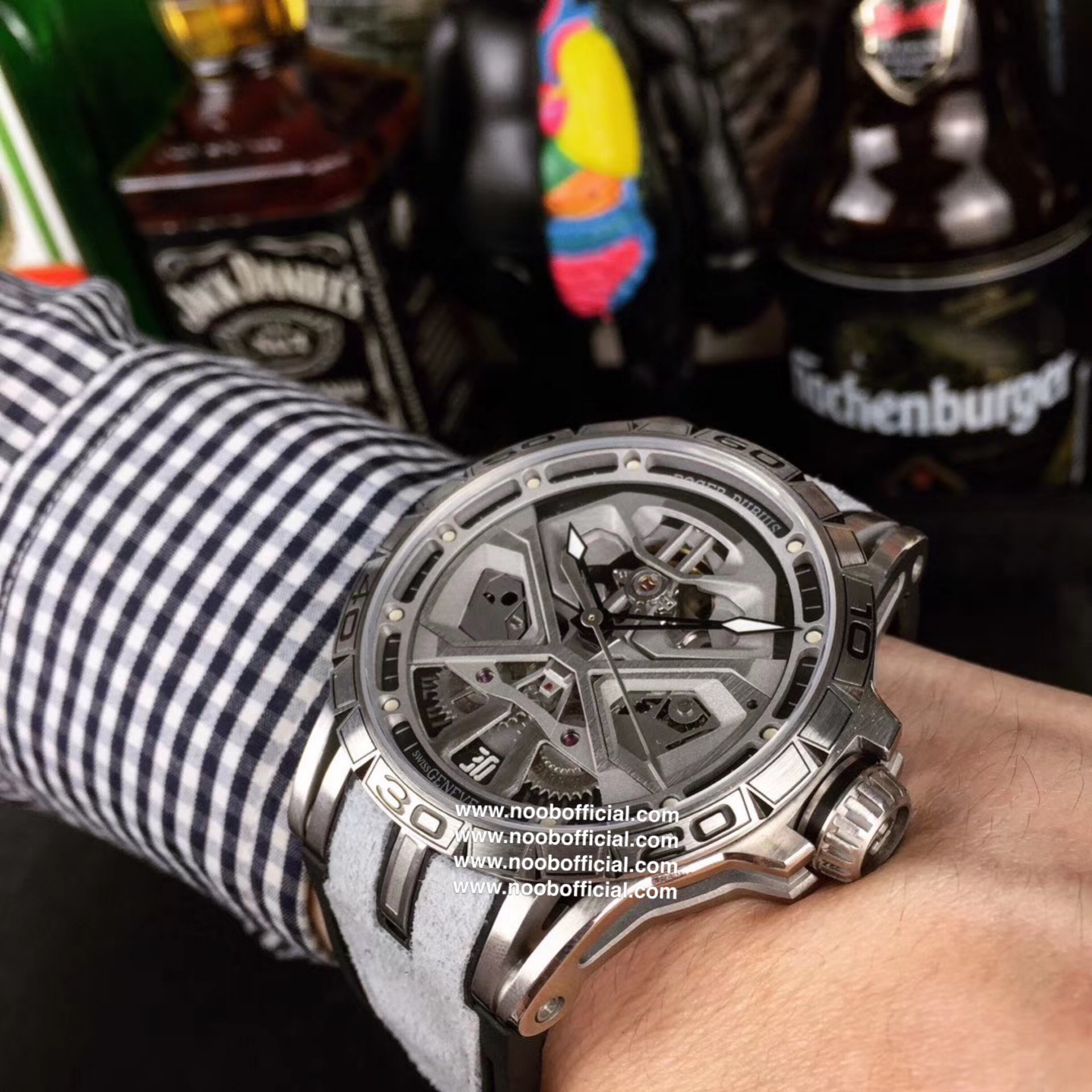 罗杰杜彼 ROGER DUBUIS (豪爵)Excalibur 王者系列 Sapphire crystal Carbon 钛合金 黑色DLC 涂层钛合金 镌刻日内瓦印记