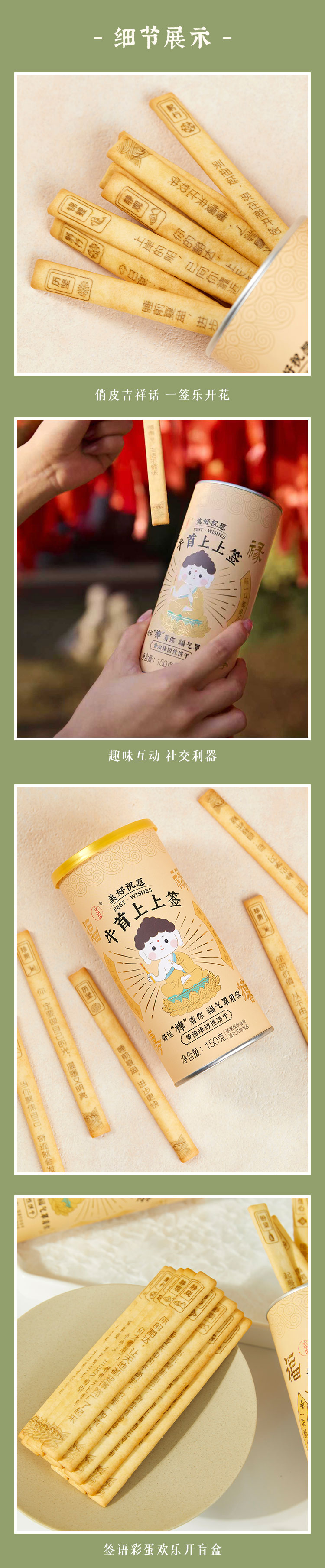 此款上上签饼干我们会包裹好发出,韧性饼干在快递途中因各种不确定因素可能会断裂,属于正常现象,介意勿拍。食品产品拆封后不支持退换,敬请理解!