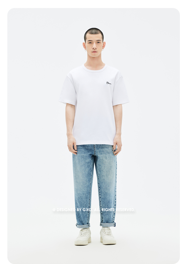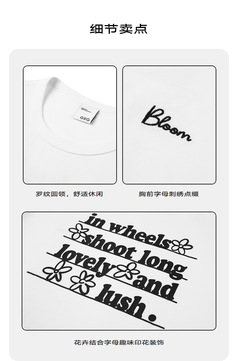 GXG白色微廓圆领短袖T恤GE1441006E