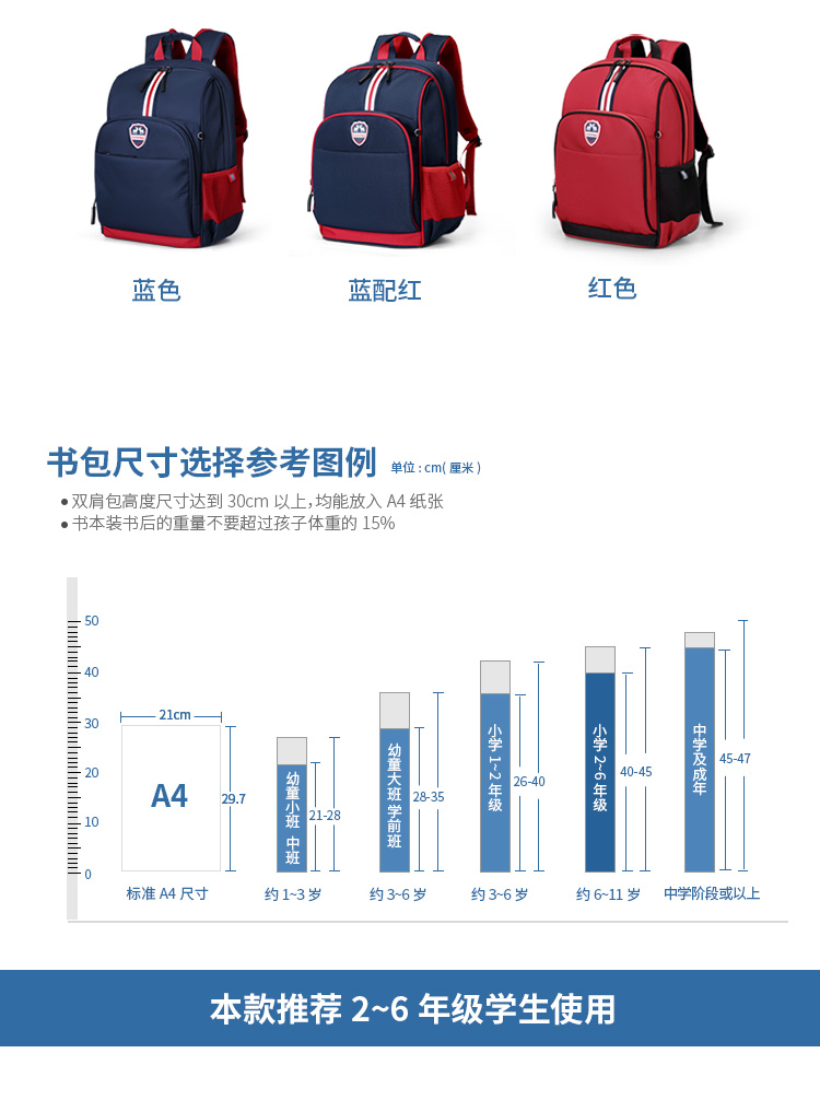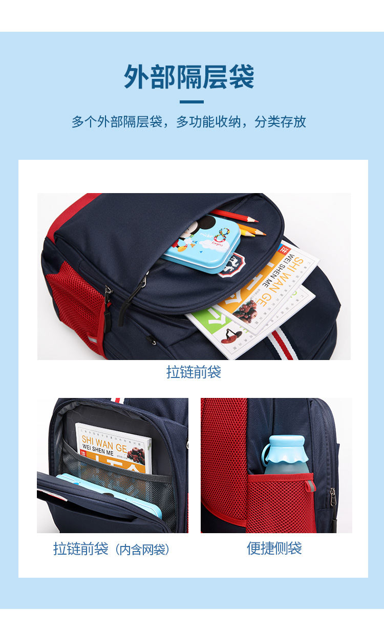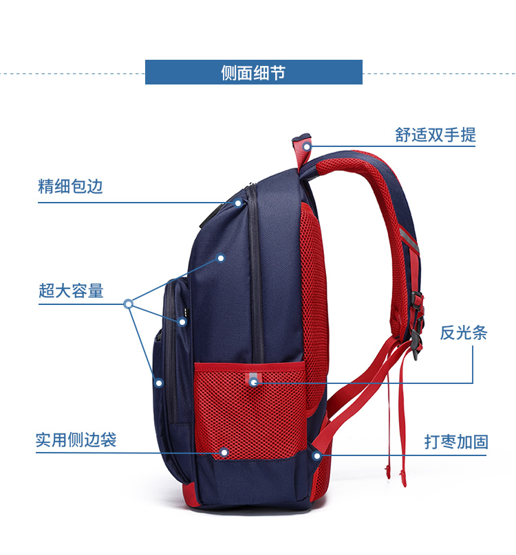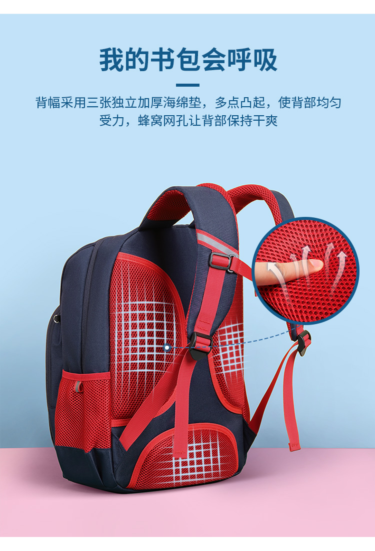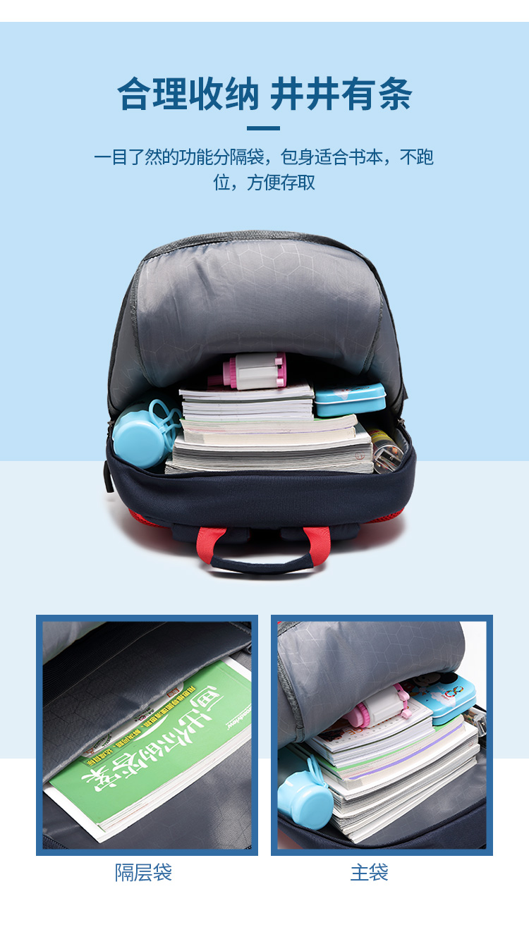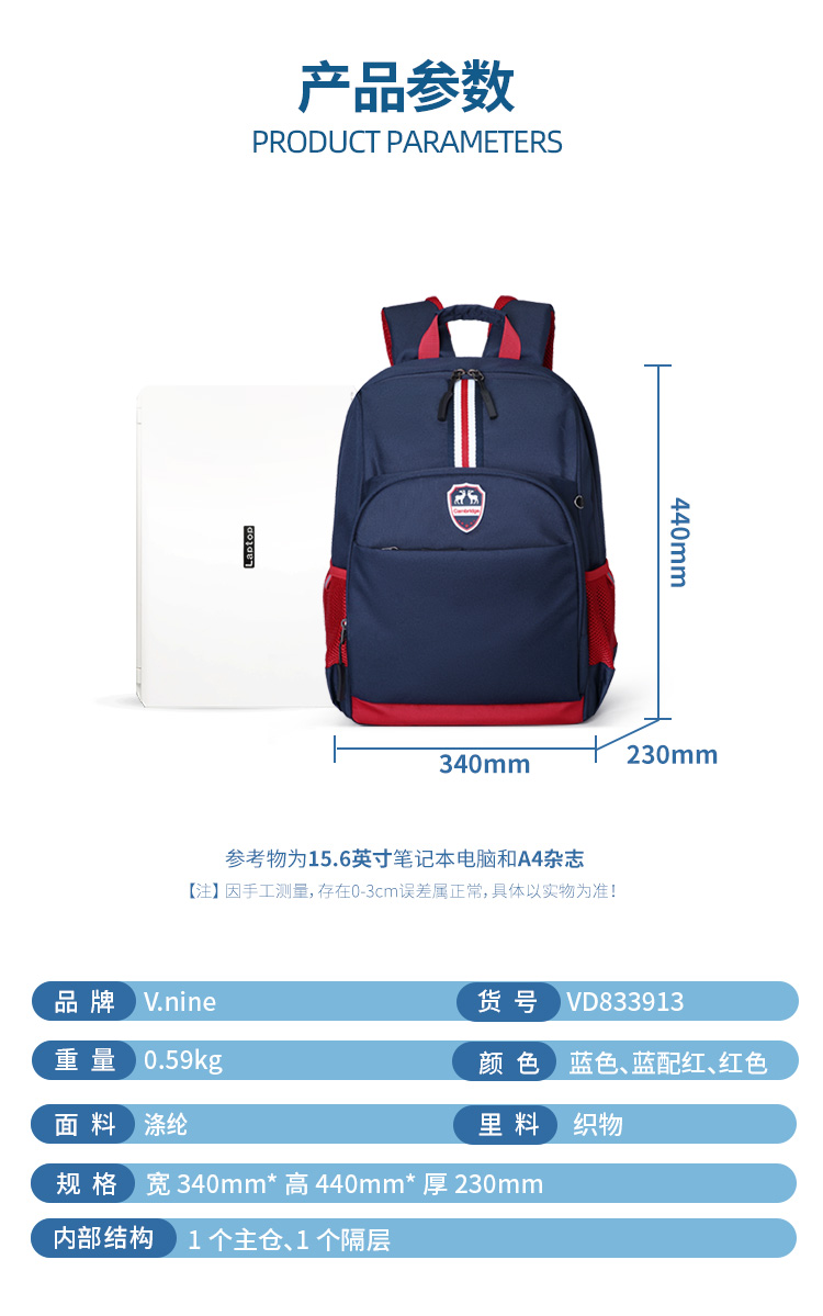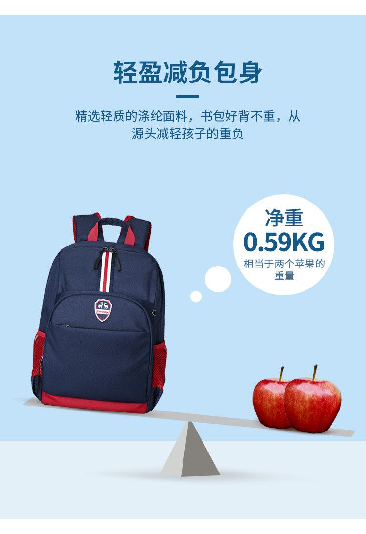 第九城V.NINE 小学生书包 男女孩儿童书包3-6年级减负初中双肩背包 VD8BV33913J 蓝色