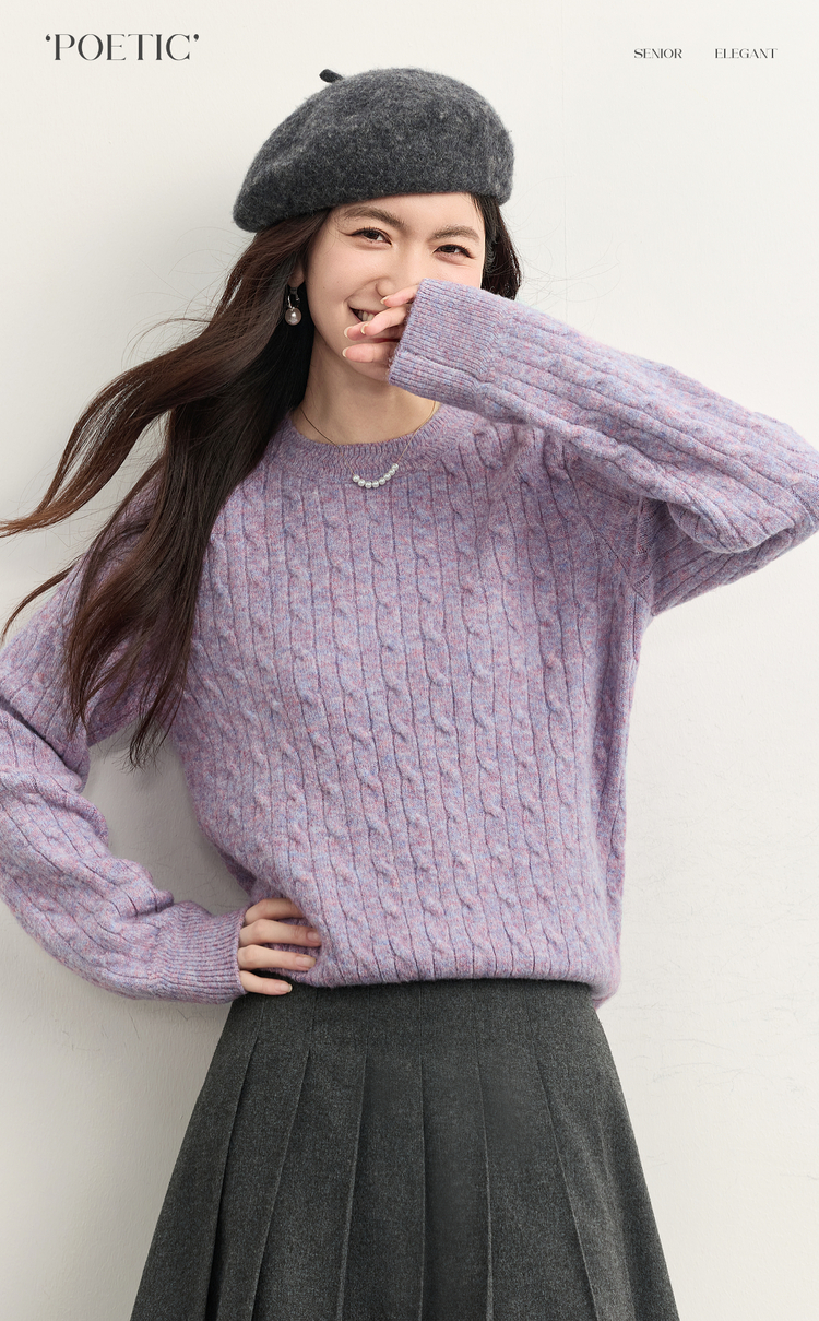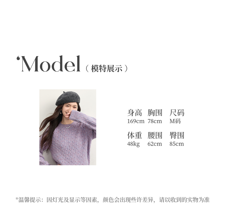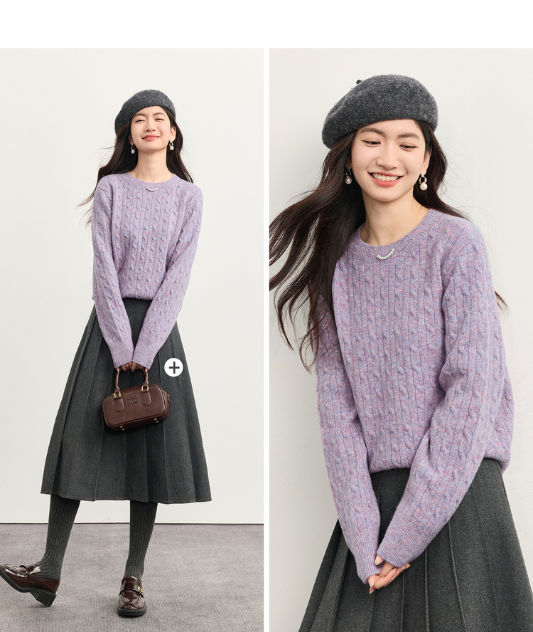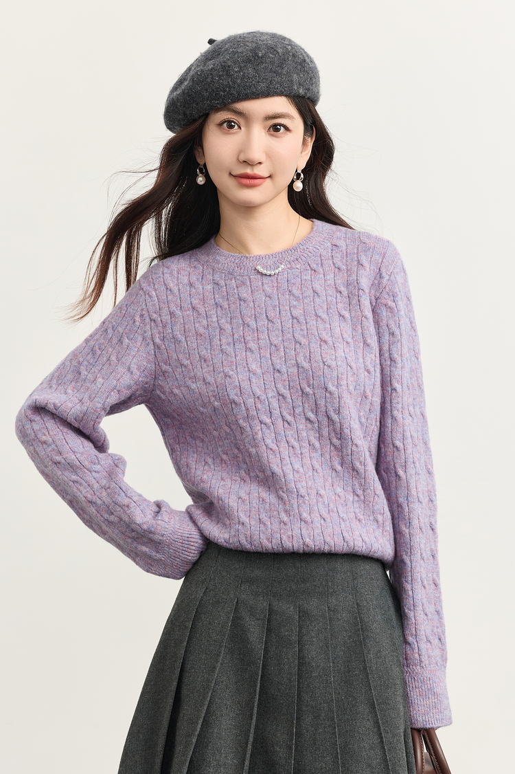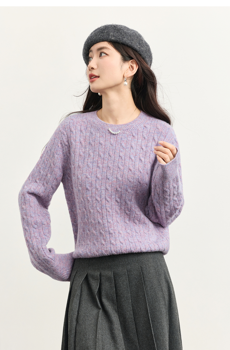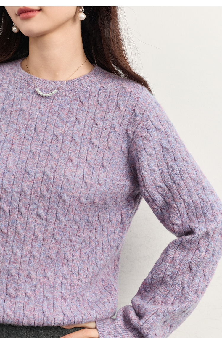 【10/15新品】熙世界莫奈粉紫绞花毛衣女秋冬2025年新款复古圆领软糯羊毛针织衫