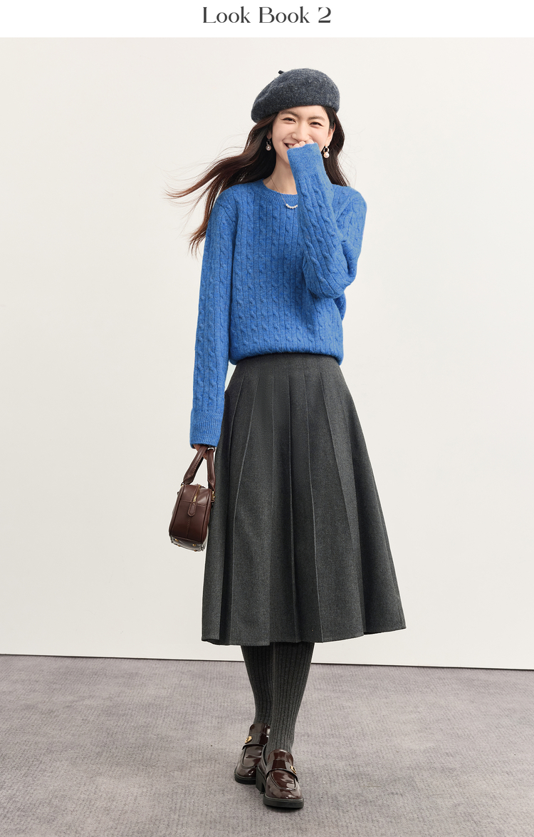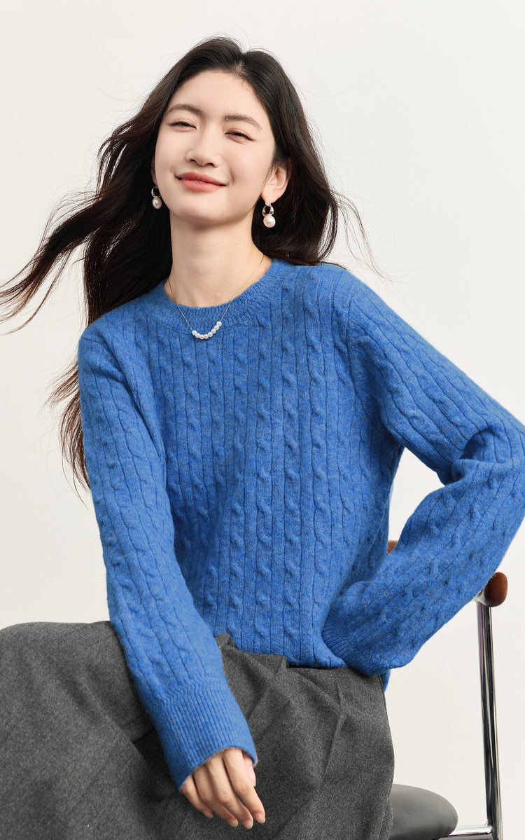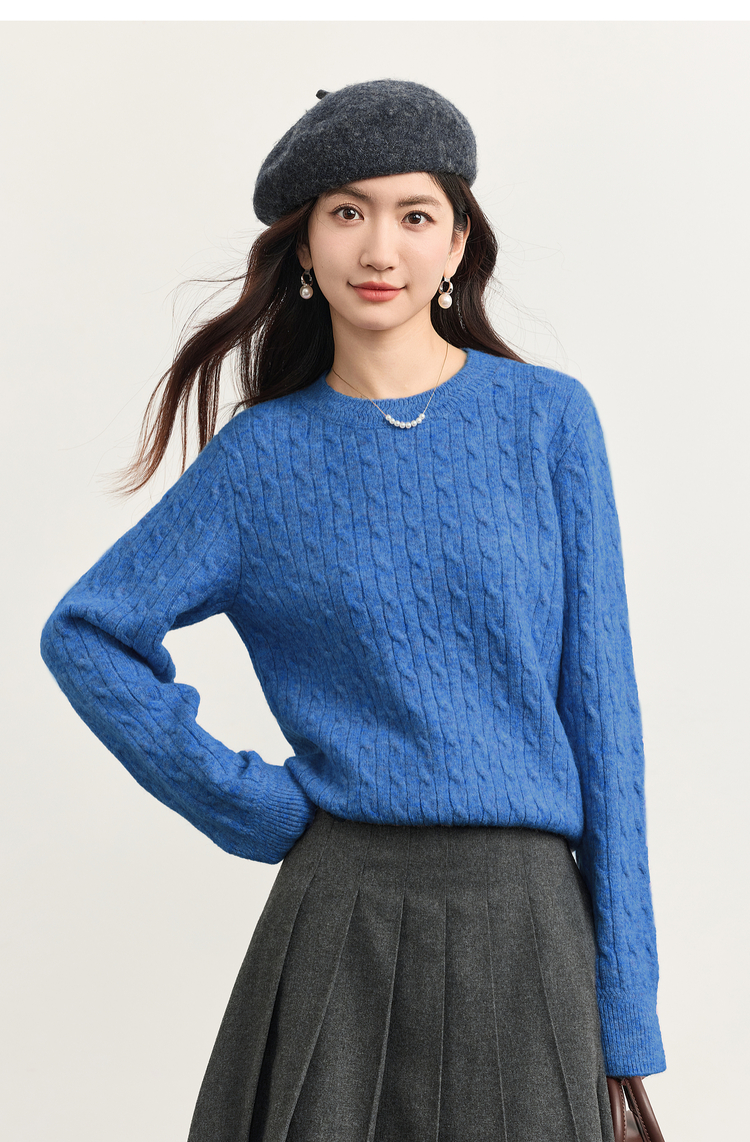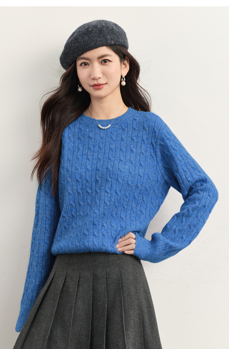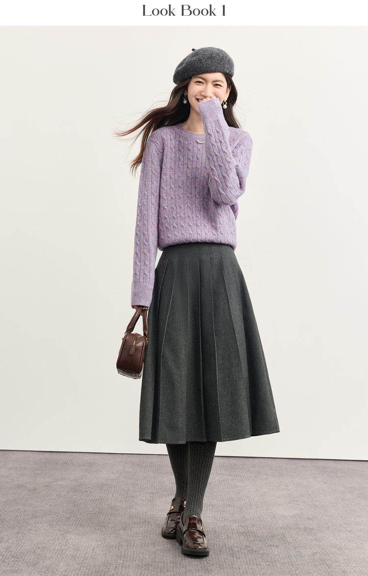 【10/15新品】熙世界莫奈粉紫绞花毛衣女秋冬2025年新款复古圆领软糯羊毛针织衫