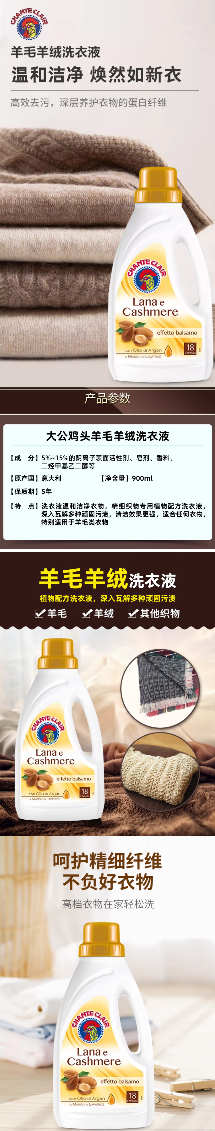 意大利进口大公鸡头羊毛羊绒洗衣液900ml