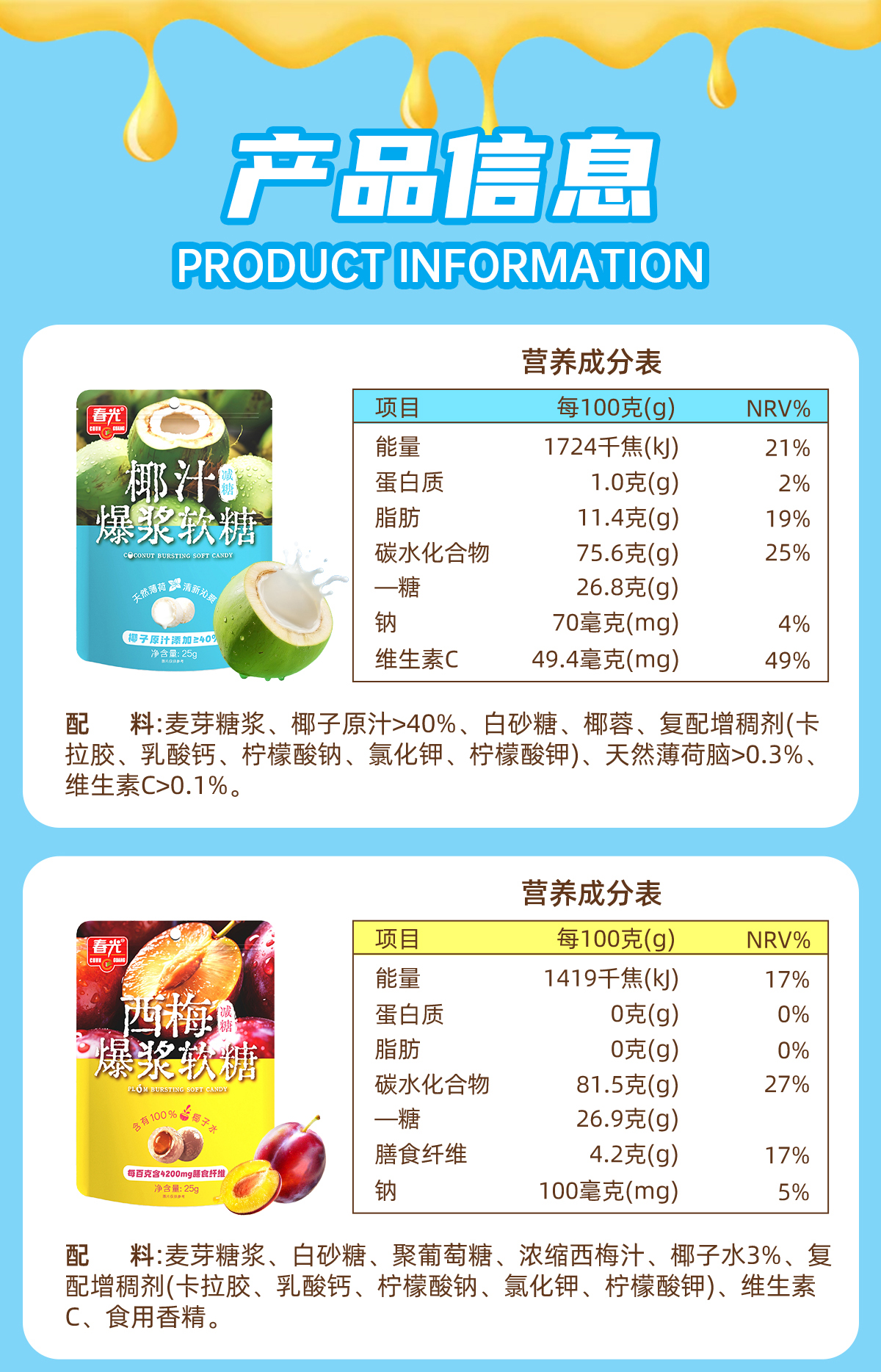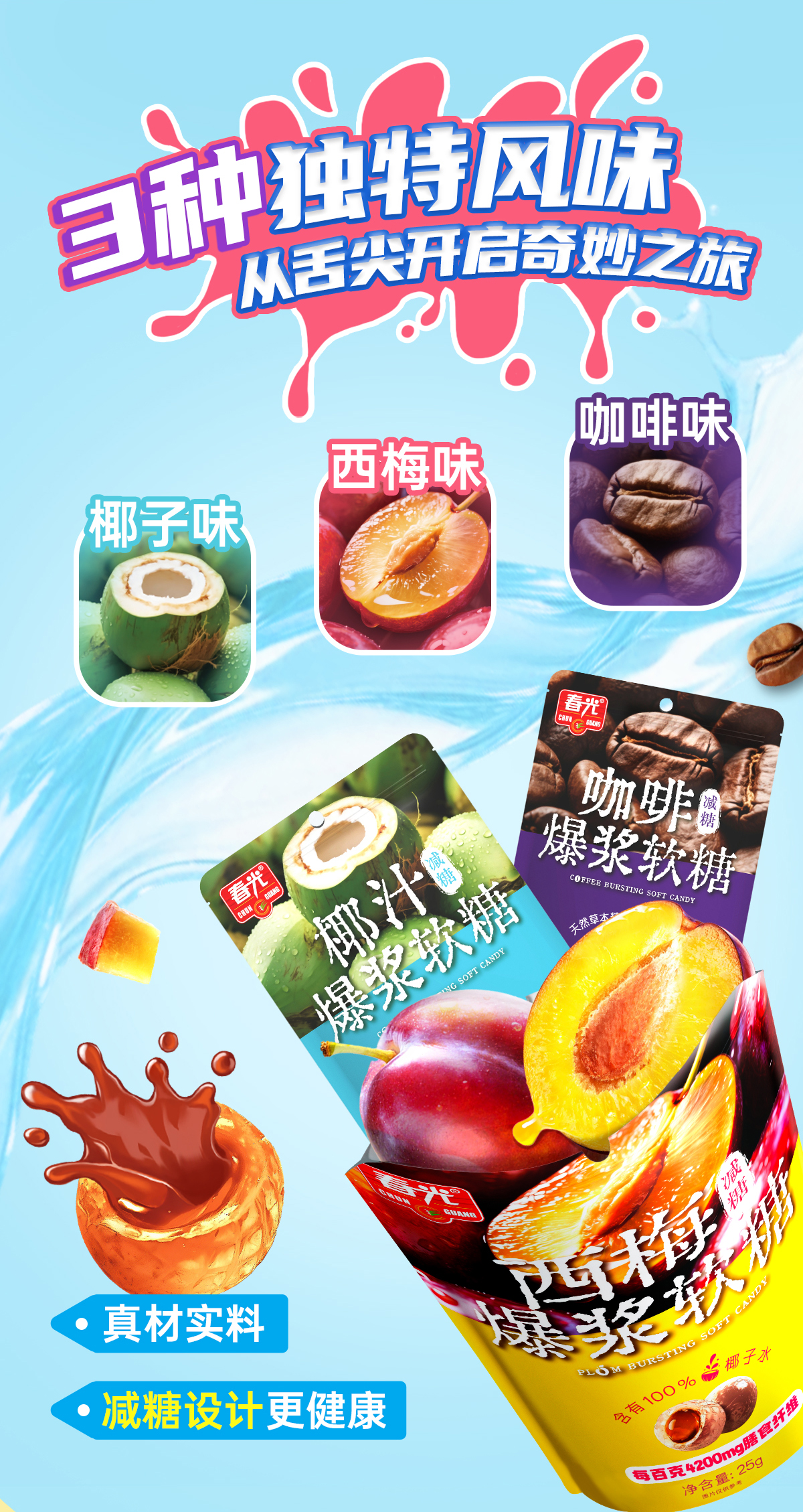 爆浆软糖25g*3袋(椰汁味+西梅味+咖啡味)【49元任选7件】
