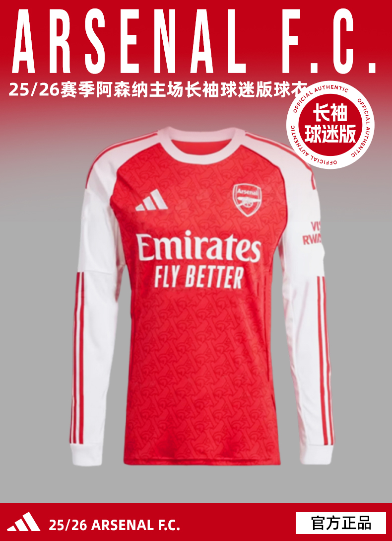 SFS阿迪达斯Adidas 25/26阿森纳主场长袖球迷版球衣足球服 JI9536