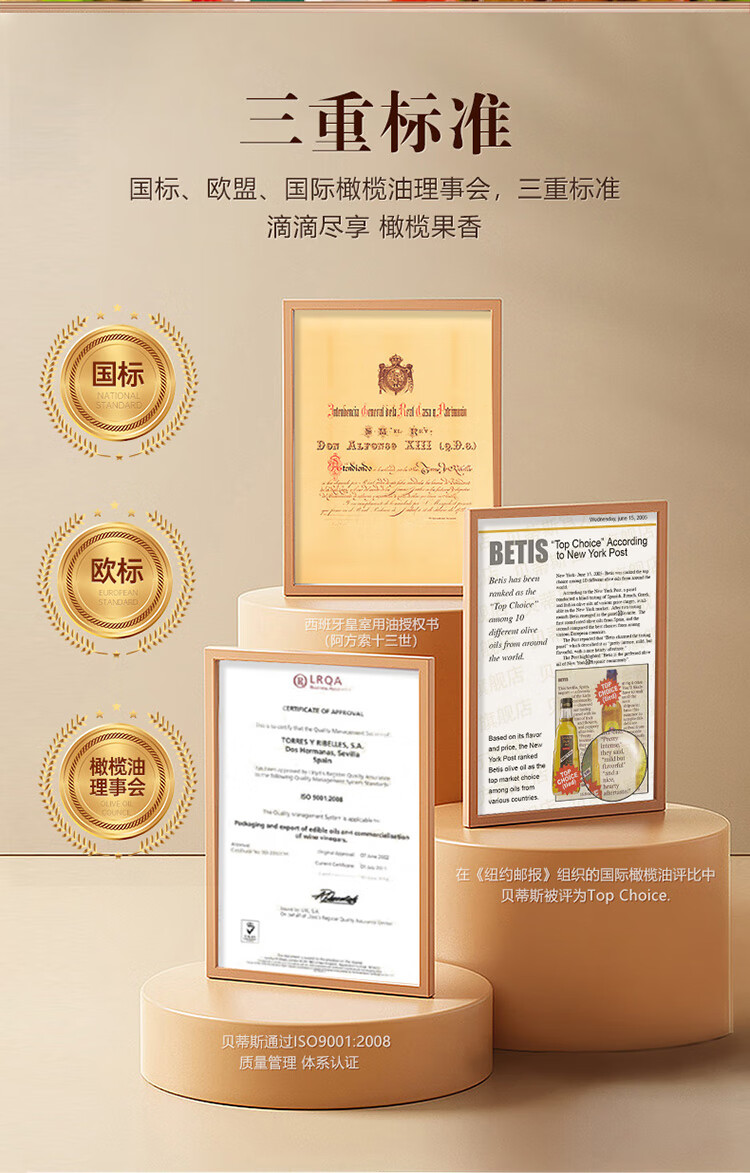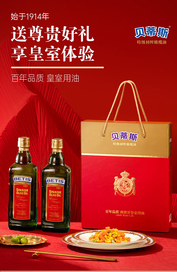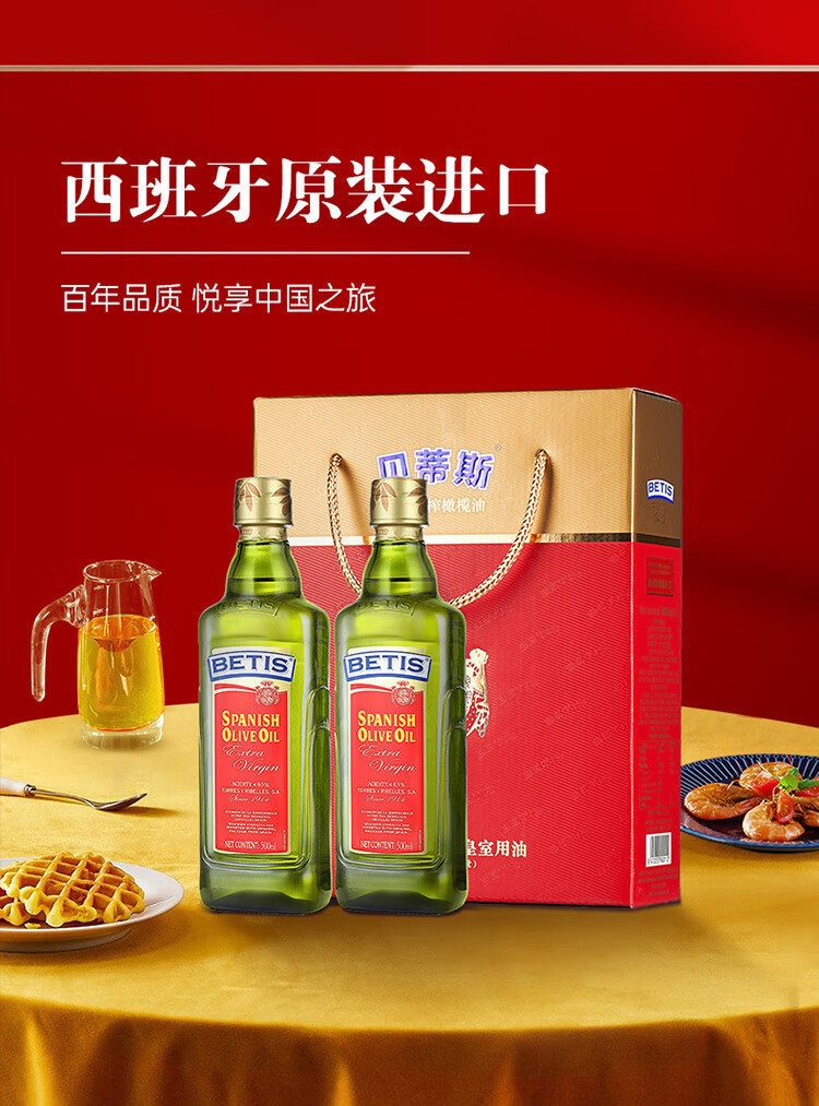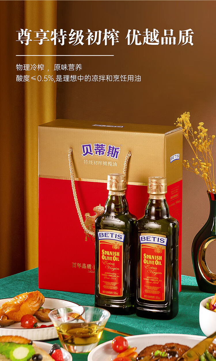 贝蒂斯(BETIS)食用油 特级初榨橄榄油500ml*2礼盒 西班牙原装进口 团购送礼