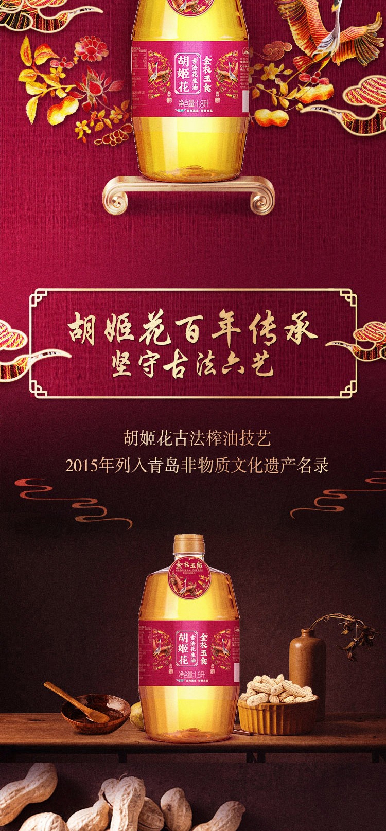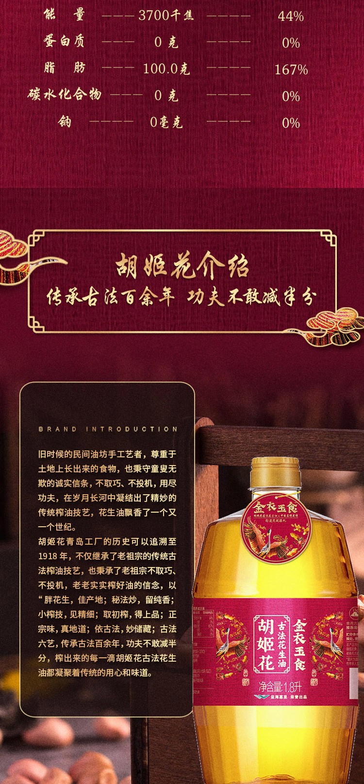金龙鱼 胡姬花金衣玉食古法花生油1.8L*2瓶 (72小时内发货)