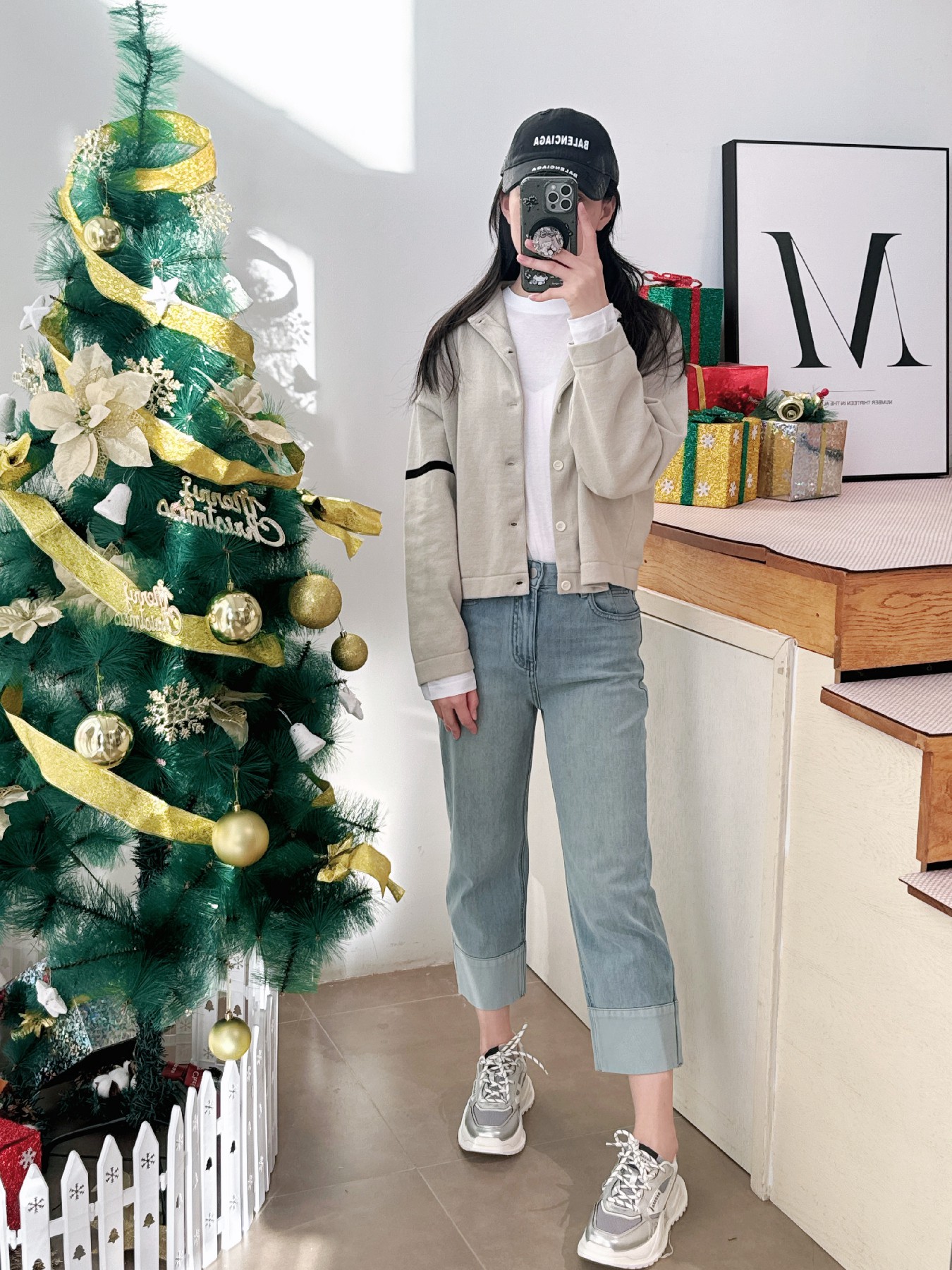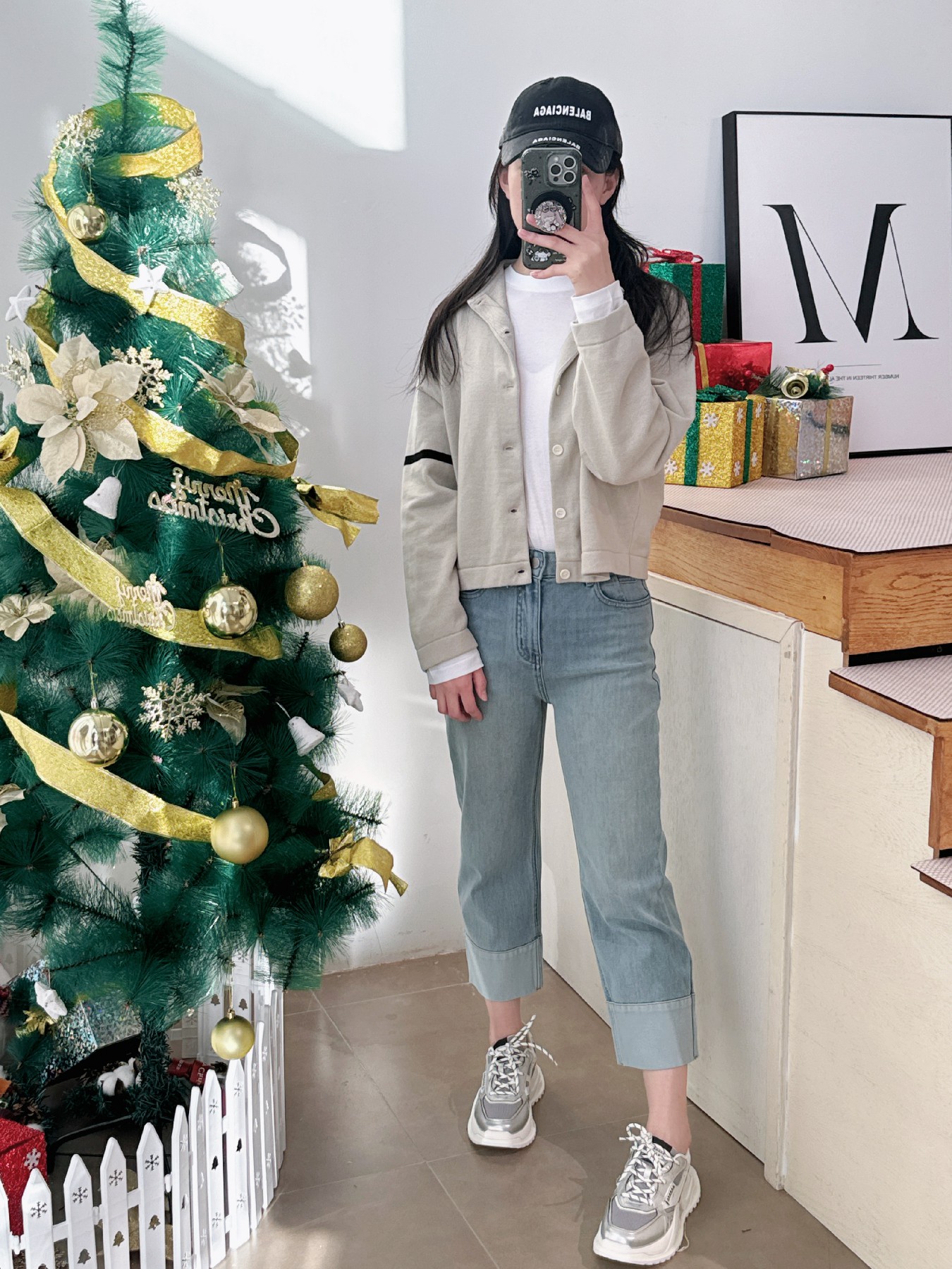 牛仔破洞老爹裤