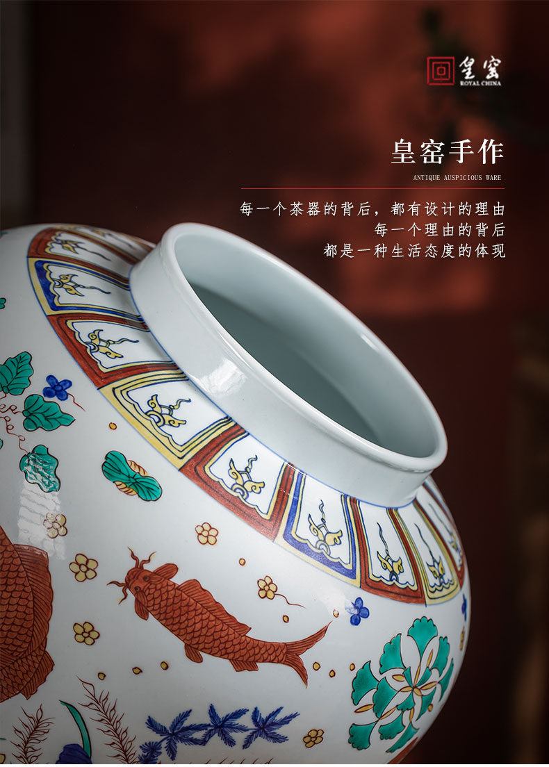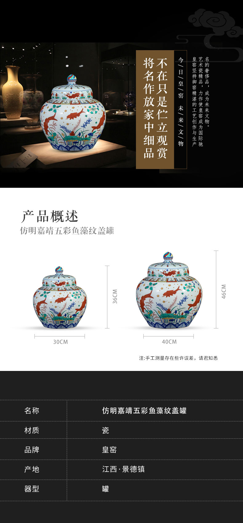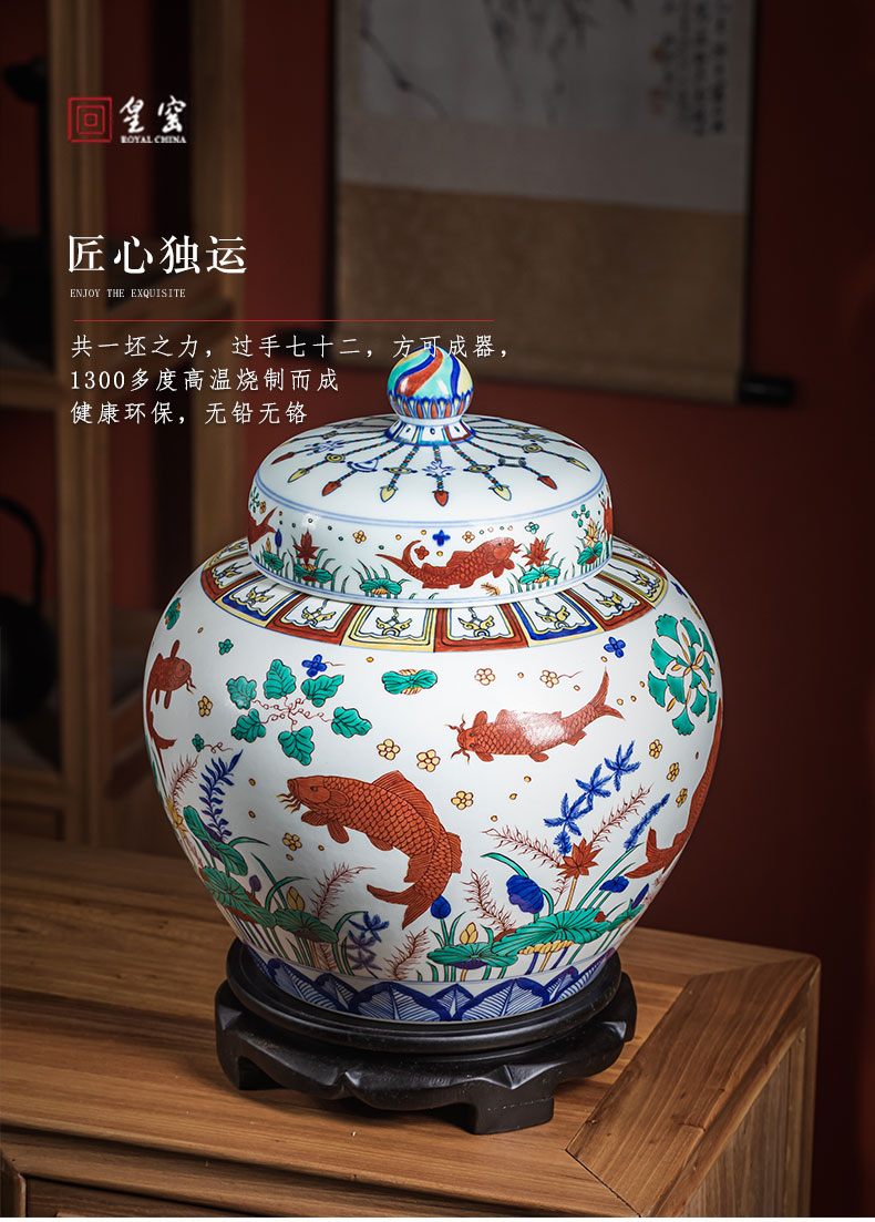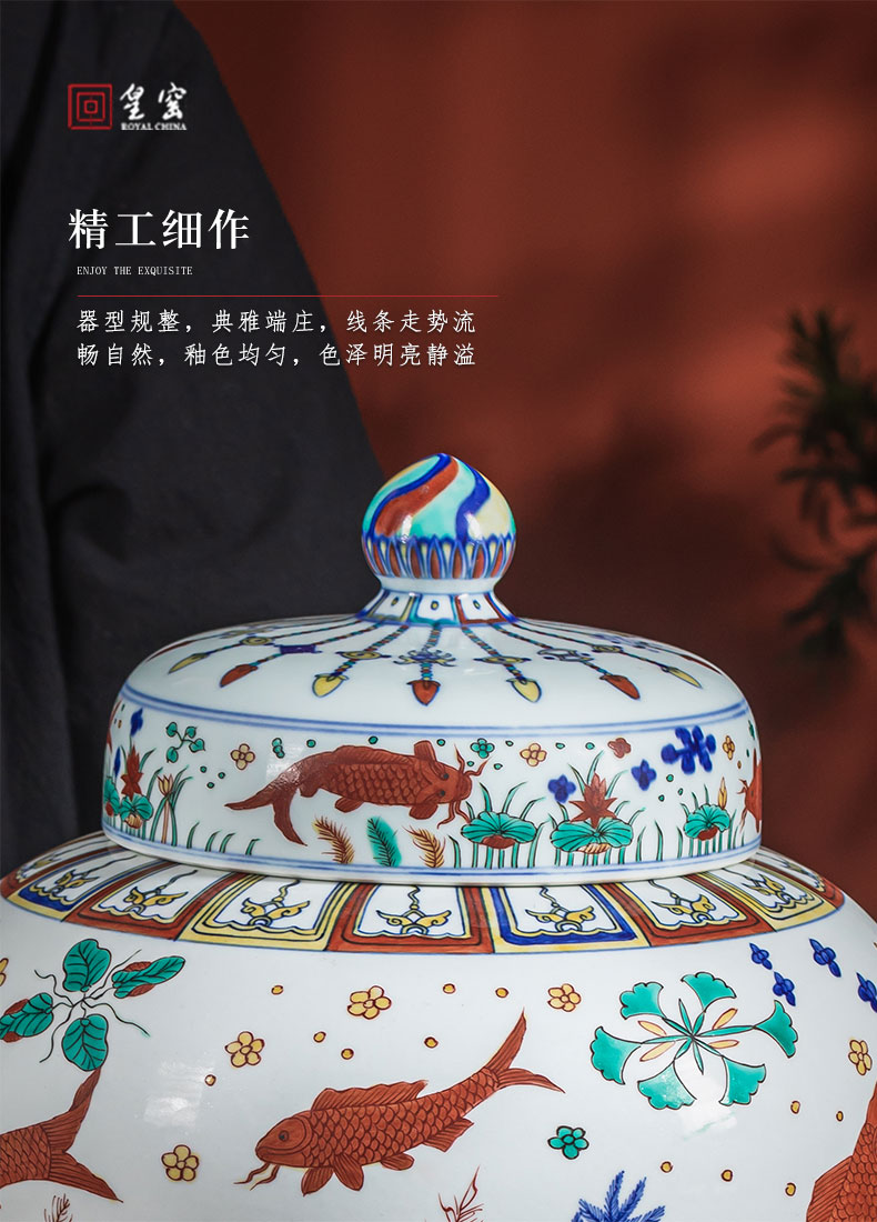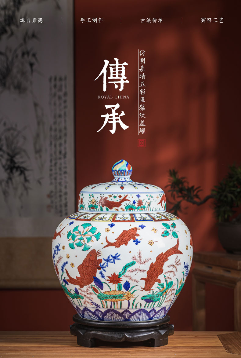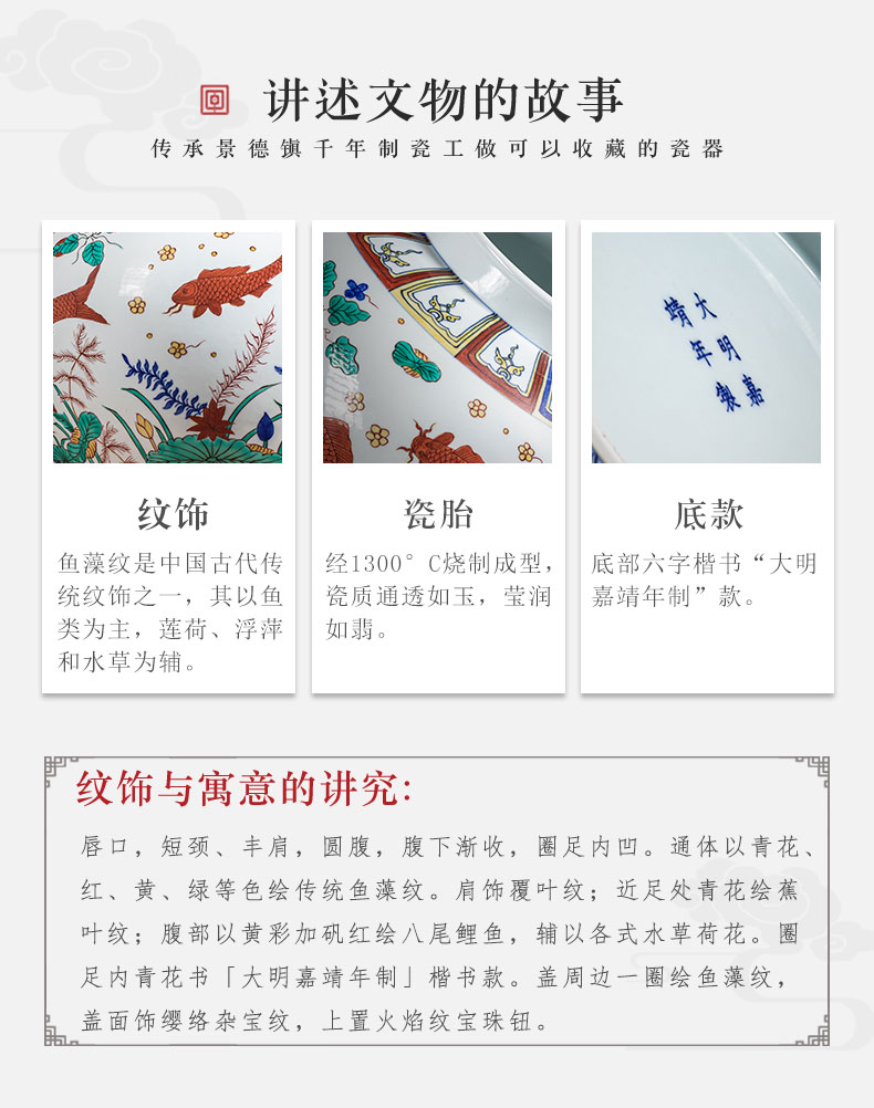 【皇窑】明嘉靖五彩鱼藻纹盖罐