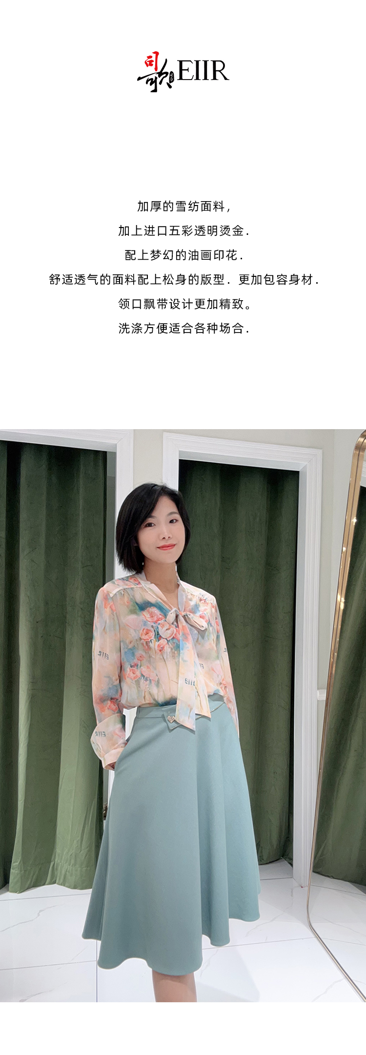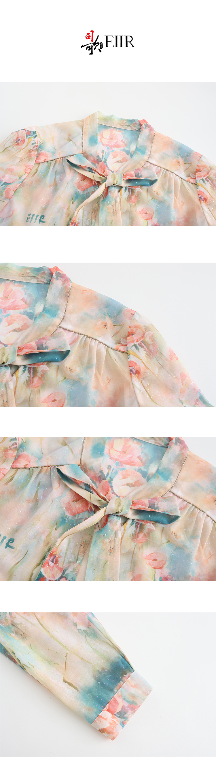 EIIR司歌厚雪纺印花蝴蝶结衬衫长袖套头气质职业ET881397