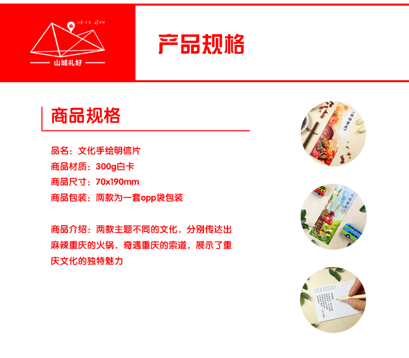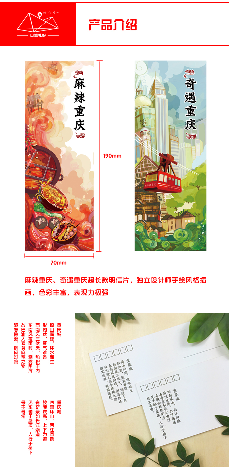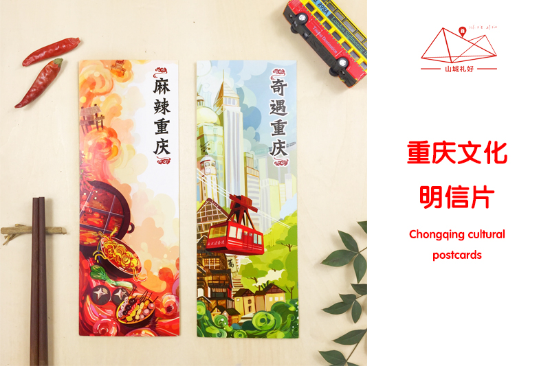 山城文化手绘明信片一套/超长明信片/重庆原创伴手礼/旅游纪念品