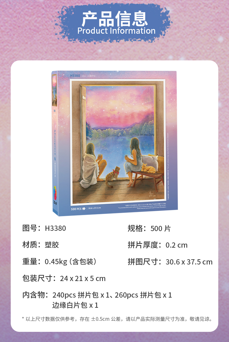 【折扣商品 不退不换】500片 平面塑料拼图 H3380 Jina-日落时分