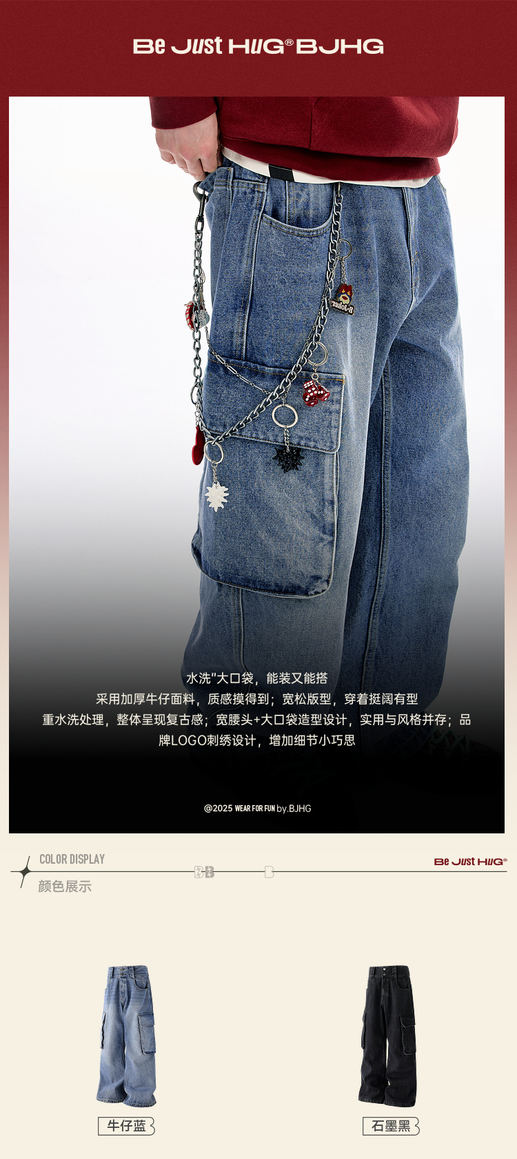 BJHG不计后果美式牛仔裤男款秋季潮牌2025新款宽松直筒休闲裤子女