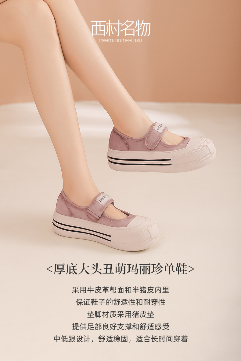 西村名物2024新款气质平底圆头厚底丑萌真皮休闲女鞋通勤单鞋女T24AE13981