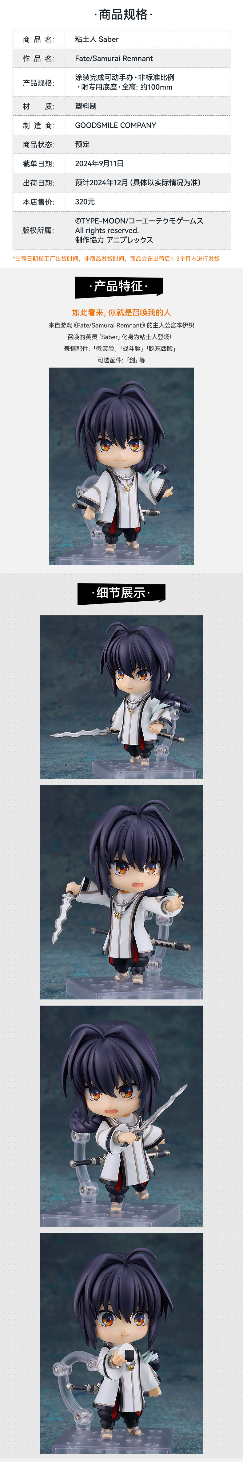 【GSC现货】粘土人 Saber Fate/Samurai Remnant