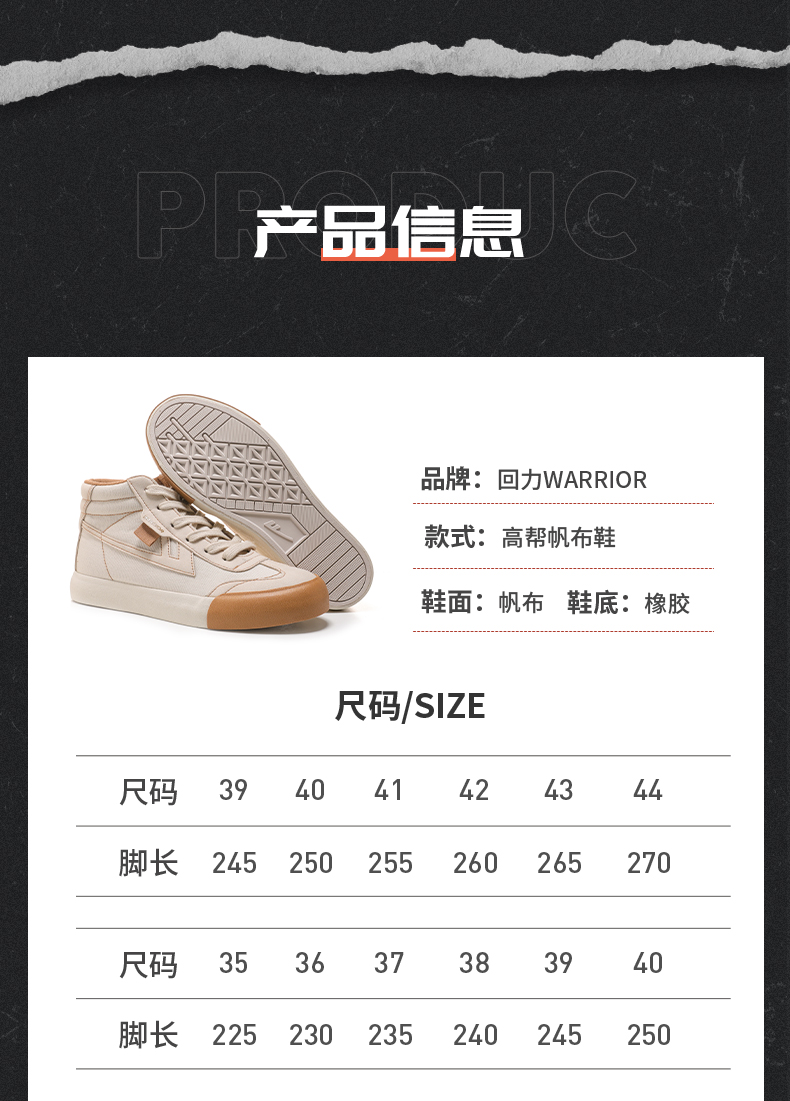 回力情侣款高帮复古德训鞋休闲鞋情侣款帆布鞋时尚潮流百搭高帮鞋