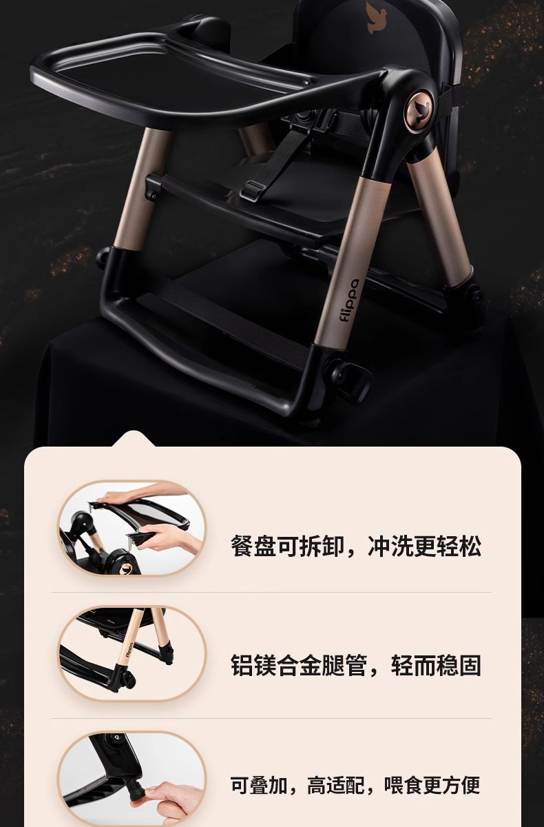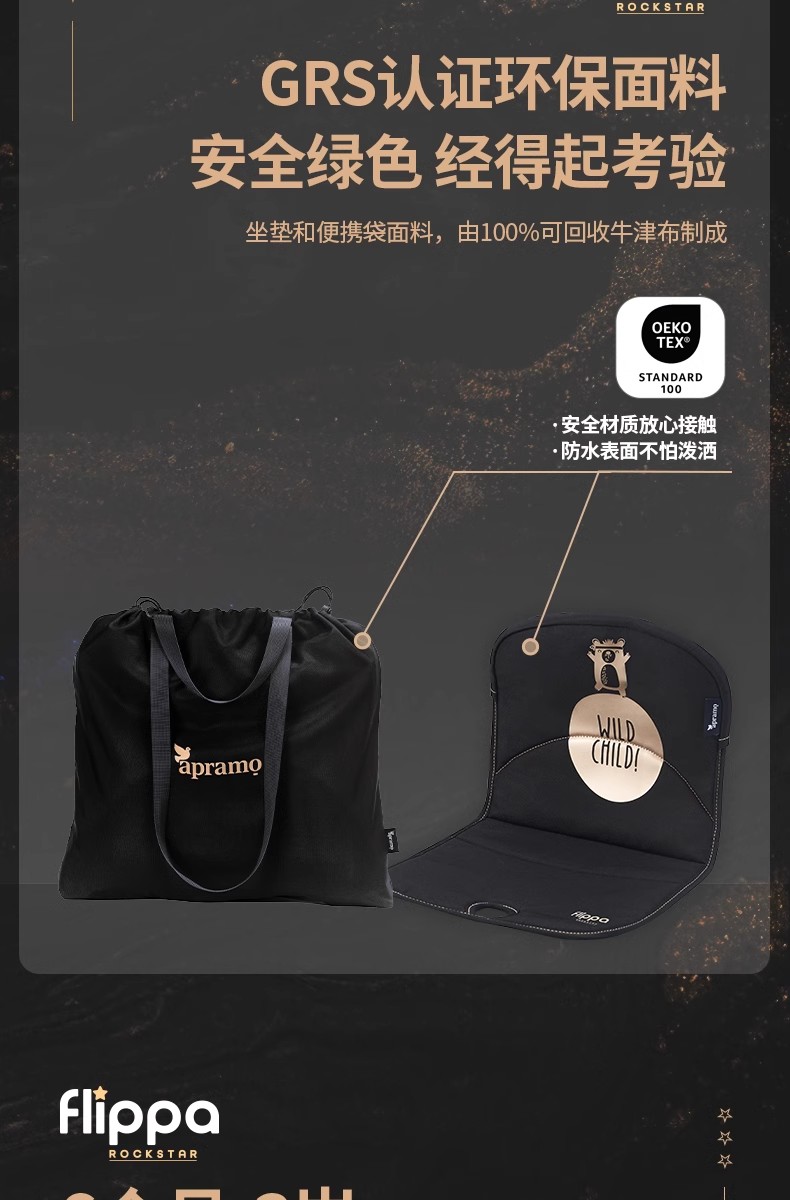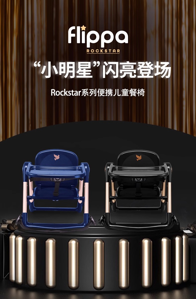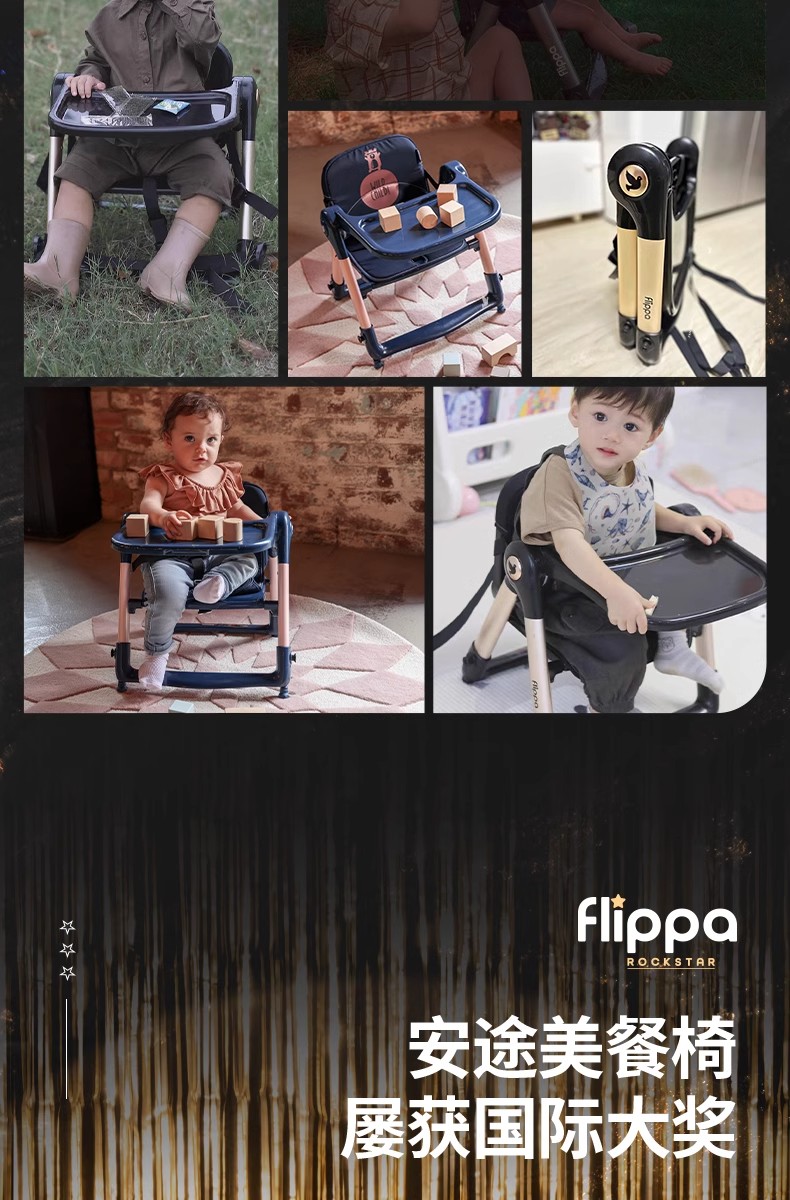 Apramo FlippaRockstar黑金餐椅 安途美爵士黑金宝宝儿童便携式折叠餐椅 6月-3岁