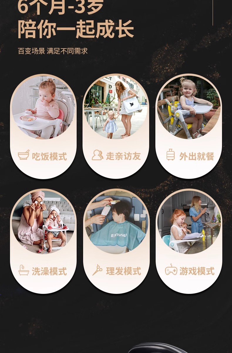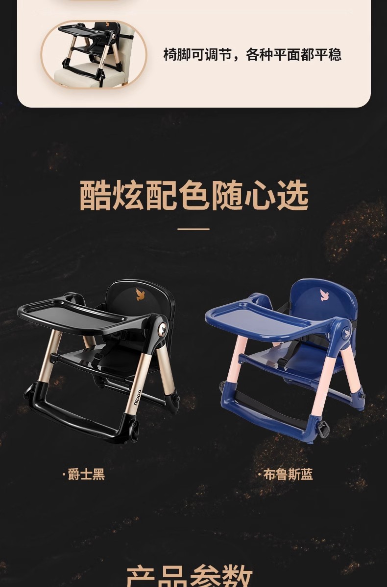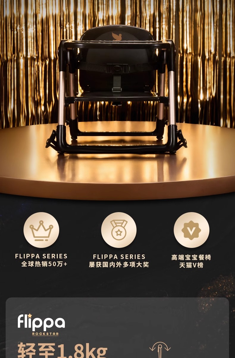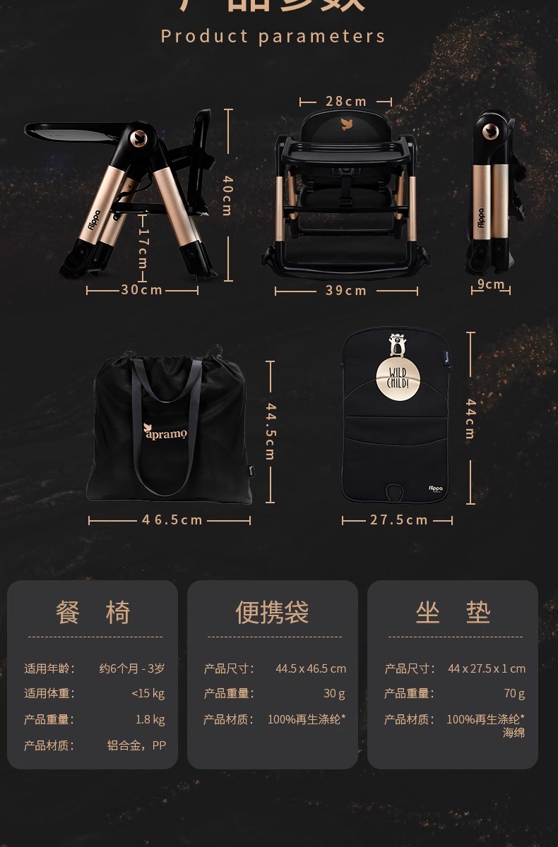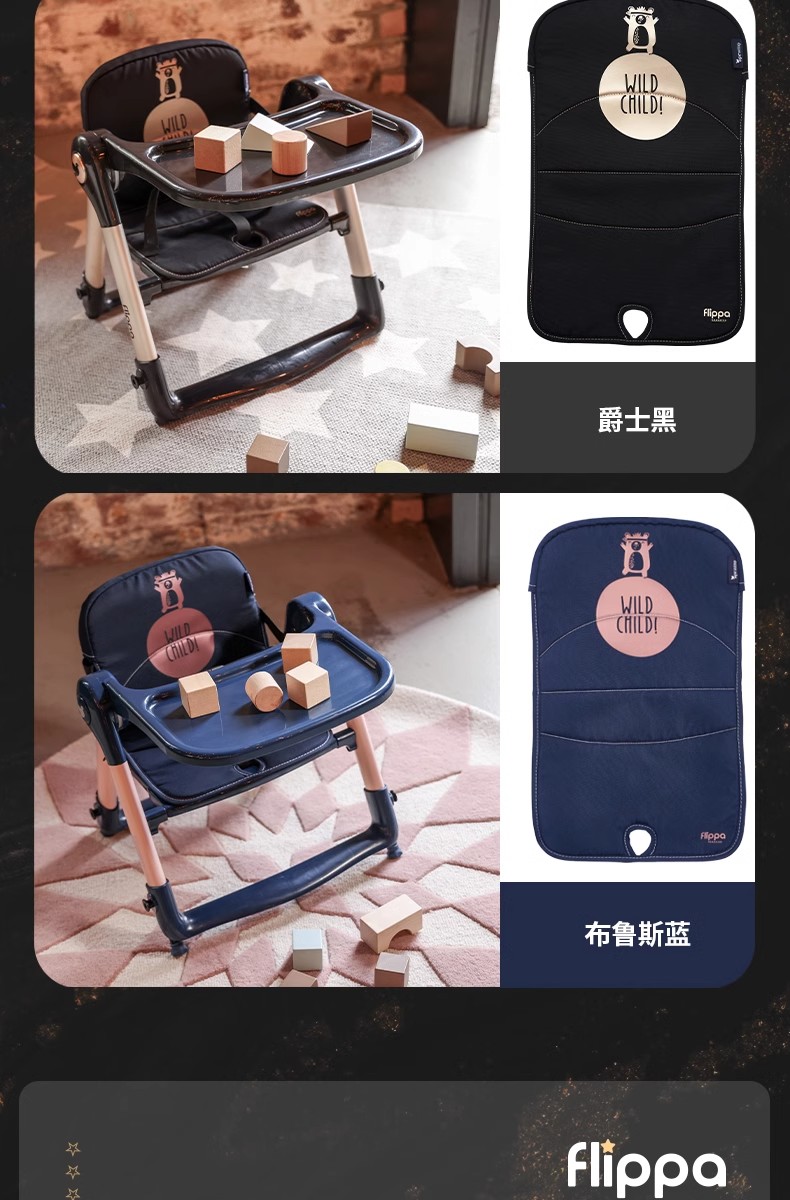 Apramo FlippaRockstar黑金餐椅 安途美爵士黑金宝宝儿童便携式折叠餐椅 6月-3岁