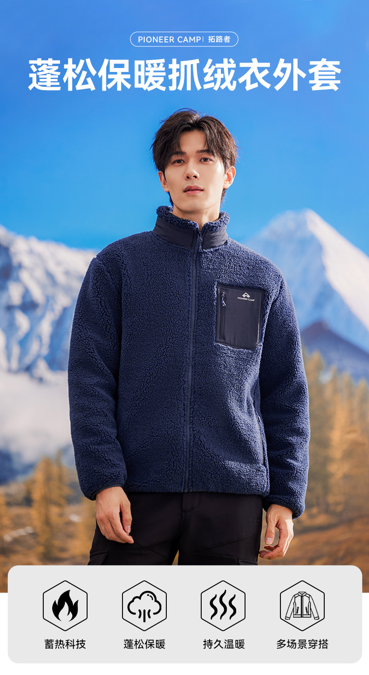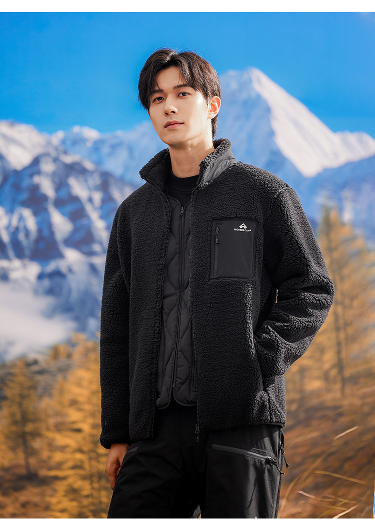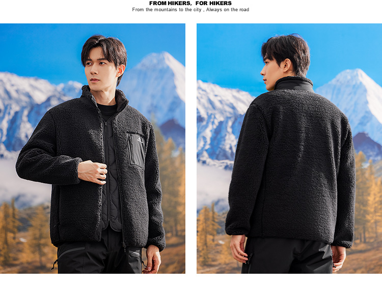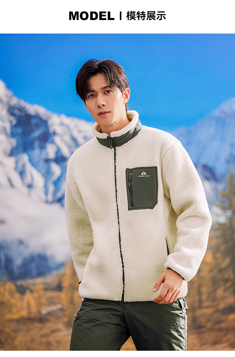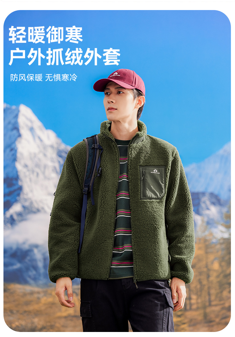 拓路者仿羊羔绒立领外套女款宽松和加厚保暖2024年冬季保暖上衣男