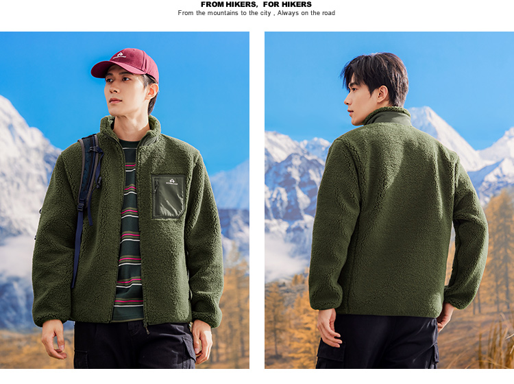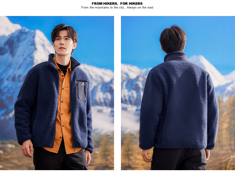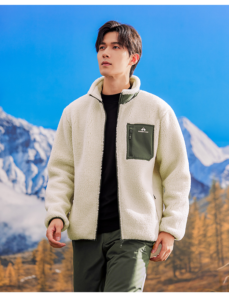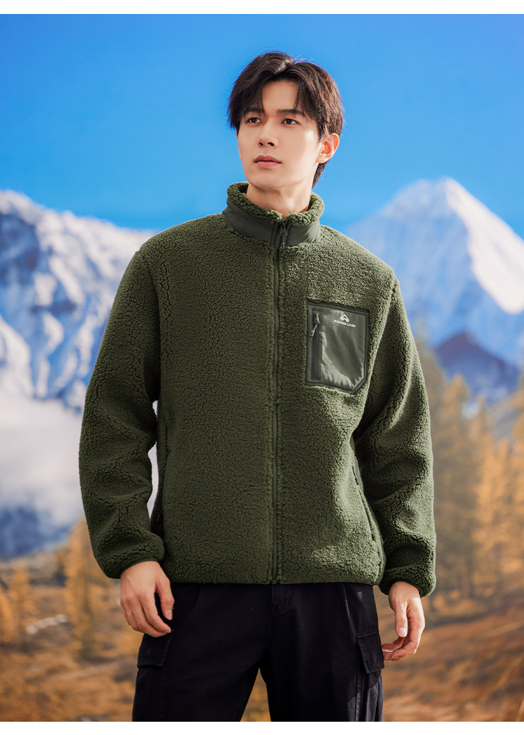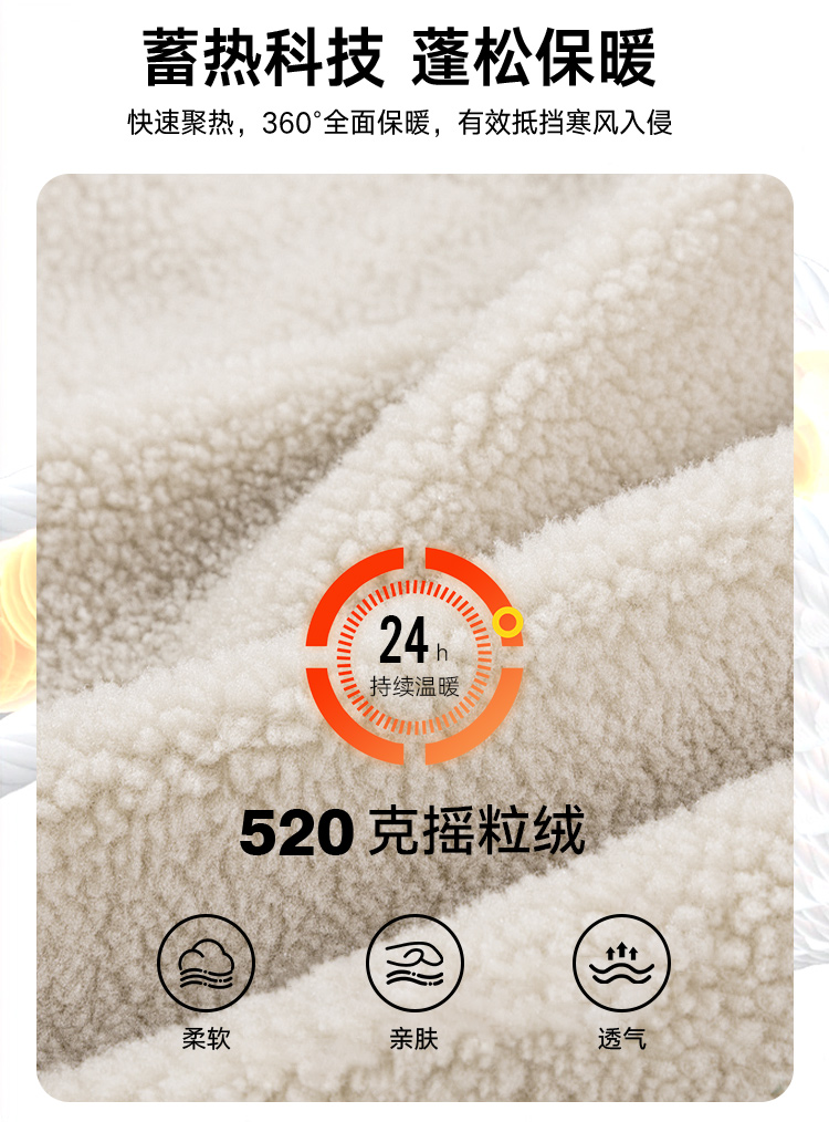 拓路者仿羊羔绒立领外套女款宽松和加厚保暖2024年冬季保暖上衣男