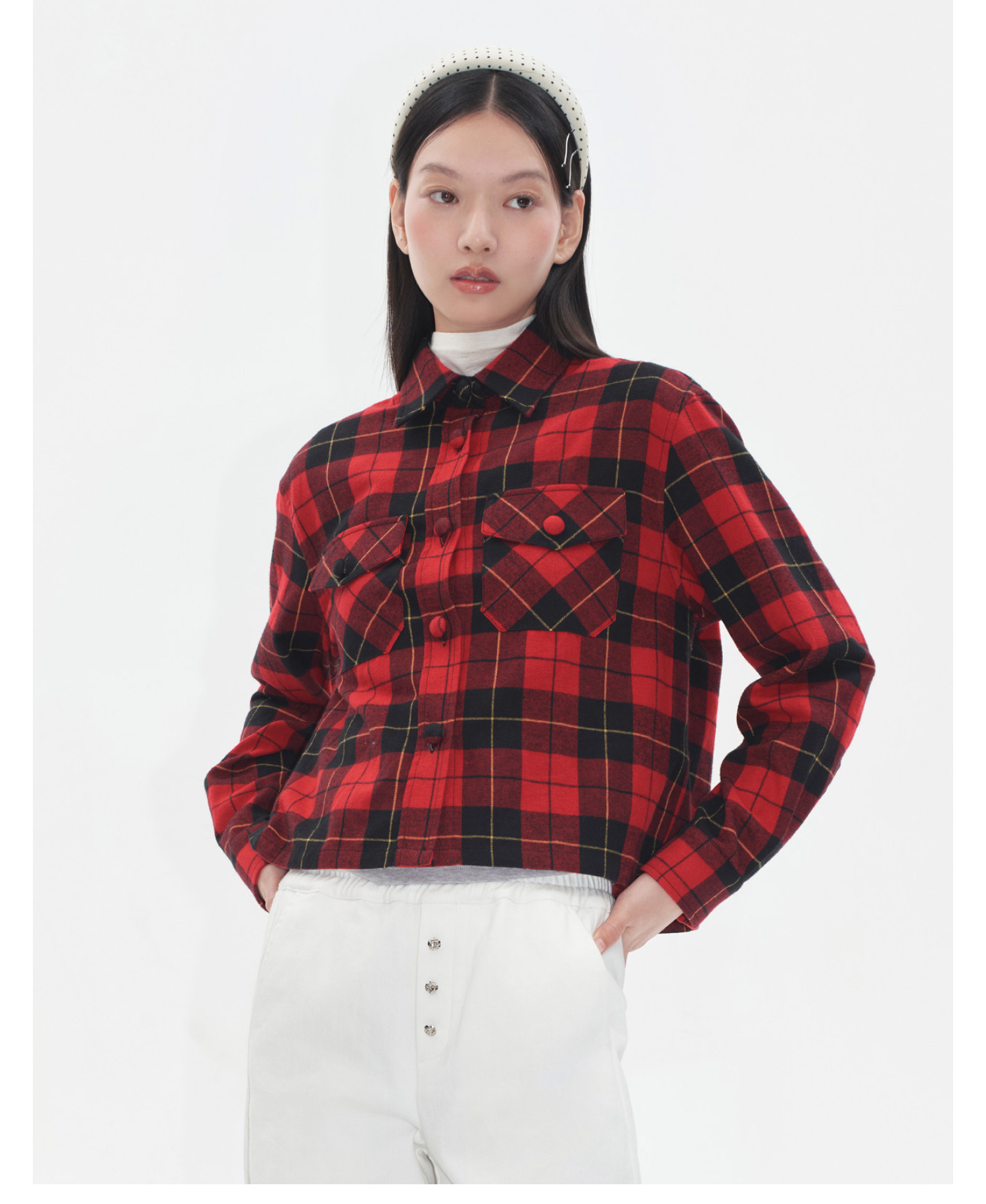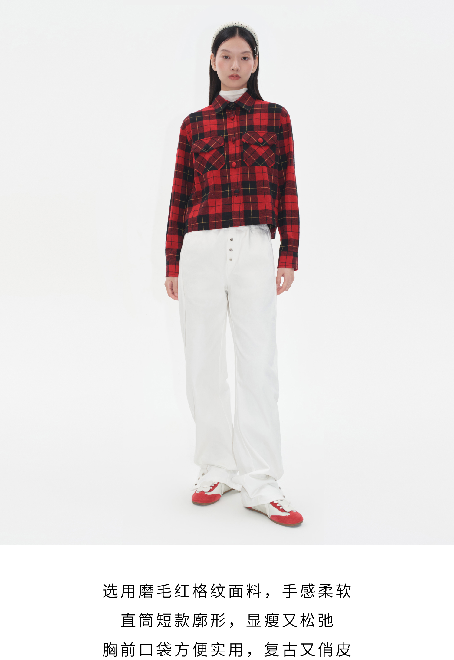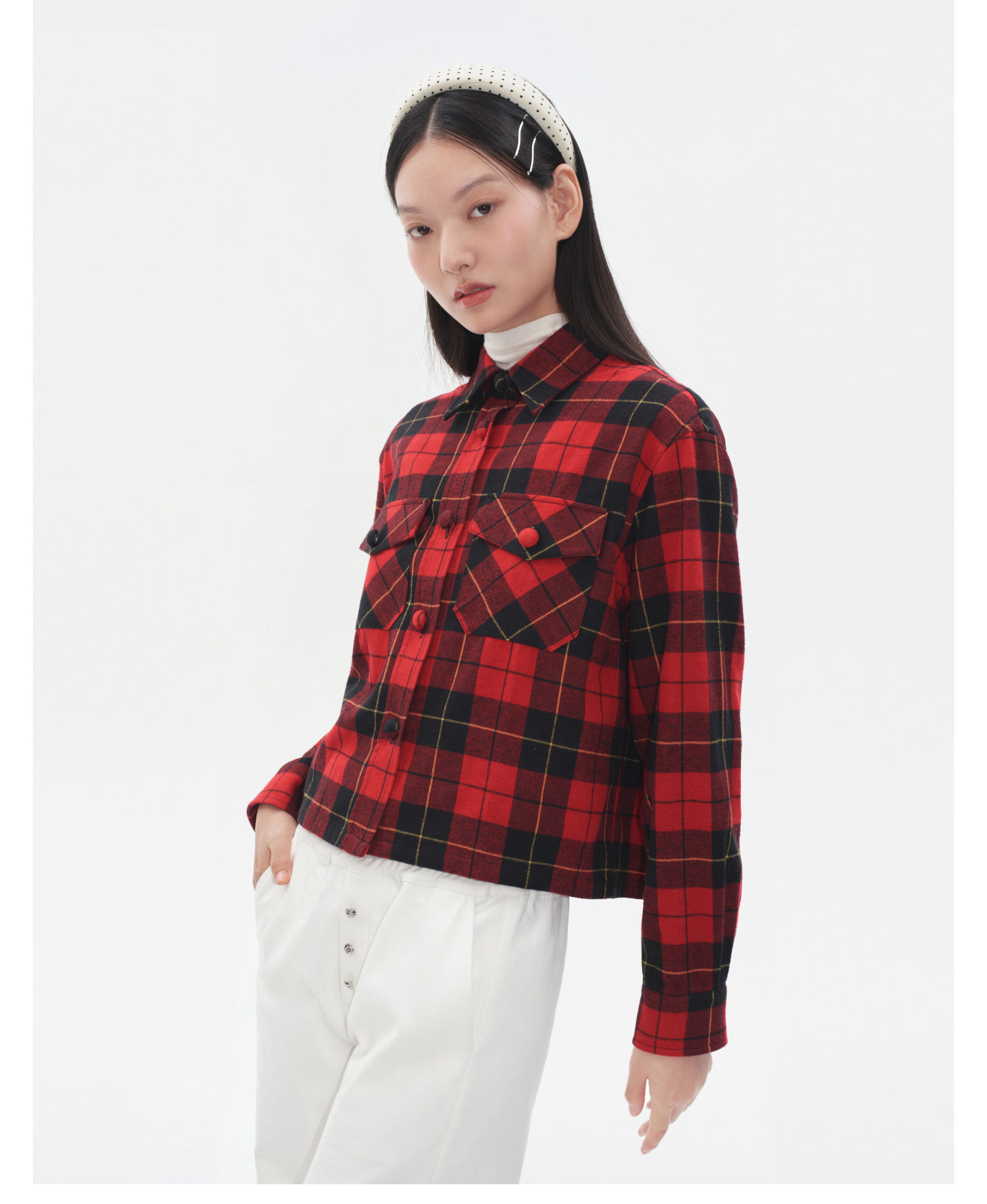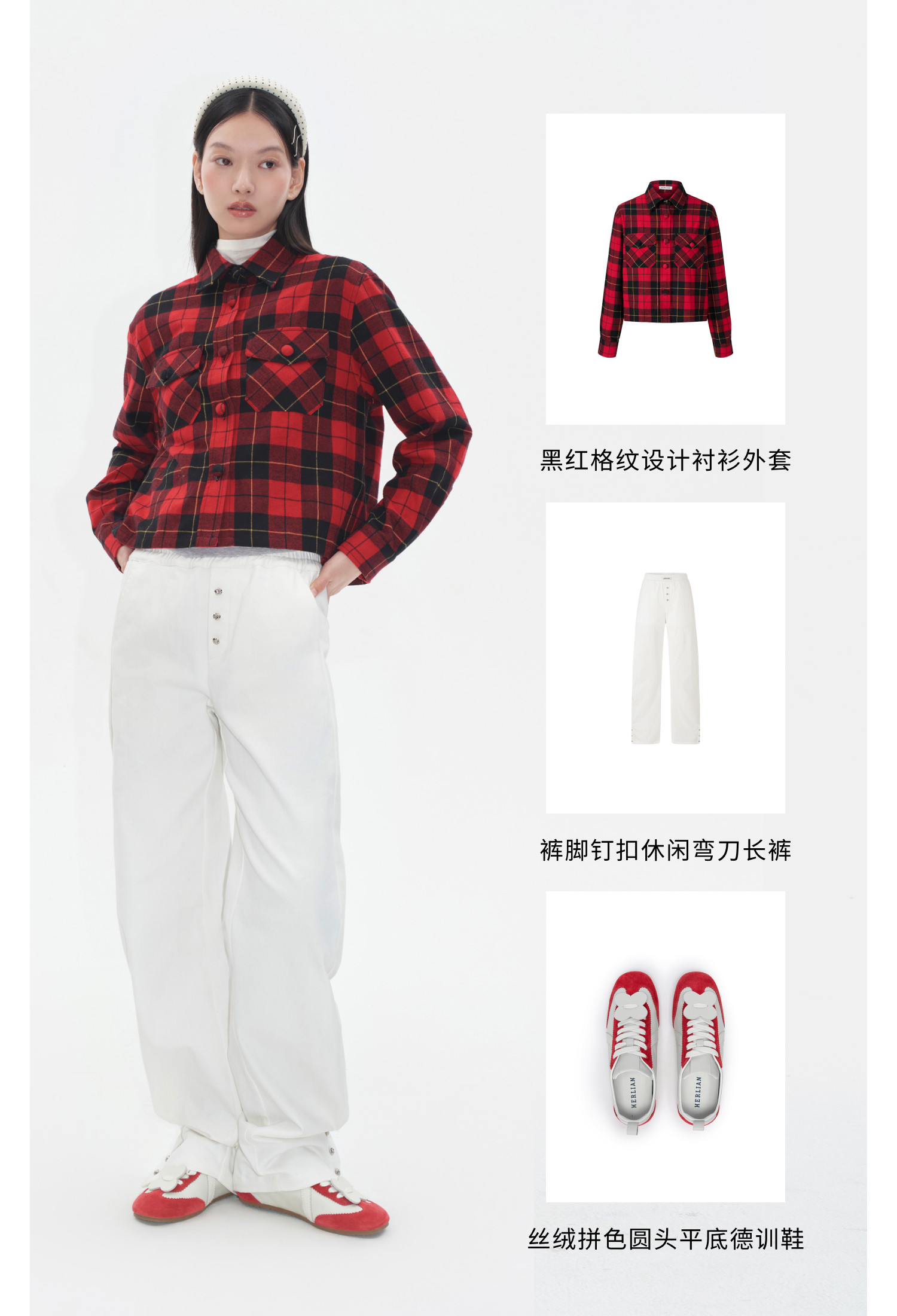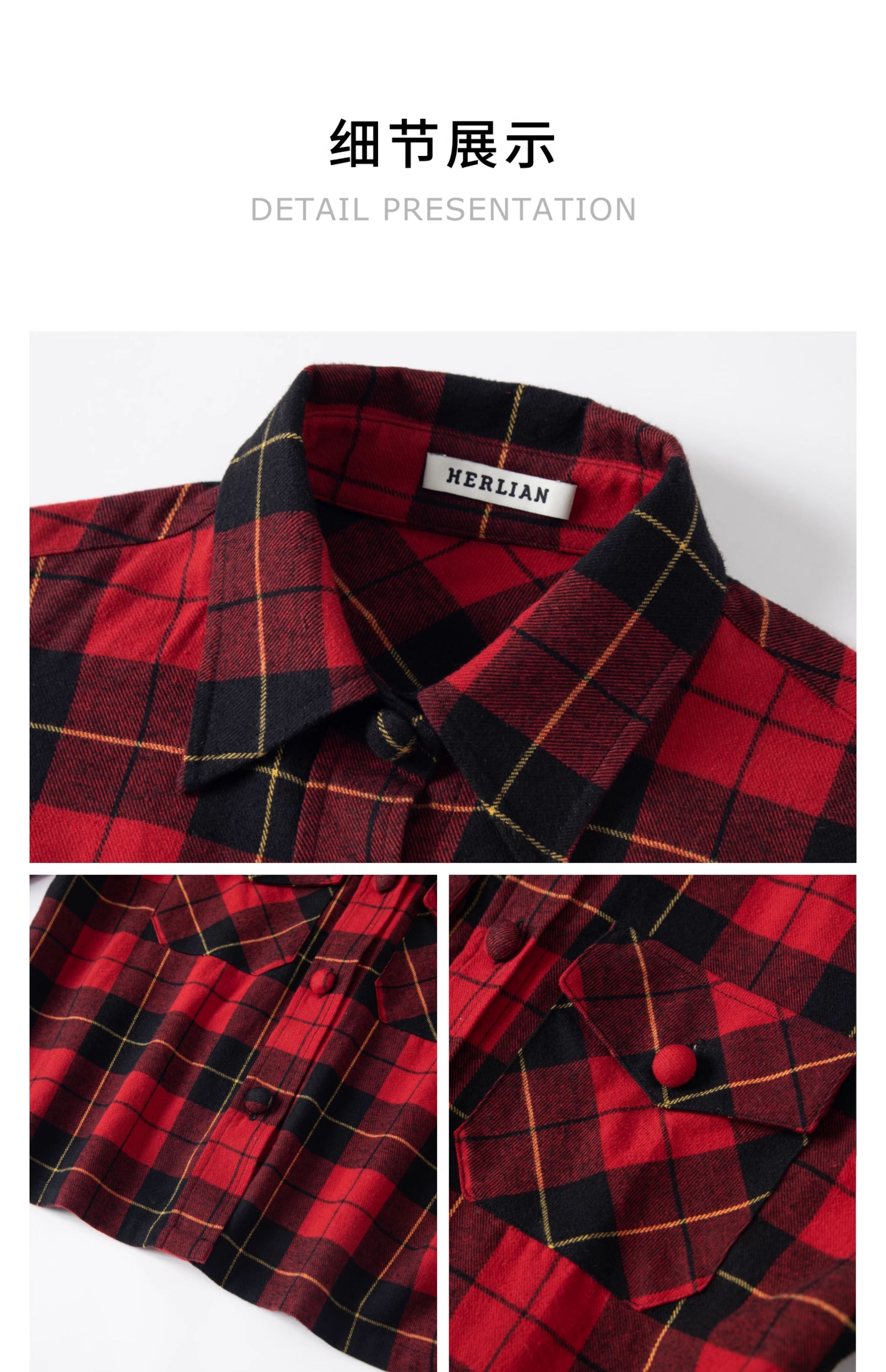 HERLIAN2025年秋季新品女士黑红格纹设计衬衫外套